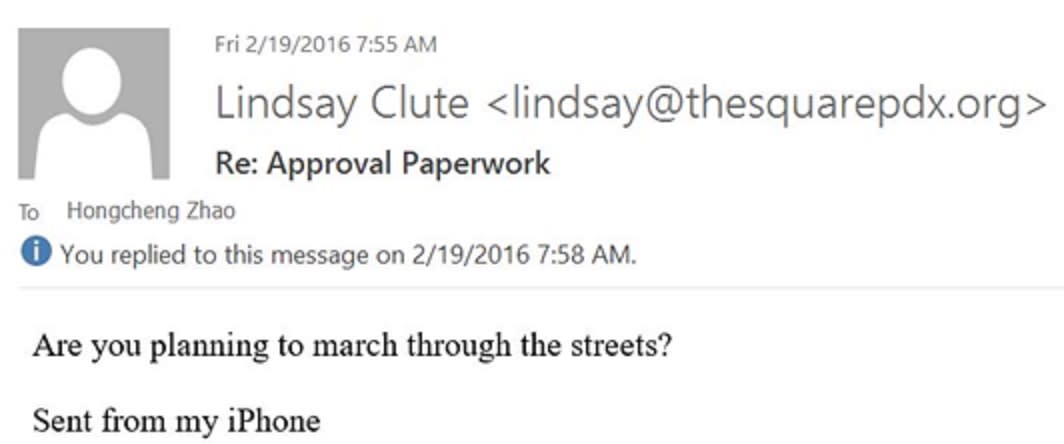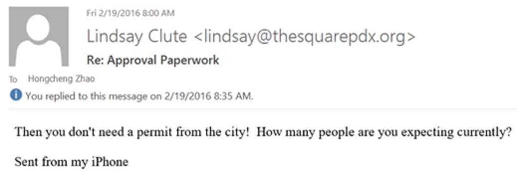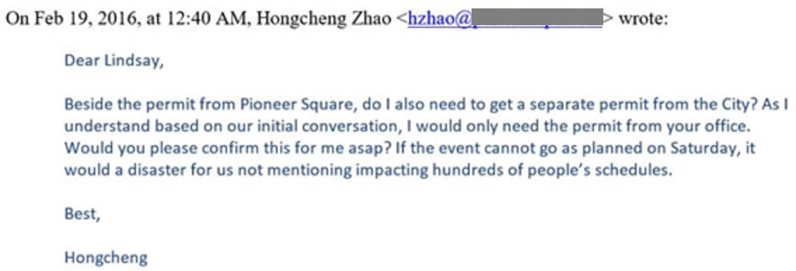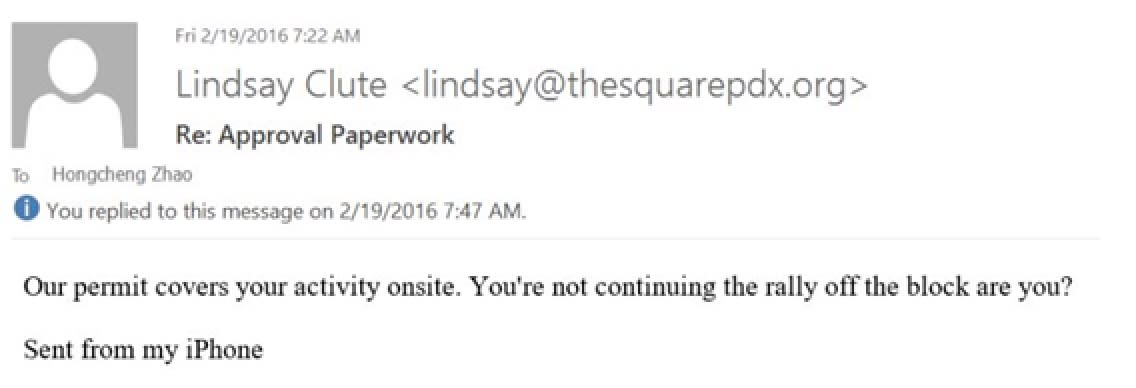 大姐问,你确定咱们在先锋广场集会只需要那里的Permit,而不需要市府的Permit?