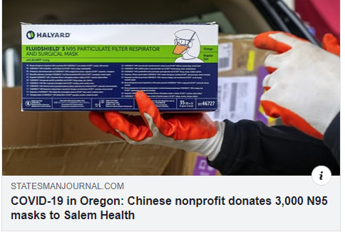 感谢statesman journal给予我们捐赠活动的详实报道,几个小时之内便收到了三位读者来信,就包括其中一位七十岁高龄仍然在菜店工作,希望能够从我们这里得到一个好一点的口罩。真的是难为他了,在微信群里一说,就有人主动提出寄口罩给老先生。还有两年前曾经在社区青少年大会上做过演讲嘉宾的Pierce女士专门发来短信,对我们的捐赠表示感谢,为我们的组织感到骄傲。