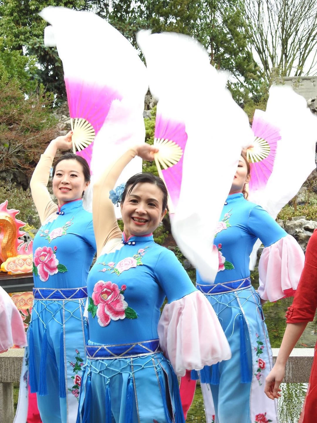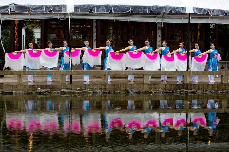 在兰苏园庆祝中国新年活动中,还有不少来自我们社区的演出,其中包括作为OCC文化大使的西北华人舞蹈队(NWCDT)。今天见到兰苏园主任Gary,他还特意和我提起她们的精彩演出。我看过现场录像,真的如同梦幻般,在一池春水的衬托之下。领队加编导邵雯雯对如何表现来自东方的文化有非常独特的见解,从服装到动作编排,大家的用心都落实在了每个细节之中。她们的辛苦和对艺术的追求也赢得了观众的认可和欢迎。据说,她们马上开始编排新的节目,会在夏天先锋广场的Chinese Festival正式推出。