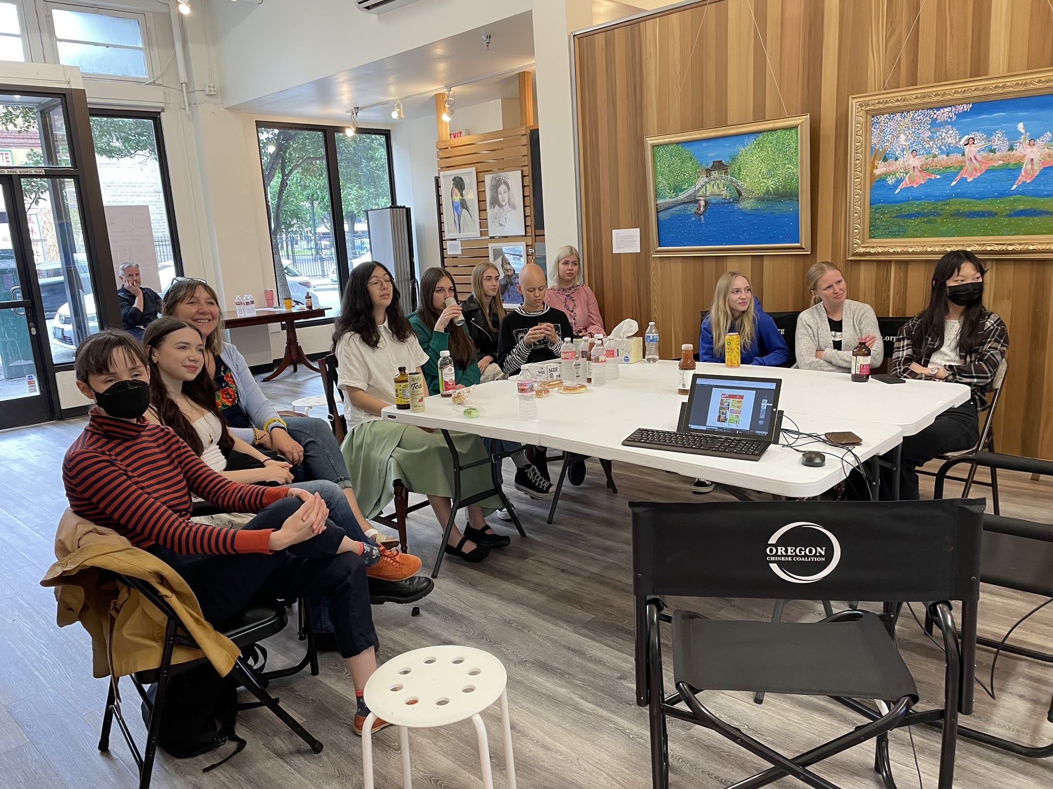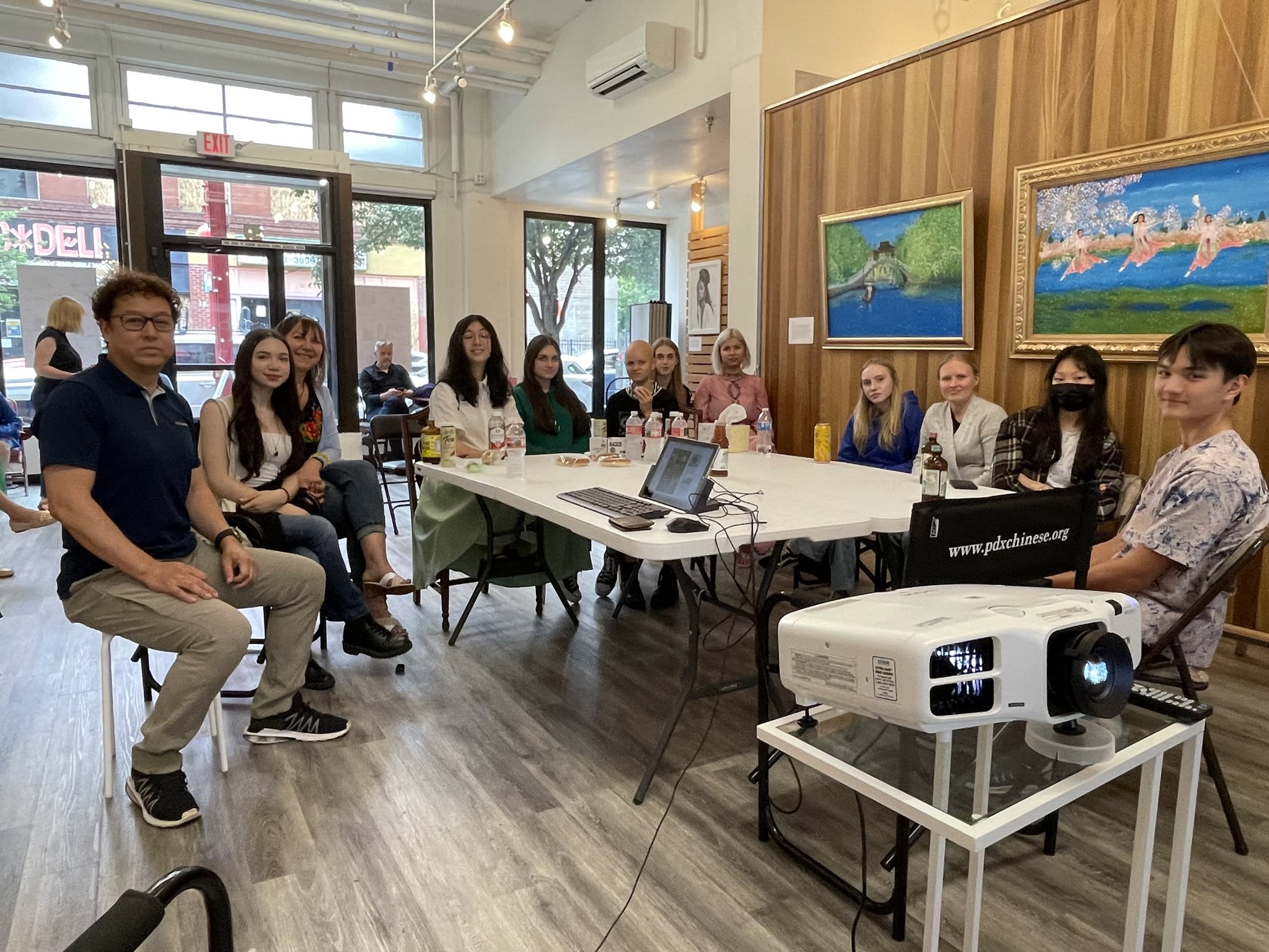 Today, young artists from the Chinese American and Ukrainian communities gathered to discuss their artistic pursuits and how they utilized art as a means to navigate the challenges posed by the pandemic and the war in home country. They expressed a strong interest in collaborating on art projects and community service initiatives once the school year concludes in June.