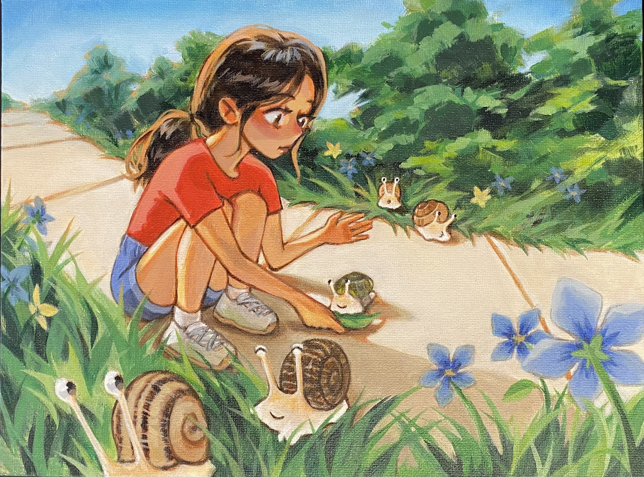 I was inspired by the connection I had with nature and its creatures at a young age, and the pure feelings of kindness and empathy towards it. When I was in elementary school, my favorite thing to do was help snails cross the hot sidewalk during summer because I didn’t want them getting hurt.
