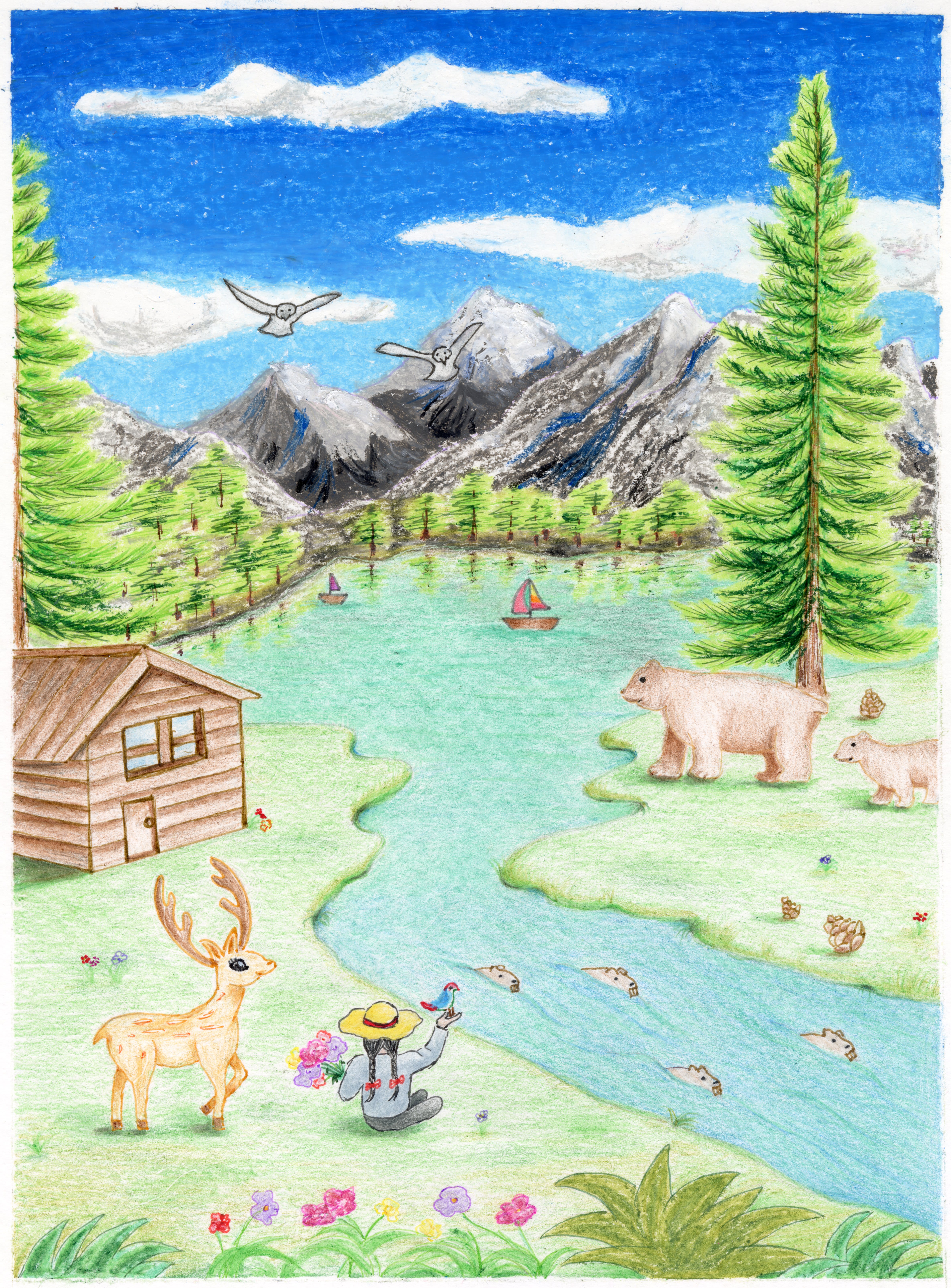 Oregon has a lot of beautiful scenery and views, but I don’t get out to see them very often. I dreamed of having a wooden cabin in a landscape, on the grass, being able to play and interact with unique animals. I am worried that environmental pollution and excessive hunting will affect these lovely scenery, and I will not be able to see these beautiful sights in the future. I’m doing my part to keep the environment clean and the animals safe, and hope that others also help to protect.