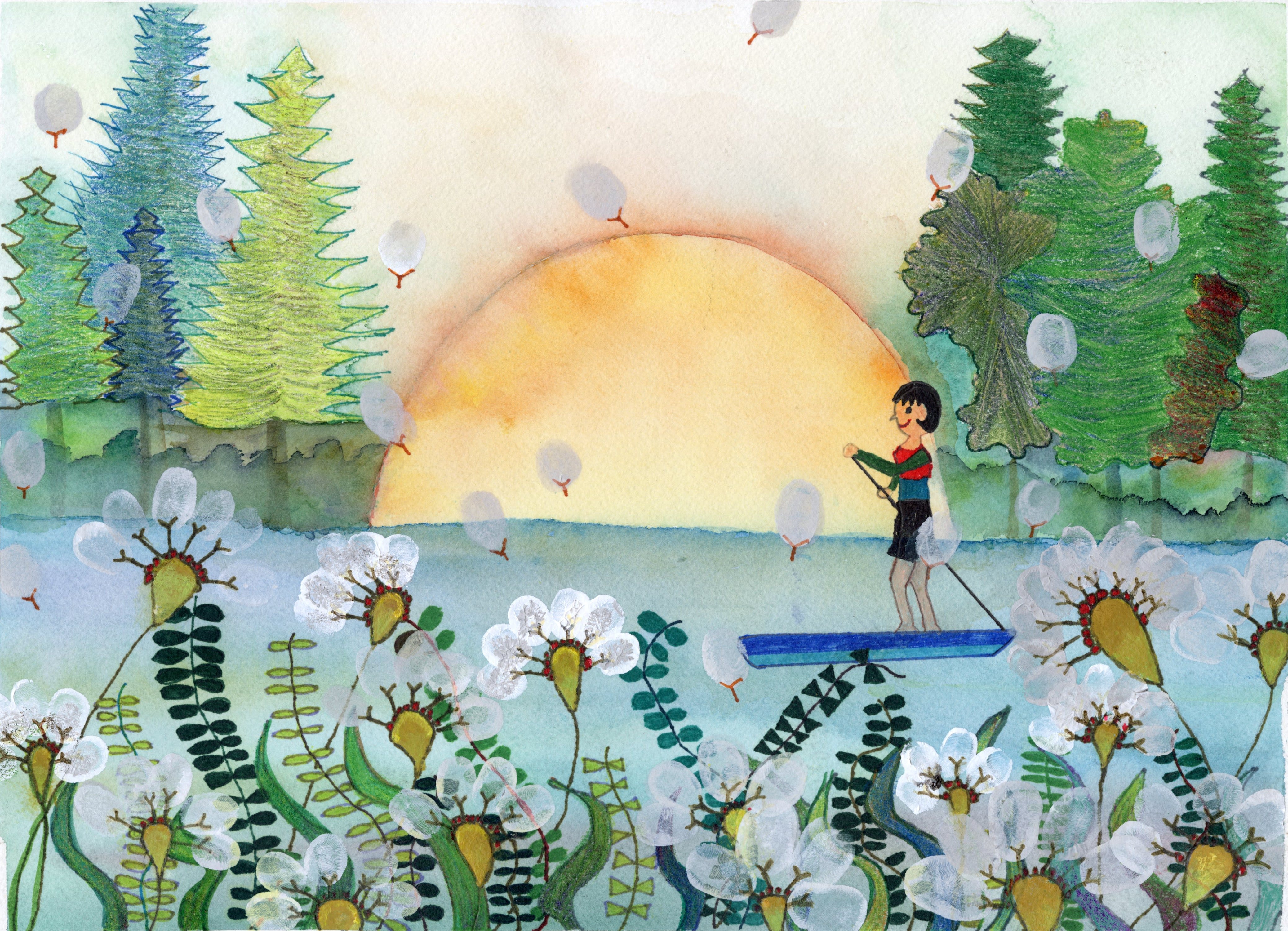 Last summer, my parents introduced me to paddle-boarding and I really enjoyed it. I loved watching the sunset with my dad while my sisters blew dandelions on the shore with my mom. I always felt satisfied and happy after paddle-boarding. My parents told me that was the superpower of nature. It cures you when you are not well in a quiet and magical way.