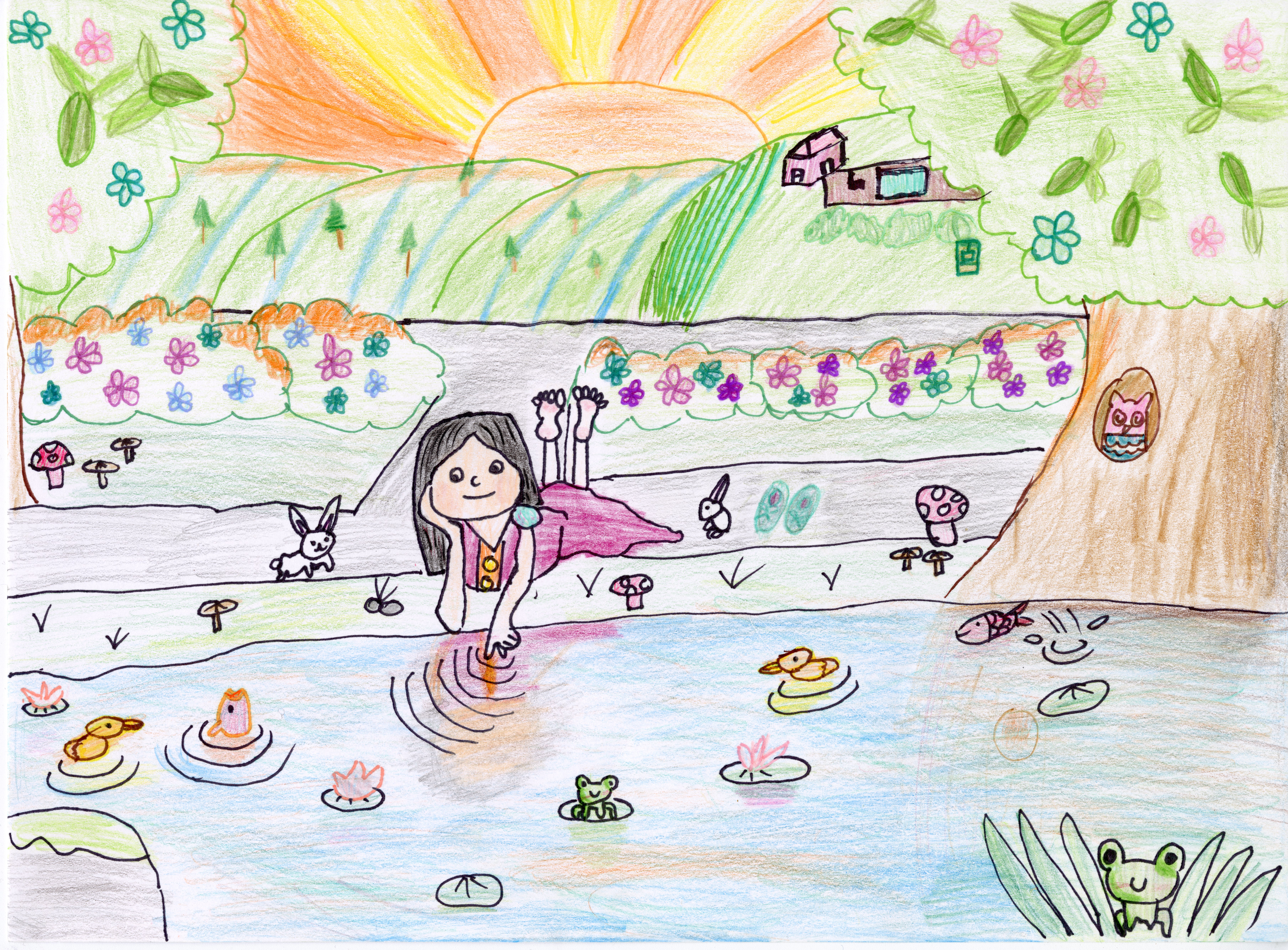 斗转星移,昼夜交替。大自然中光影的绚烂变幻激发了小朋友的创作灵感。生机勃勃的植物和流动的水体象征了生命的活力与持续不断的循环。宁静美好的画面传递着大自然的治愈力量。