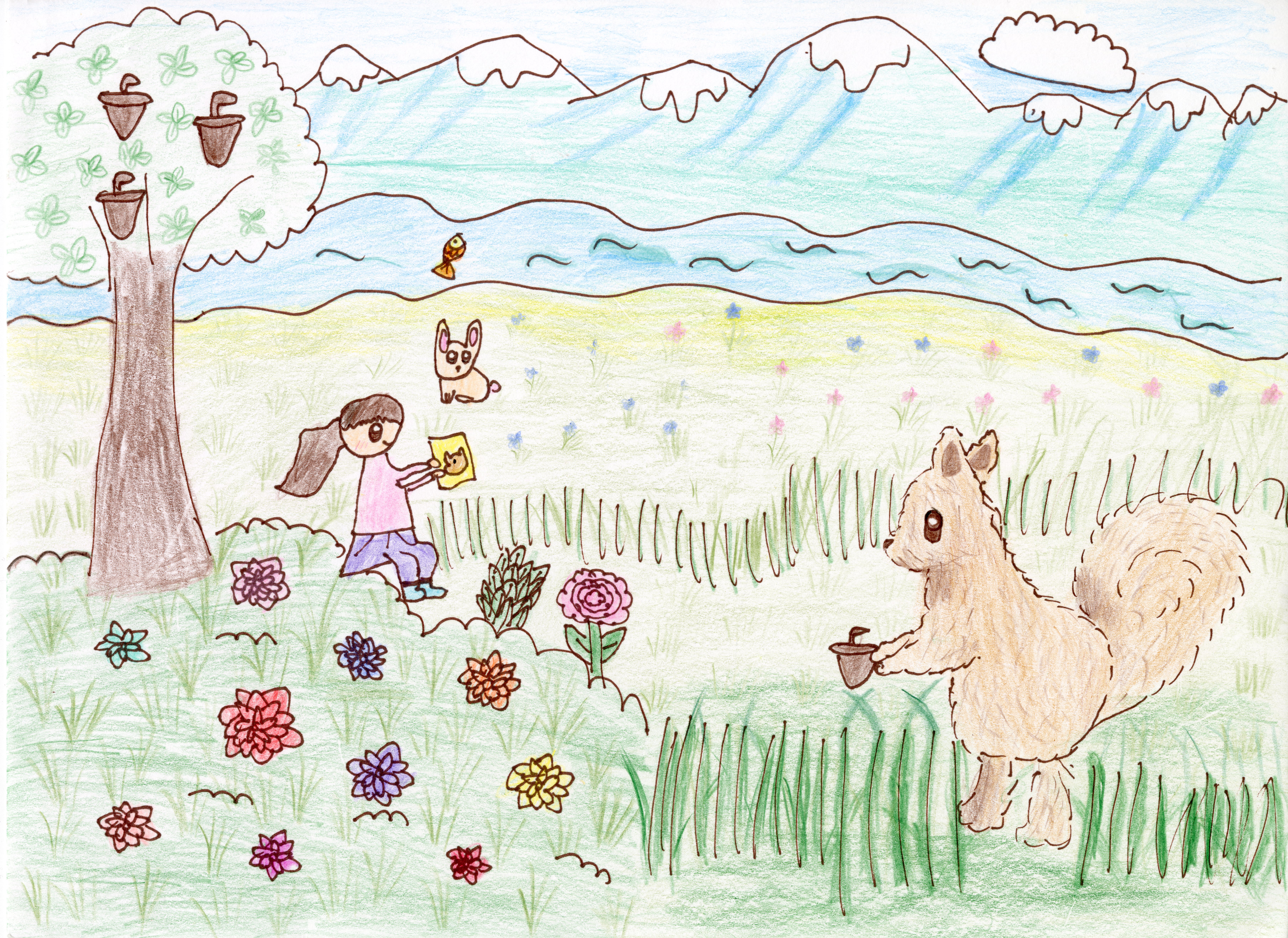 I like to play outside and love to see birds and squirrels in the woods. I wish these little animals could stay there and allow me to draw pictures for them.