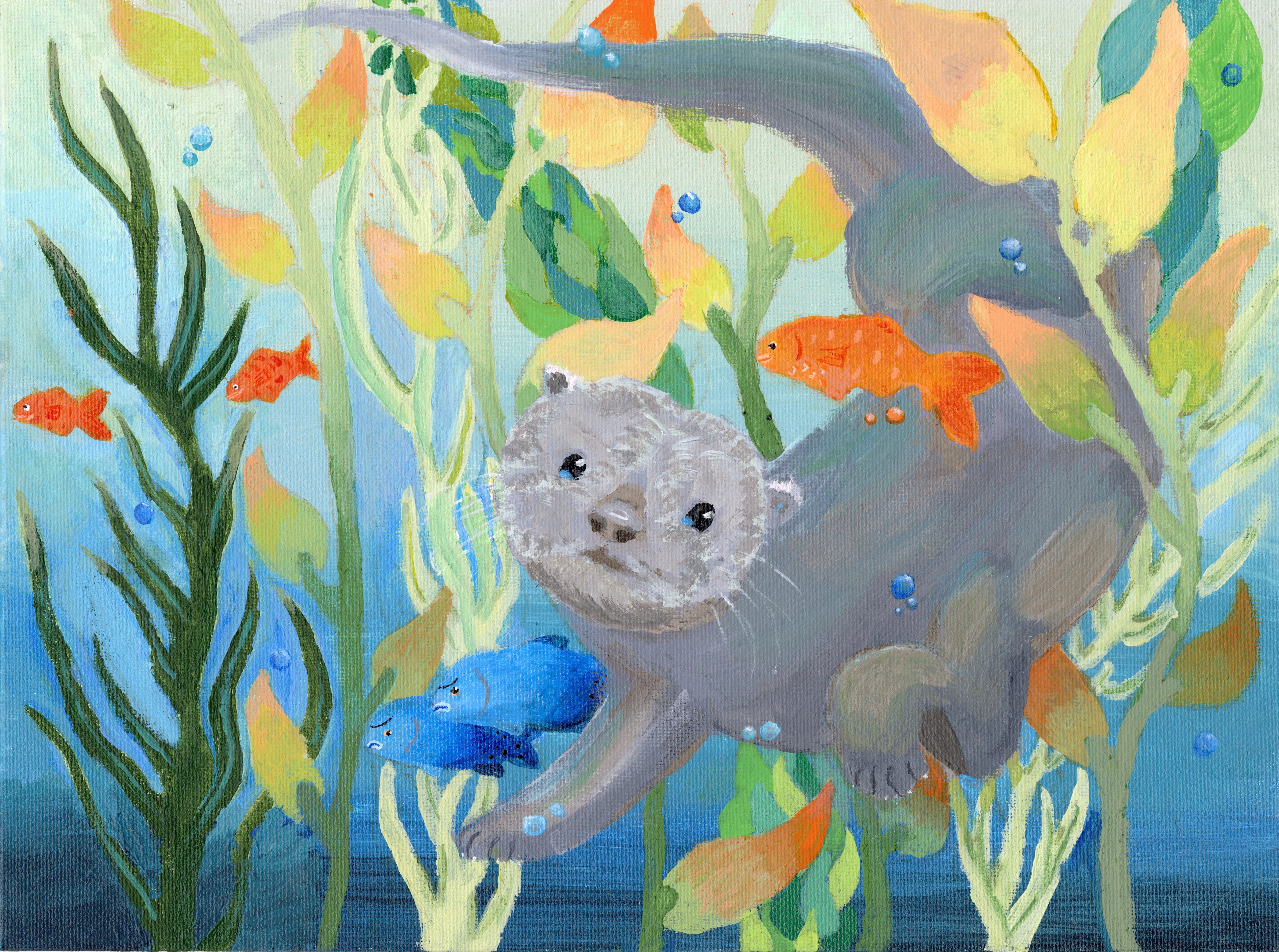 My artwork captures the beauty of the animals in the sea forest, from fish to otters, all delicate and interesting. I wanted to capture how if one animal is missing the whole food chain would be broken. The otter is a great part of the ocean making sure no fish, clam or sea urchin is over populated.
