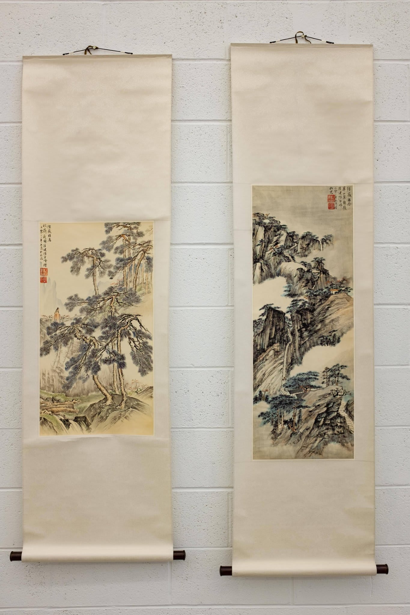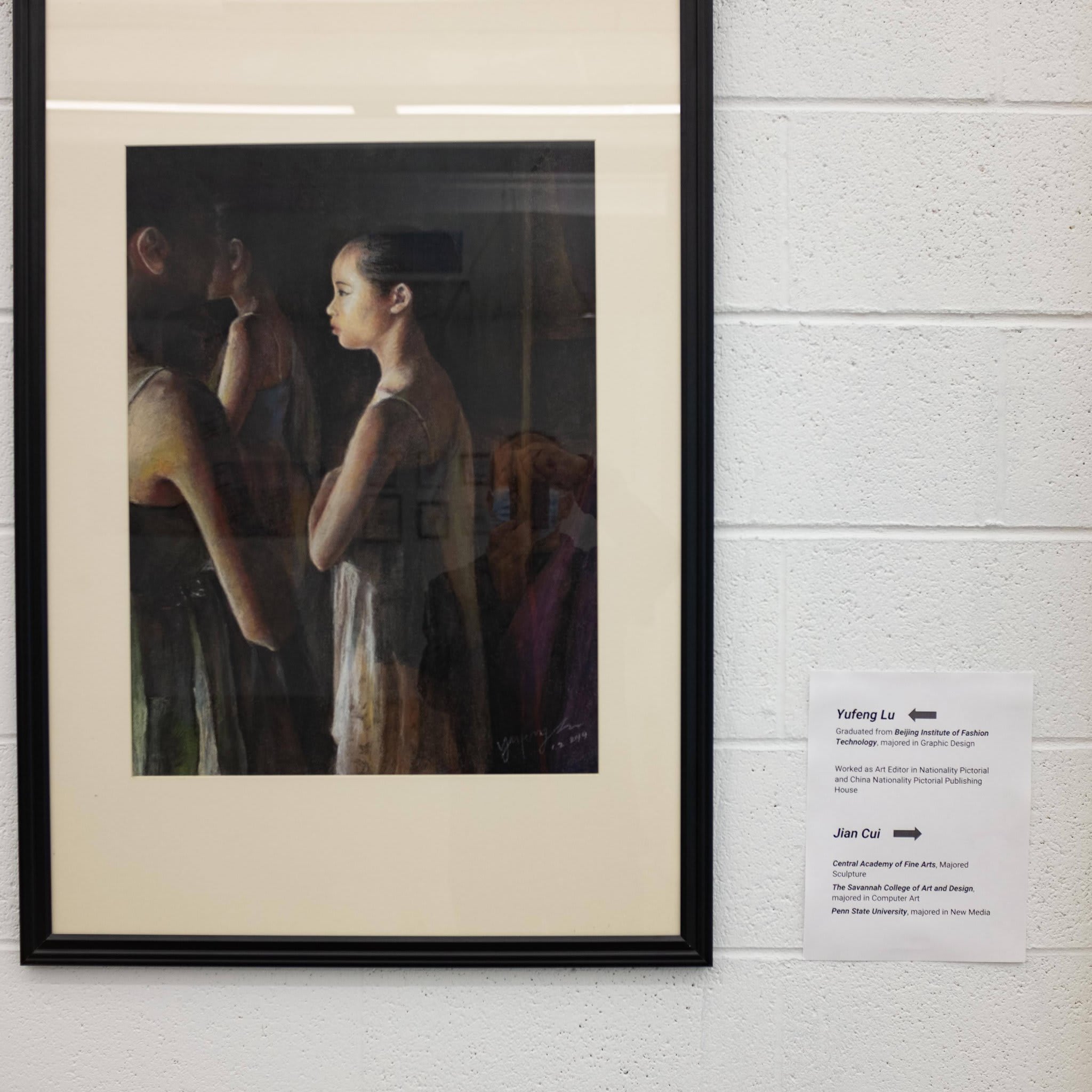 后面跟着的则是一幅铅笔画和两个中国山水画,这个是社区的一位妈妈提供的。她在20多年前离开国内之际,还是一个女孩子的她对未来在大洋彼岸的生活自然心理充满了惶恐。为了能让她在思乡的时候有些慰藉,毕业于中央美院的姐夫特意为她画了这两幅山水画。若干年过后,结婚生子,一晃孩子长大了,也是画家的姐姐为侄女扑捕捉了学习芭蕾的瞬间。三个作品显示出作为移民的我们都曾经历过的,很是令人寻味。