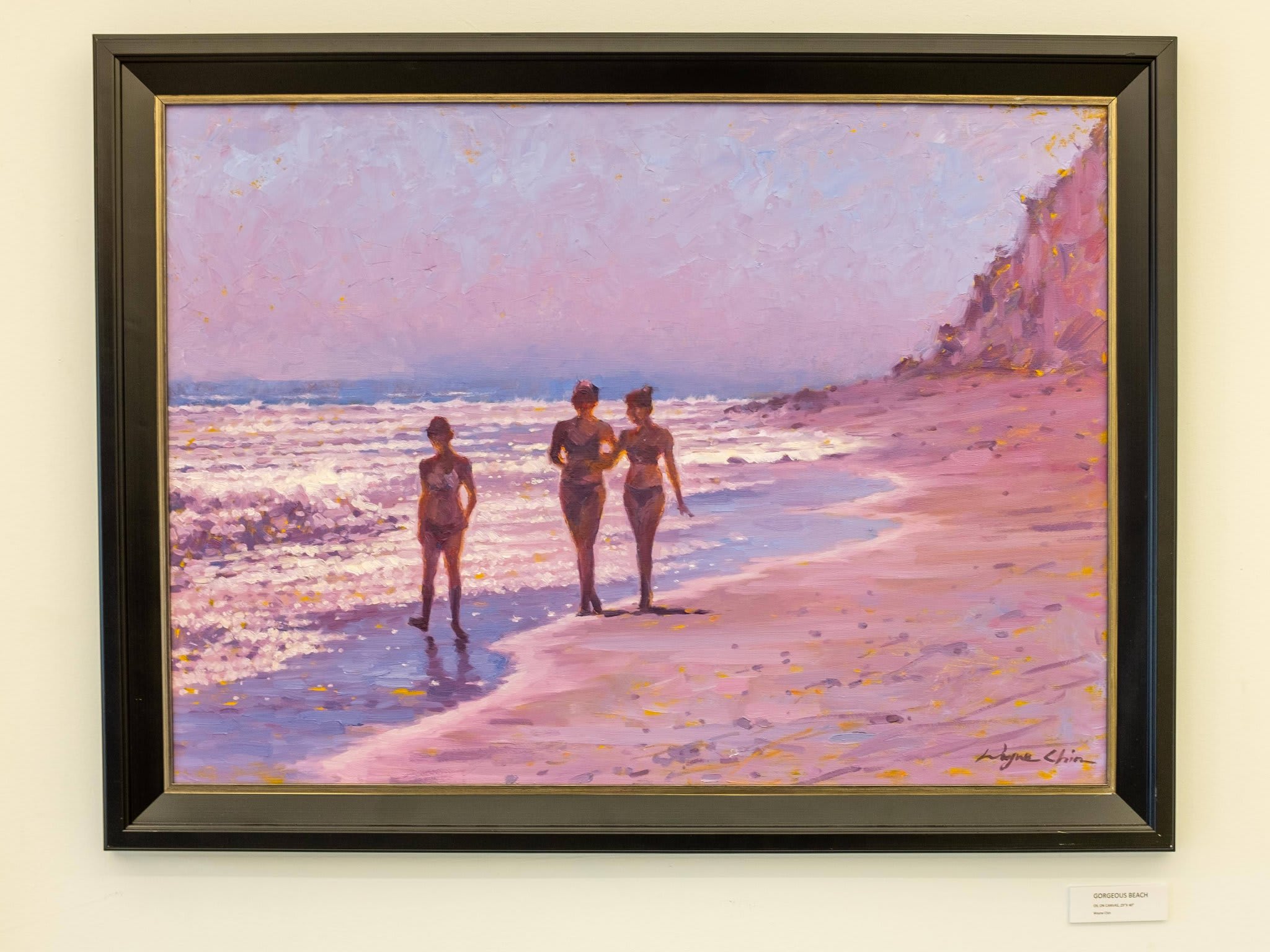 拐个弯来到后墙,屋顶上几个LED灯照射在两幅油画上,是一个白人丈夫为自己心爱的中国女人画的。他们来自Salem,不远万里送画过来,说是就是希望为亚裔传统月做些什么,他的另外两幅作品正在Salem的一个画展展出。聊天中,得知他在本地很是活跃,除了作画还写书,并和政界新闻界的关系很是热络。https://youtu.be/bCnjcsekscQ