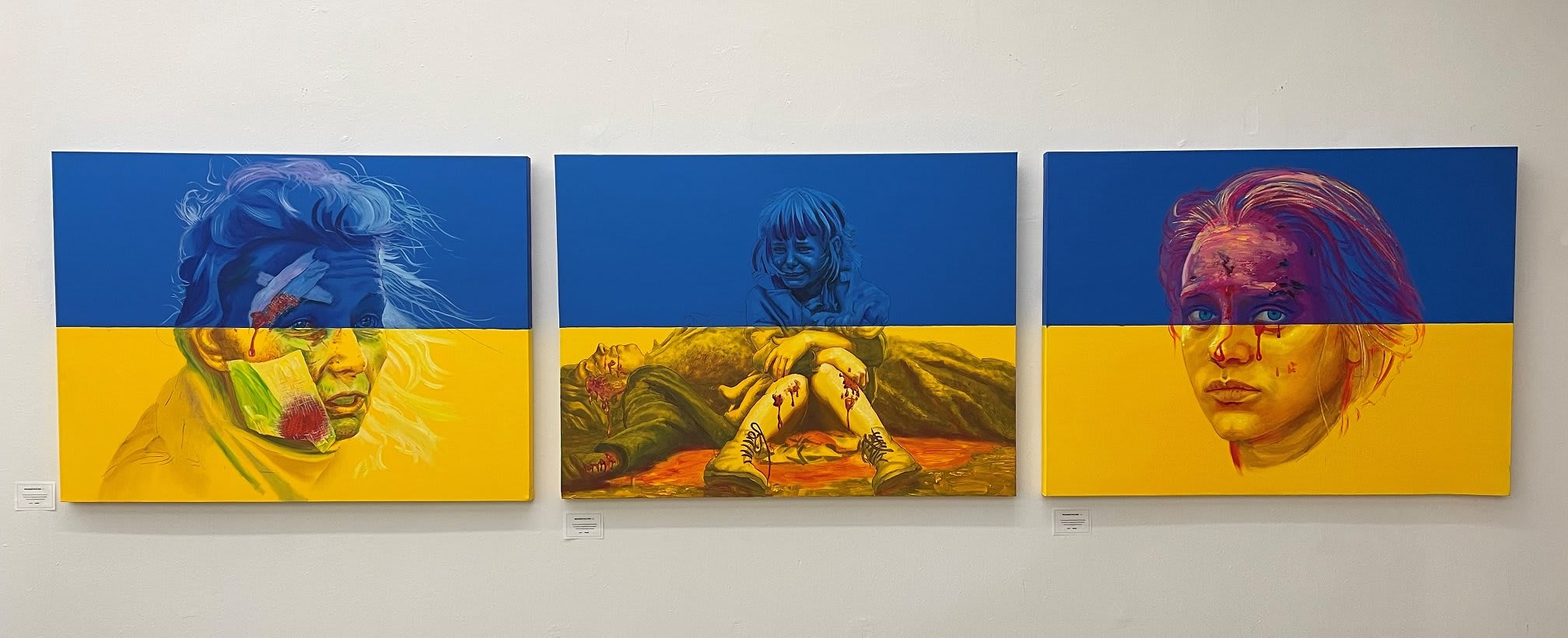 梅石老师的在乌克兰战争中遭受磨难的三个女人画像震撼了所有的人,很多人在画像前久久不愿离去,我想不是因为寻找作品中的细节,而是在做心灵的拷问,这个世界哪里出了问题,在人的生命面前,什么地缘政治意识形态都是如同粪土而不值一提,对与错如同黑与白,没有任何灰色地带让人利用。很期待明天下午来自乌克兰社区的人们和梅石老师在画作前的会面。
