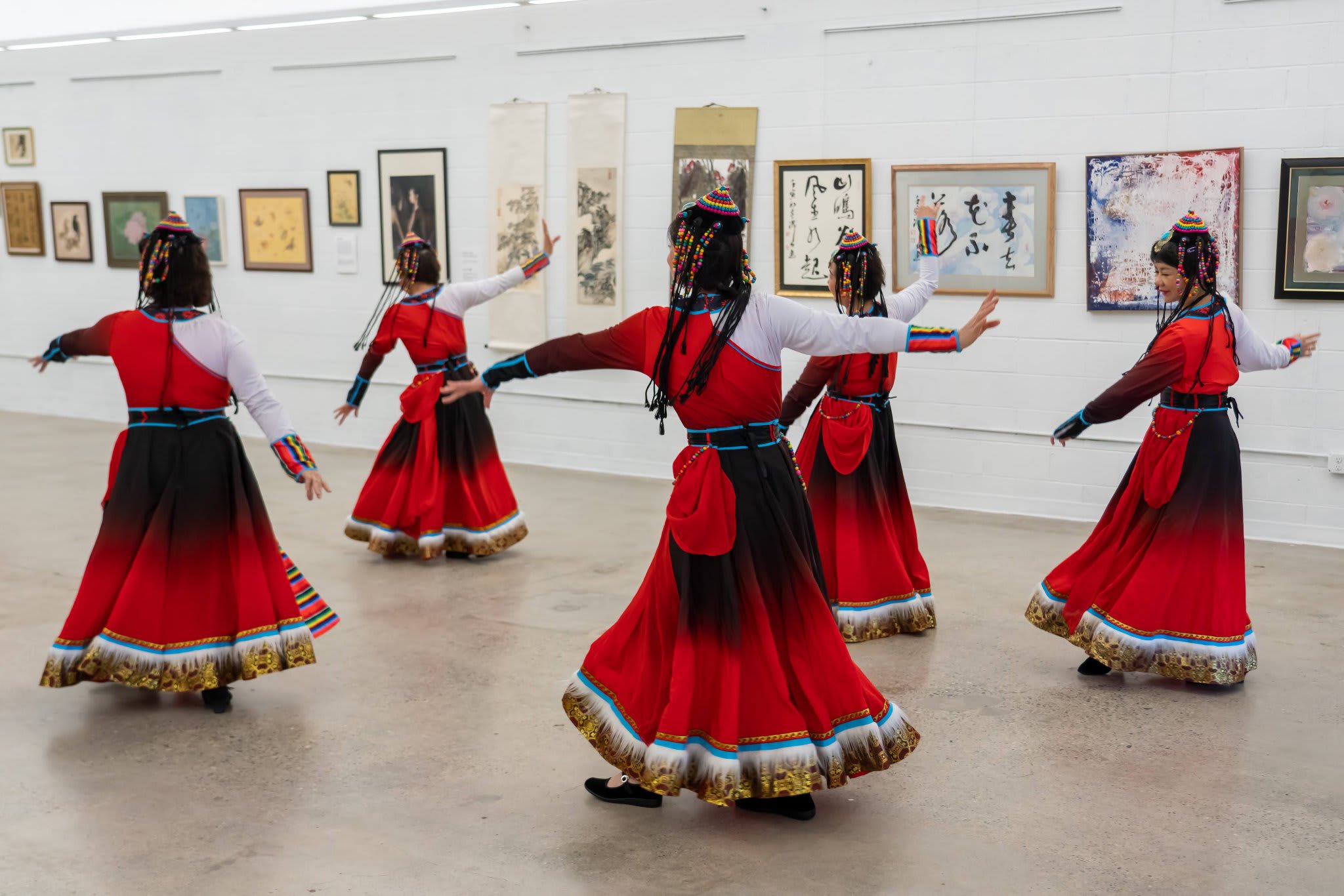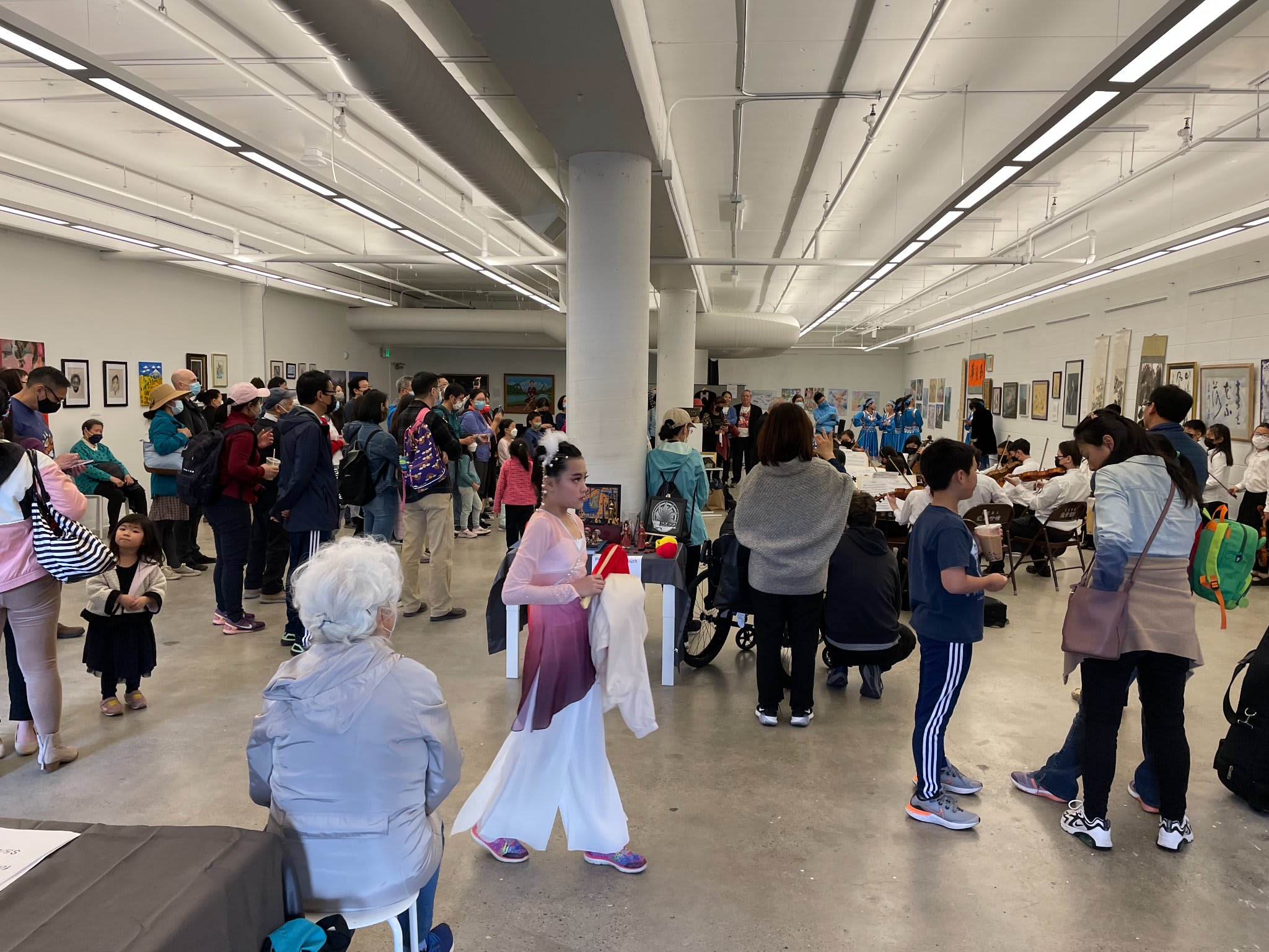 作为节目的一部分,来自社区的五个演出团体来到了中国城并进行了精彩的表演。在艺术作品作背景和人群的包围下,表演者获得了身临其境的文化体验。
