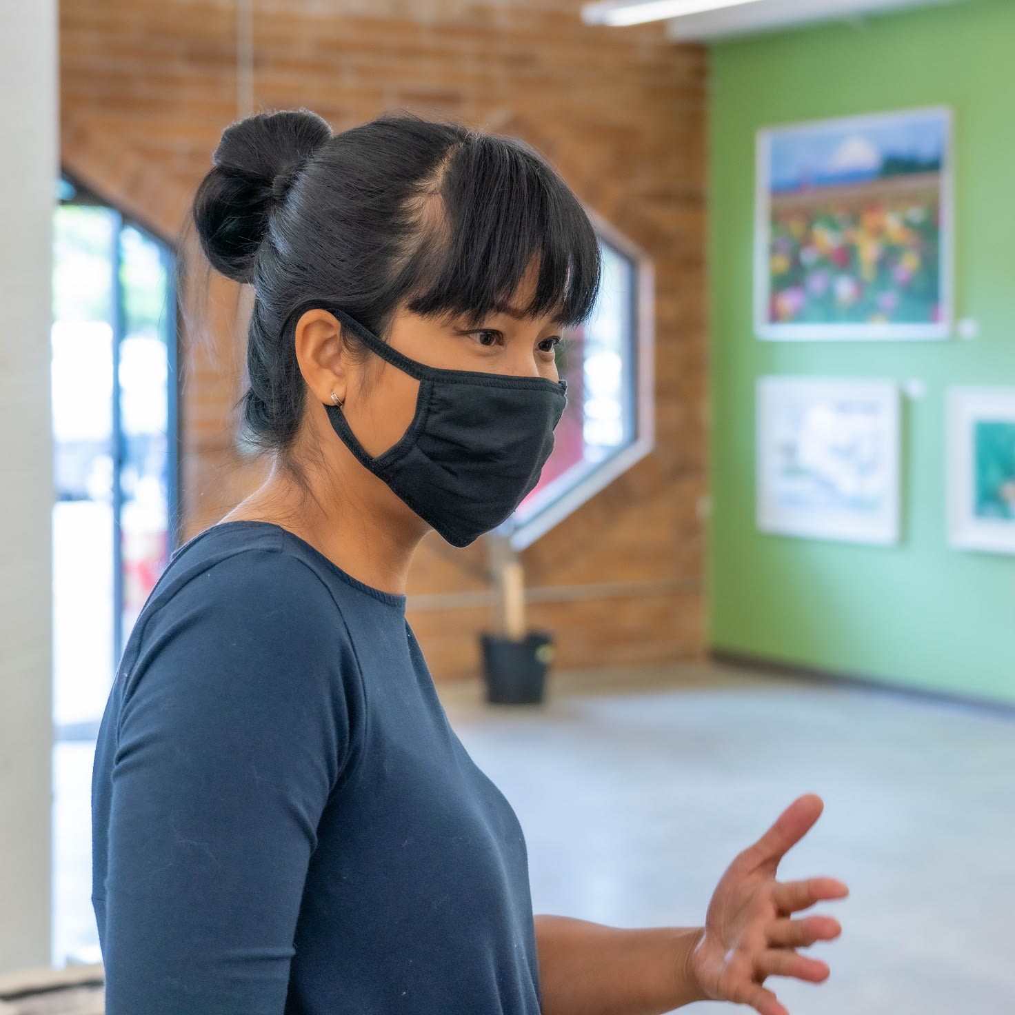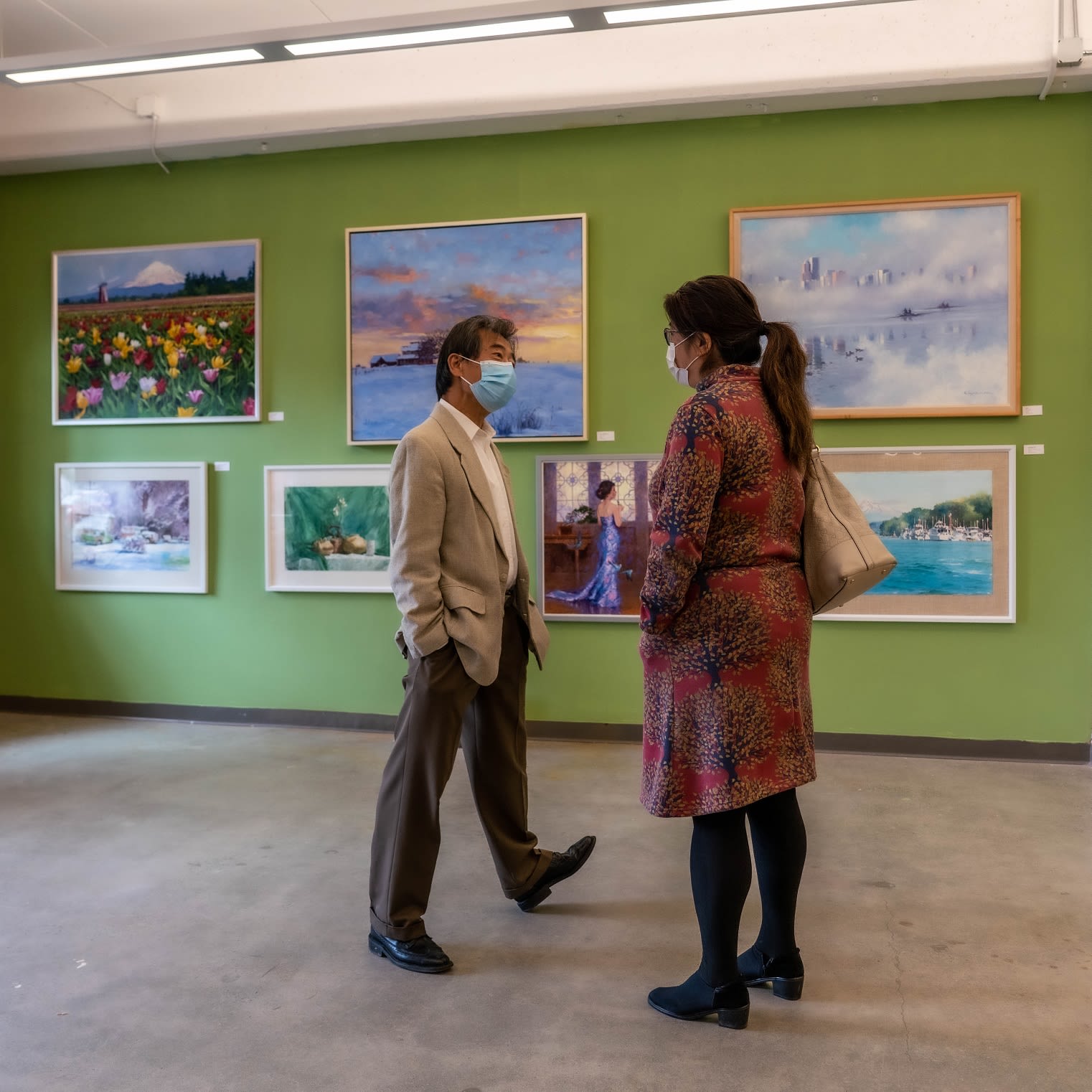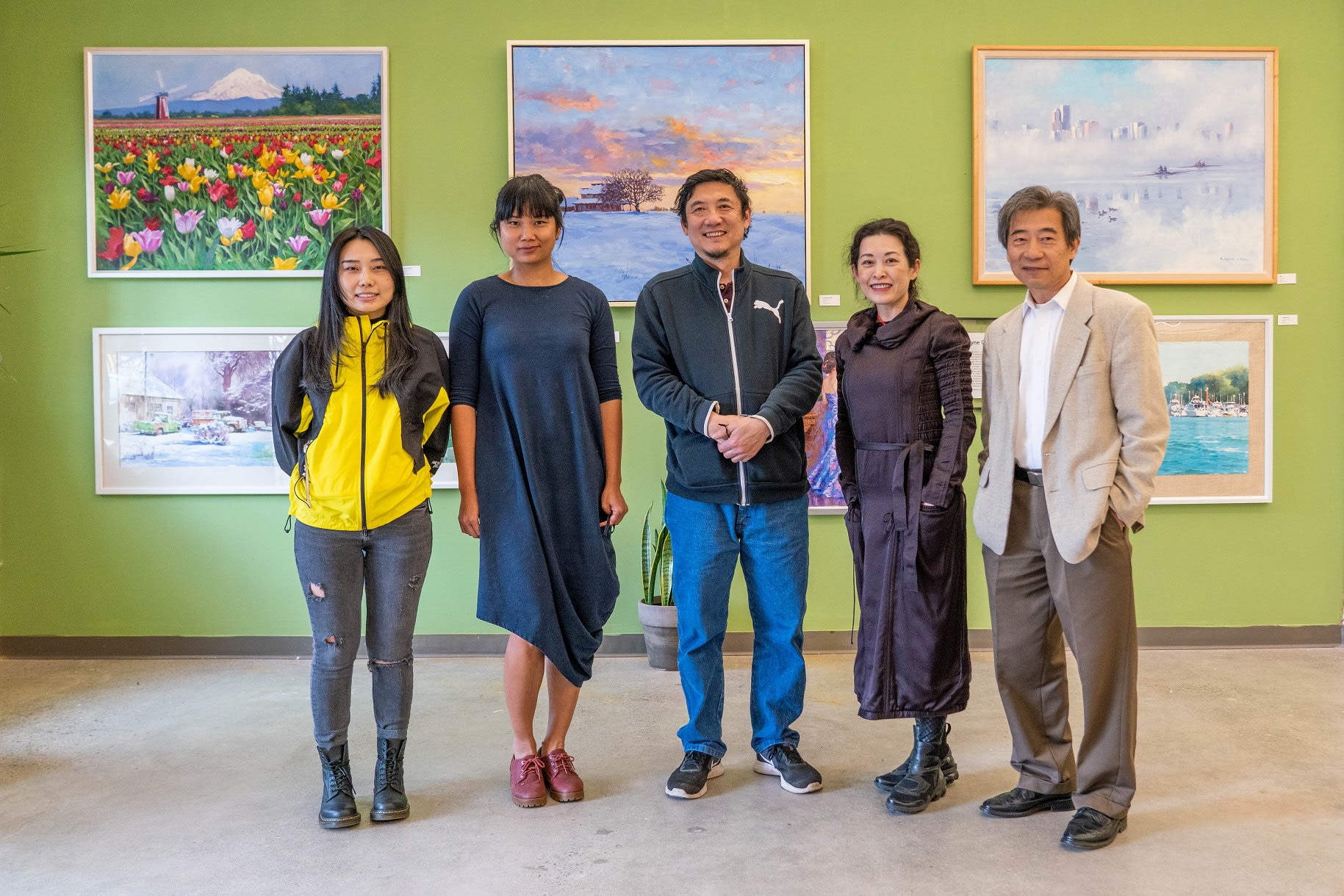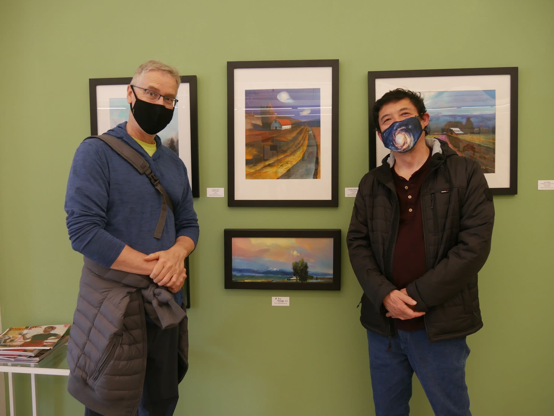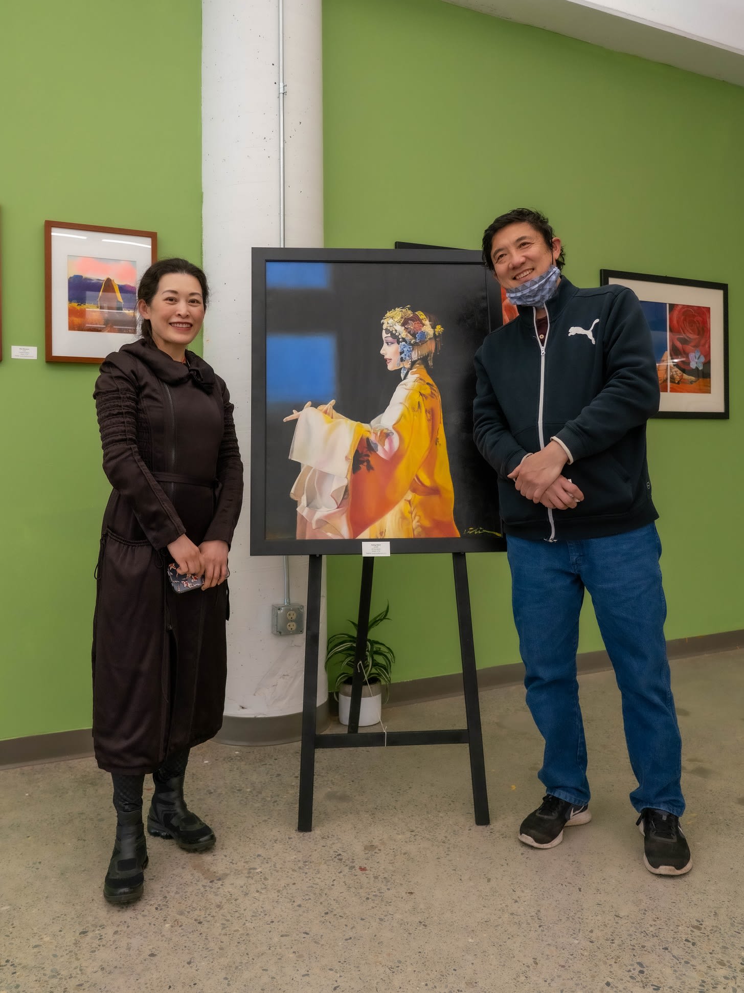 我们邀请到了5位画家参加展出,其中包括大家很熟悉的李铁和陈永雄老师,还有绘画设计才女李莉。 另外两位新的朋友是赖丽梅和李伊初,她们最近在中国城受邀在建筑外墙创作壁画,大获成功。