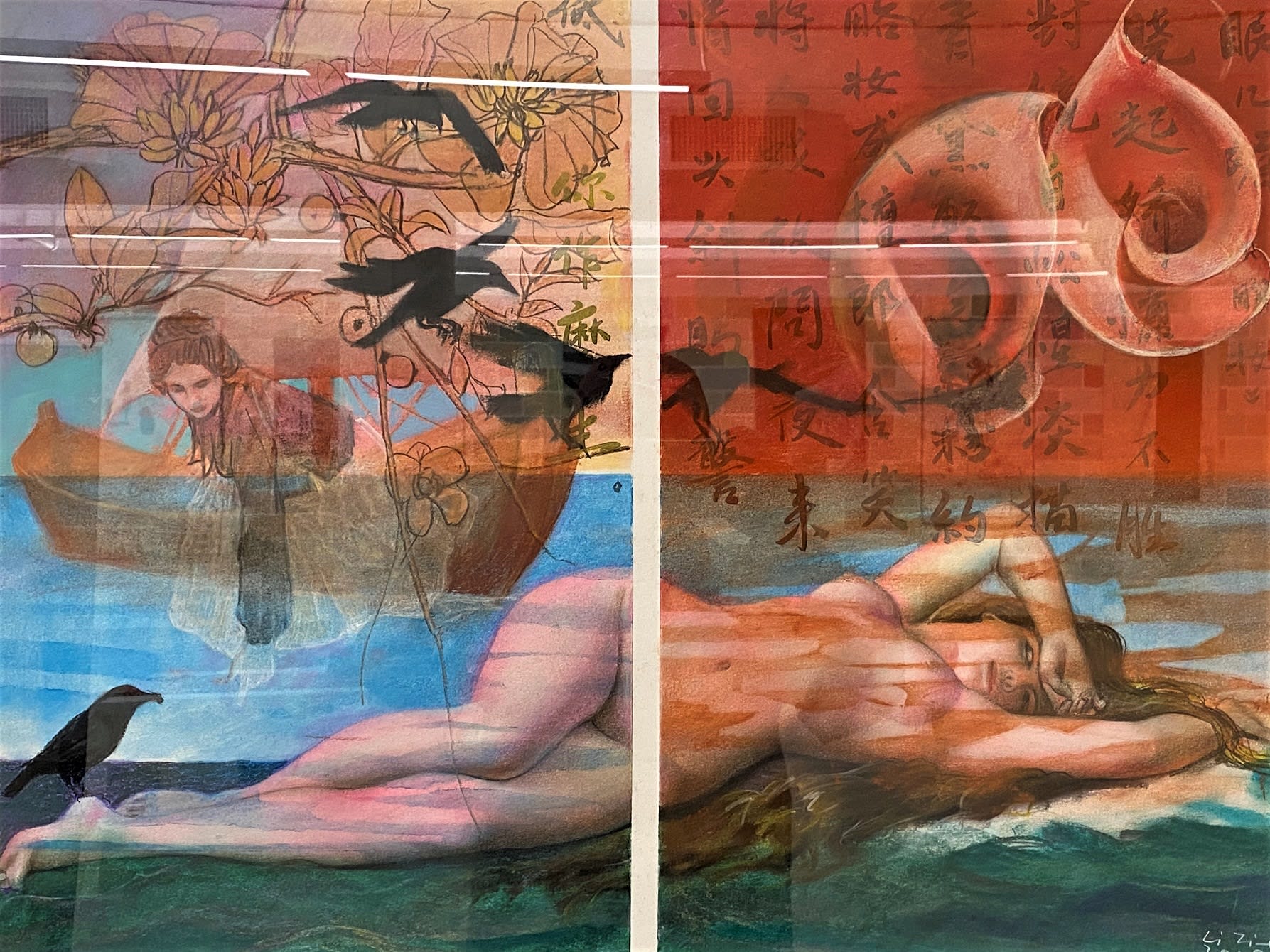 特别值得一提的是两位画界新秀赖丽梅和李一初,她们的出现让这次画展有了的新意,这个纯属一个“意外”。 因为她们的参与是中国城居委会介绍的,俩人都在中国城做过壁画,我们和主流社区的参与让更多游离在外的华人找到自己的社区,所以说,我们相识并相聚也就变得非常的合情合理。她们对艺术的追求不输前辈,但在主流社会的生存之道确很是不同。相信我么有机会更多了解她们的。