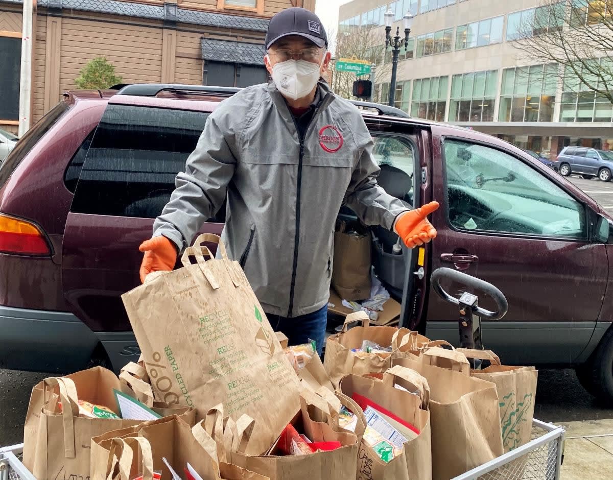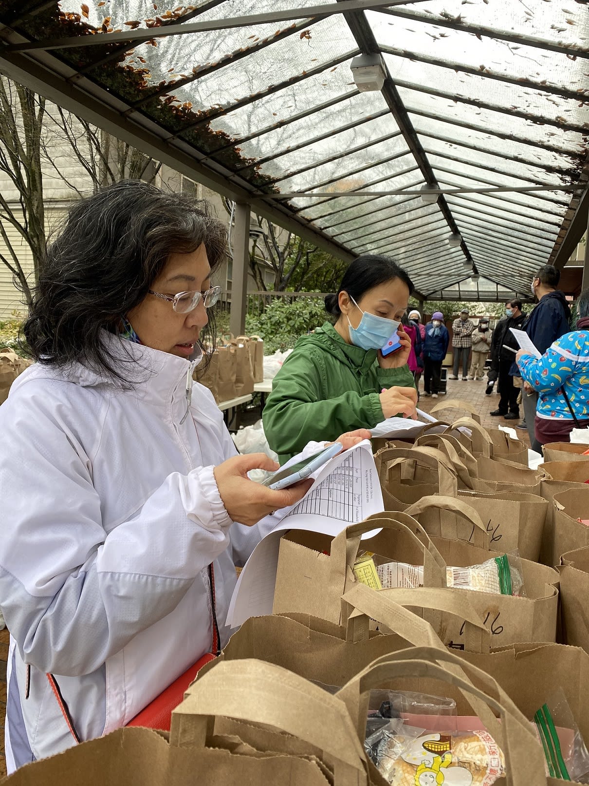 上个月赶上春节,由The Giving Tree 和 Clay Street Table组织的每月一次活动更是格外用心,购物袋里面的食品十分的丰富。来自我们社区的义工们承担了相当大一部分食品分装,运输和分发工作。 Clay Street Table的Paul每次总是拍很多照片并记下每一位义工的名字。