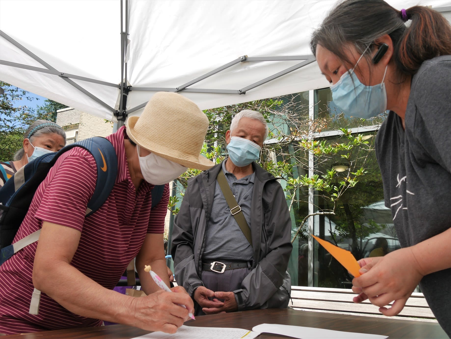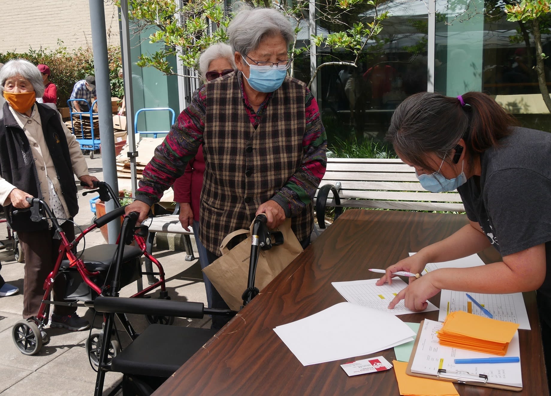 参加这个月的Asian Pantry活动,有机会和在大门口等候的老爷爷老奶奶聊天,发现高寿的老人真的不少,一张照片中的韩伯伯91岁,和他说话的老奶奶86岁。 老奶奶说自己身体没啥大的毛病,就是精神上差点。我说这就是为什么有这么多社区义工来参加活动的一个主要原因,意义不在纸袋子里面的食物,更多的是有理由大家聚在一起聊聊天,晒晒太阳,活动活动筋骨。