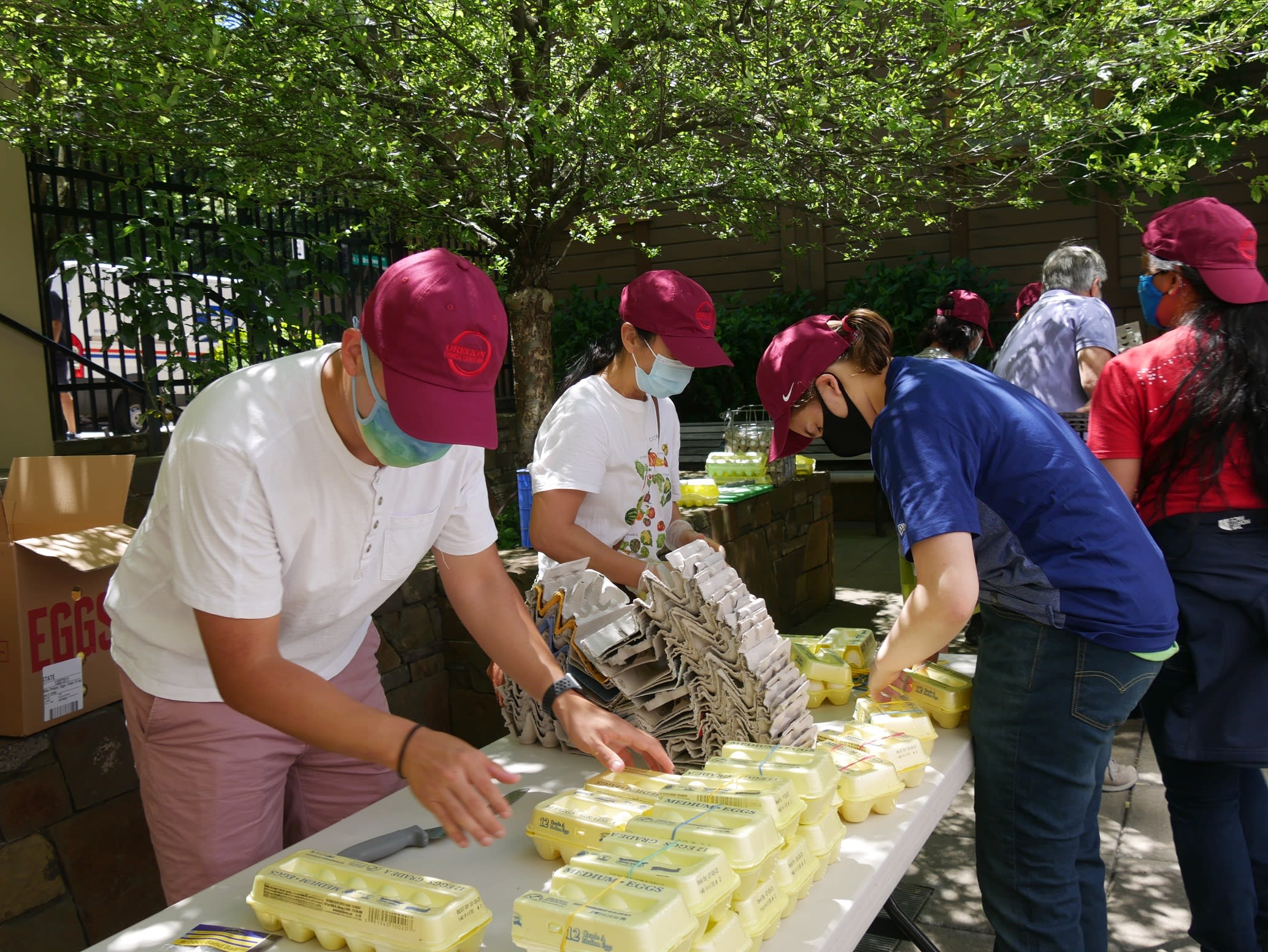 The eye-catching feature of the Asian Pantry event in June was the OCC hat. We were supposed to give them to the volunteers from our community. To our surprise, it was so popular that everyone wanted one. It was a hot day anyway. The hats did bring needed protection for the volunteers.