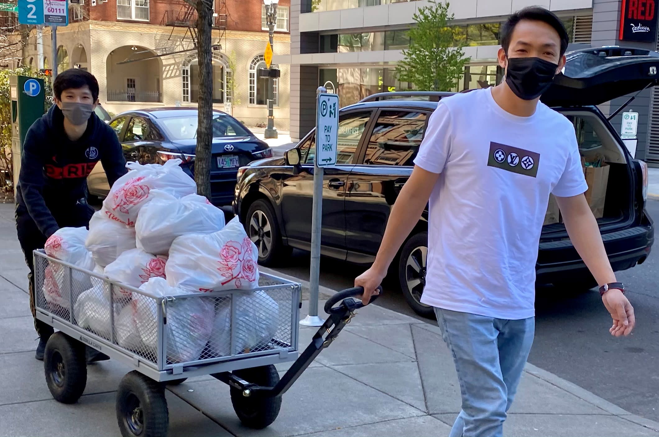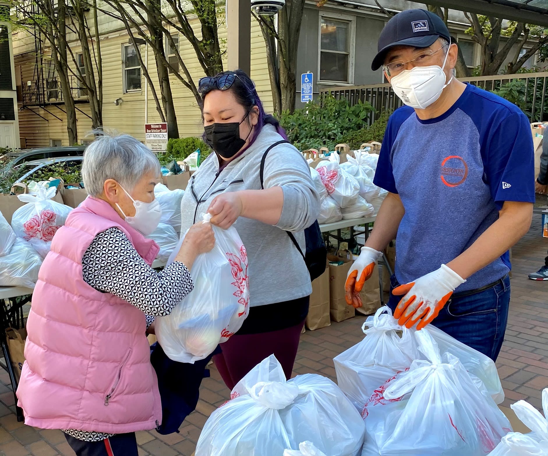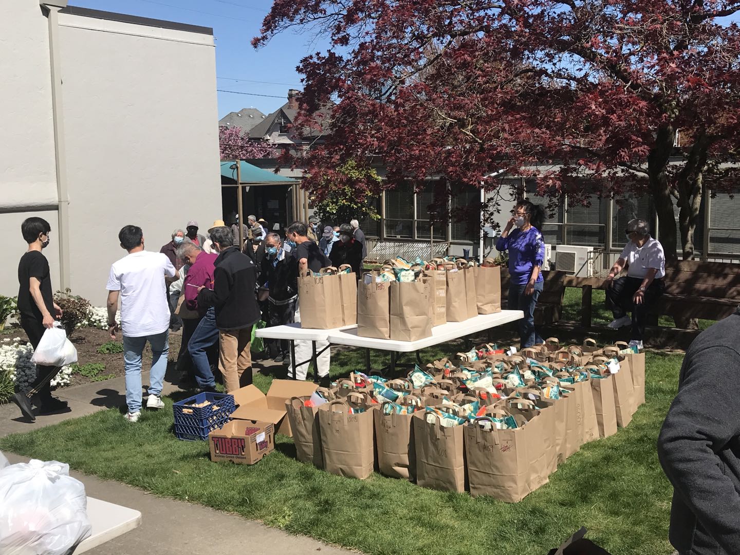 疫情期间,这项活动越办越红火,因为老人们出不了门,每月到这天老人们都是欣喜若狂,早早就等着通知什么时候下楼取东西。平时回到子女家的老人,那天基本上都会回来。另外一个原因,提供给老人们的食品绝对是越来越好,因为Gloria也争取到了OHA的grants,每个月一次这样的活动花在食品上的支出就要上4000美元。和活动刚开始相比,那就是天壤之别。