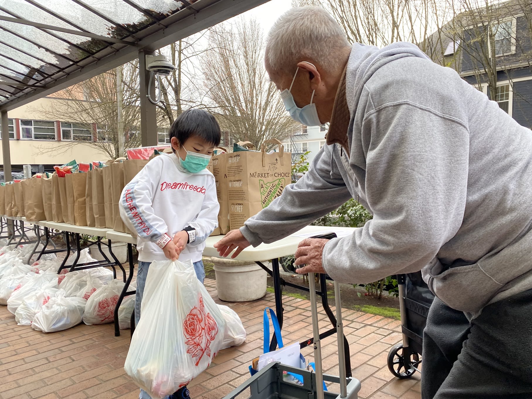 Asian Pantry活动我们完全就是“凑热闹”的,真正的主办者是The Giving Tree,实际上也就是Gloria Lee,她与Clay Street Table的Paul配合默契,因为Paul有丰富的义工资源,自然还有场地。每次分发食物的时候,老人们期盼的是来自社区的我们这些义工,但是,老人们感谢的却是华人服务中心。有意思吧?这是因为华人服务中心负责提供老人名单,而我们只是负责动员社区义工过来做事。