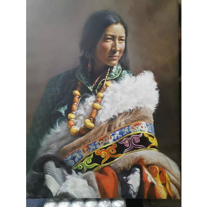 Tibetan. 布面油画,不带框,60 × 70 cm. Oil on canvas, from $380. Authored and donated by Shirakawa (顾更青).