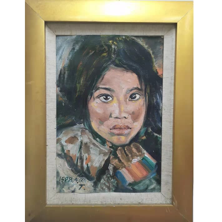 Tibetan Little Girl. Oil on paper 纸本油画, 35 × 45 cm, from $200, Painted in 1988, Authored and donated by Shirakawa (顾更青).