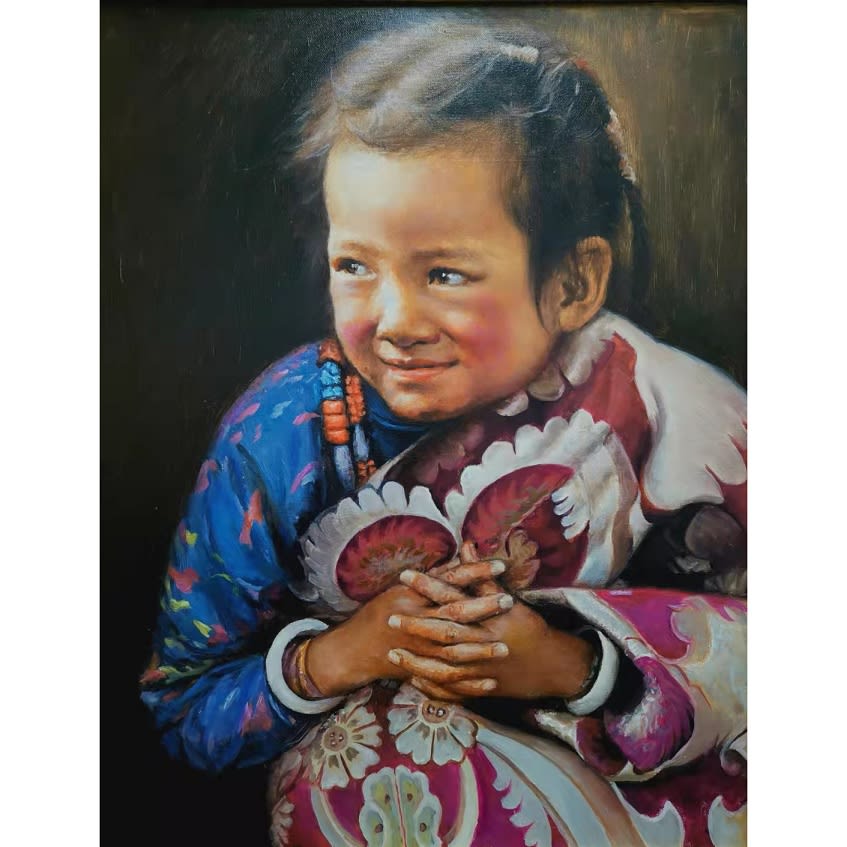 Tibetan Little Girl. 布面油画,不带框,60×70 cm. Oil on canvas, from $900 (winning bid $900). Authored and donated by Shirakawa (顾更青).