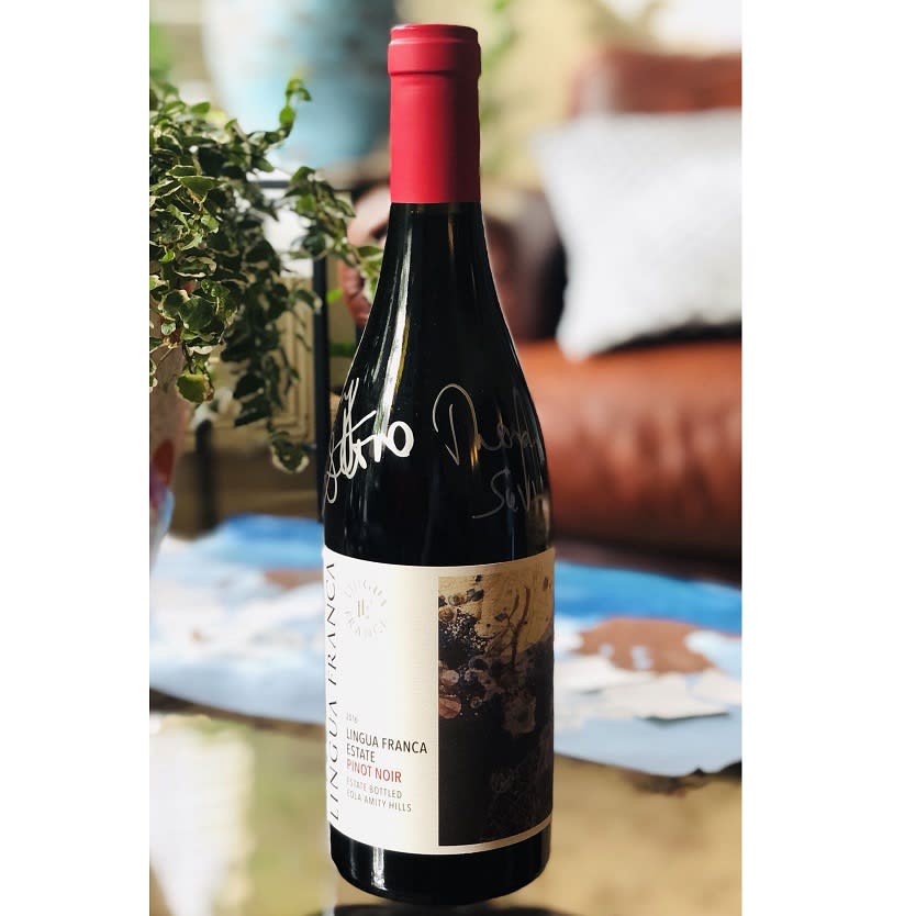 Vintage Lingua Franca Estate Pinot Noir 2016, signed by MS侍酒师大师 Larry Stone and 酿酒师 Thomas Savre, from $120 (winning bid $140), Donated by Eric Shi.