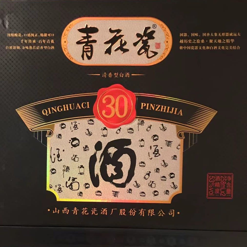 汾酒,青花30款,清香型,53度,两瓶装(每瓶258ml), from $100 (winning bid $150). Donated by anonymous.