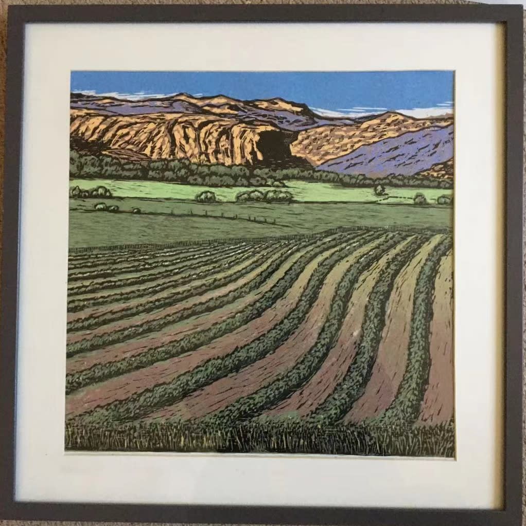 Idyilic Scenery, Block printing, framed, 15.5 × 15.5 inches, from $400. Authored and donated by Steve Chen.