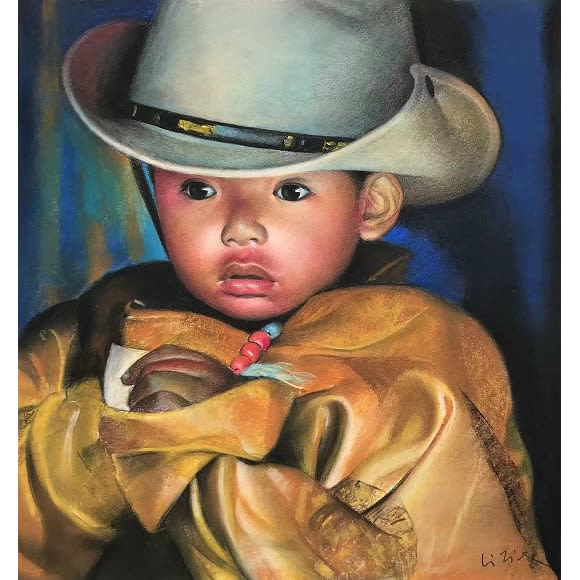 Tibetan Little Boy. Pastel on paper 纸上粉彩画, 16 x 15 inches, from $500 (winning bid $700). Authored and donated by Tie Li.