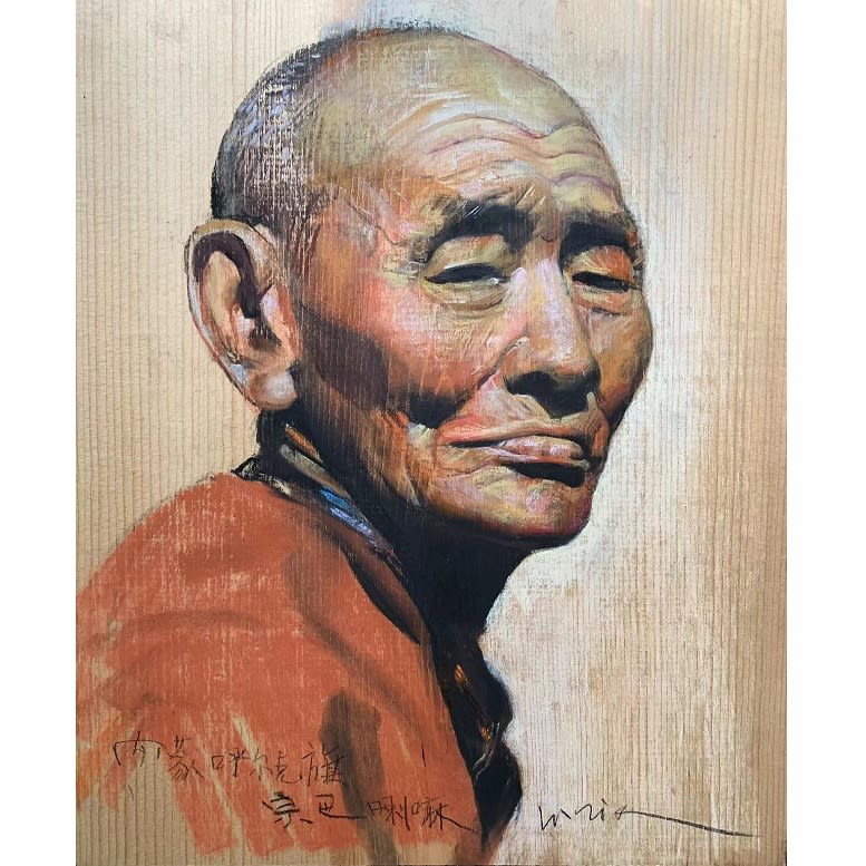 Zongba Lama. Pastel on board 色粉木板, 13 x 11 inches, from $550. Authored and donated by Tie Li.