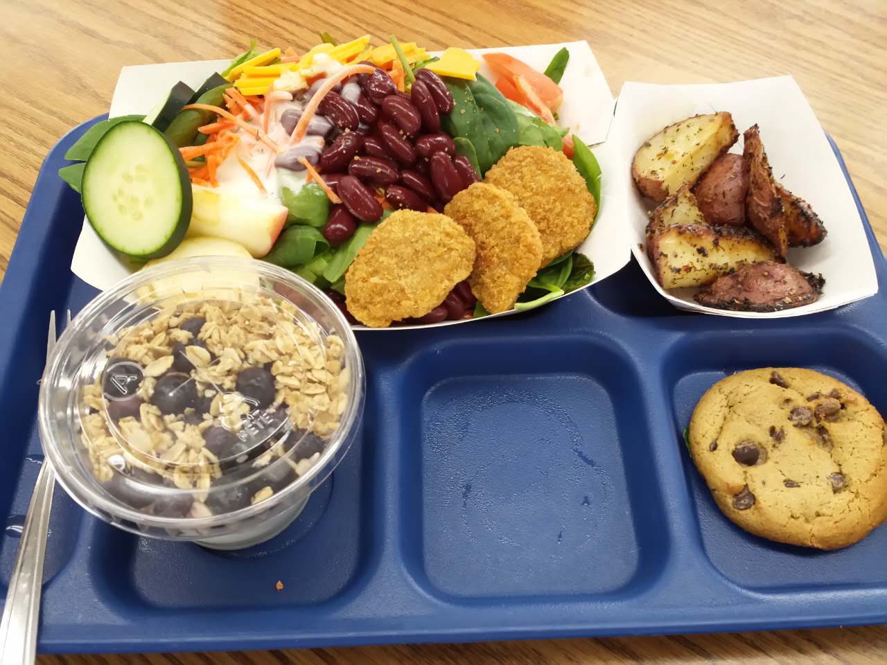 到了学校,先是金教授领着去食堂取饭,学校很慷慨,为客人提供了免费套餐。后来从校长那里知道,这原来也是学生的午餐,除了cookie学生只有半块[Grin] 我感慨道,这比我在家吃的要好多了呀[ThumbsUp] 我问起学生申请午餐补助的情况,答曰借用教室的family school的学生中,62%享受这个补助[Surprise] 校长对此并不以为然,说来之前的学校享受午餐补助的学生高达80%。