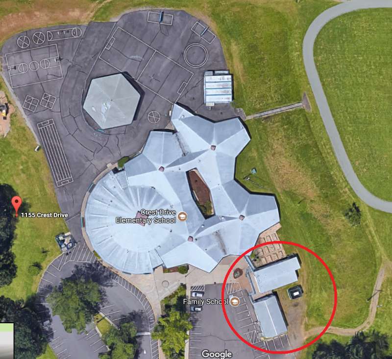 我们分享几张照片给大家,显然学校条件比较差,现在只能与学区的Family School共用教室。而相邻的Crest Drive小学至少从俯视图上看,蔚为壮观。据金教授介绍,学校现在一穷二白,教室里连一个投影仪都没有,图书馆里一本书也没有。我在和金教授电话交谈中了解到,两个年级的近六十名学生中,华裔学生(包括金教授的儿子)也只有十五六个。那么,今天有了一个很好的开头,能不能坚持下去,还真的是一个问题。如果非华裔学生半路知难而退,对于这个新的学校,对于社区热心人士,对于当地中文教育普及,都将是一个巨大的打击。