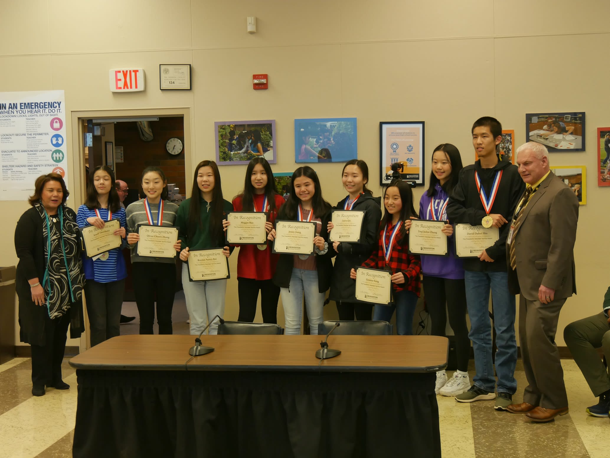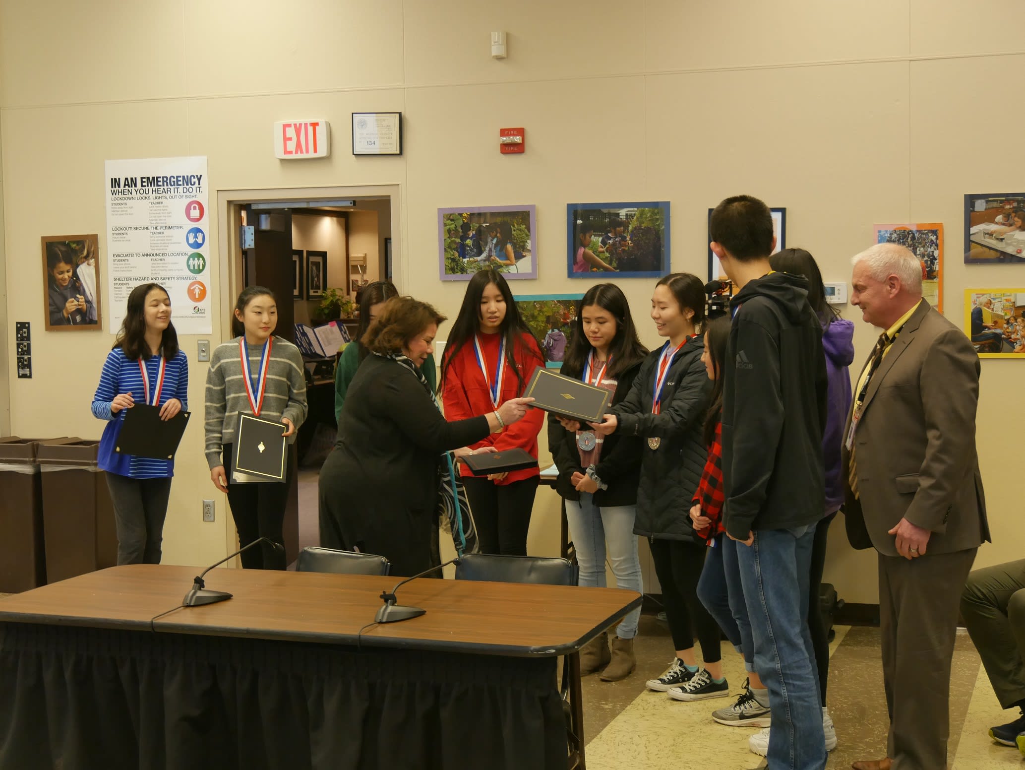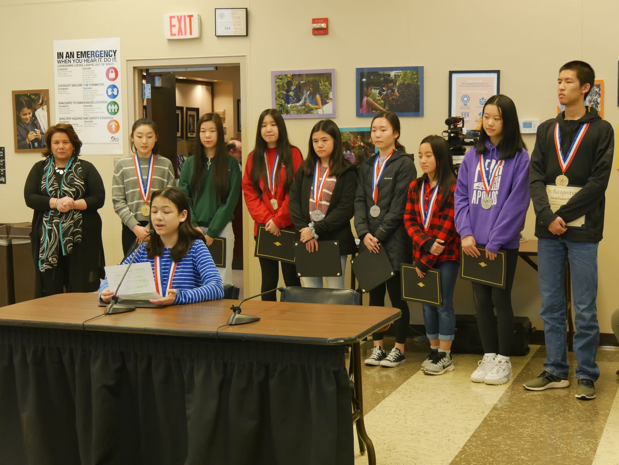 今晚来自Beaverton校区的9位获得总统义工奖的同学参加了校董会每月例会,他们得到了引领全体与会者宣读效忠誓词(the Pledge of Allegiance)的荣誉,每一位同学接受了来自校区总监和校董会主席颁发的奖状。最后,来自Whitford Middle School的Jenell Theobald代表所有获奖同学发言。