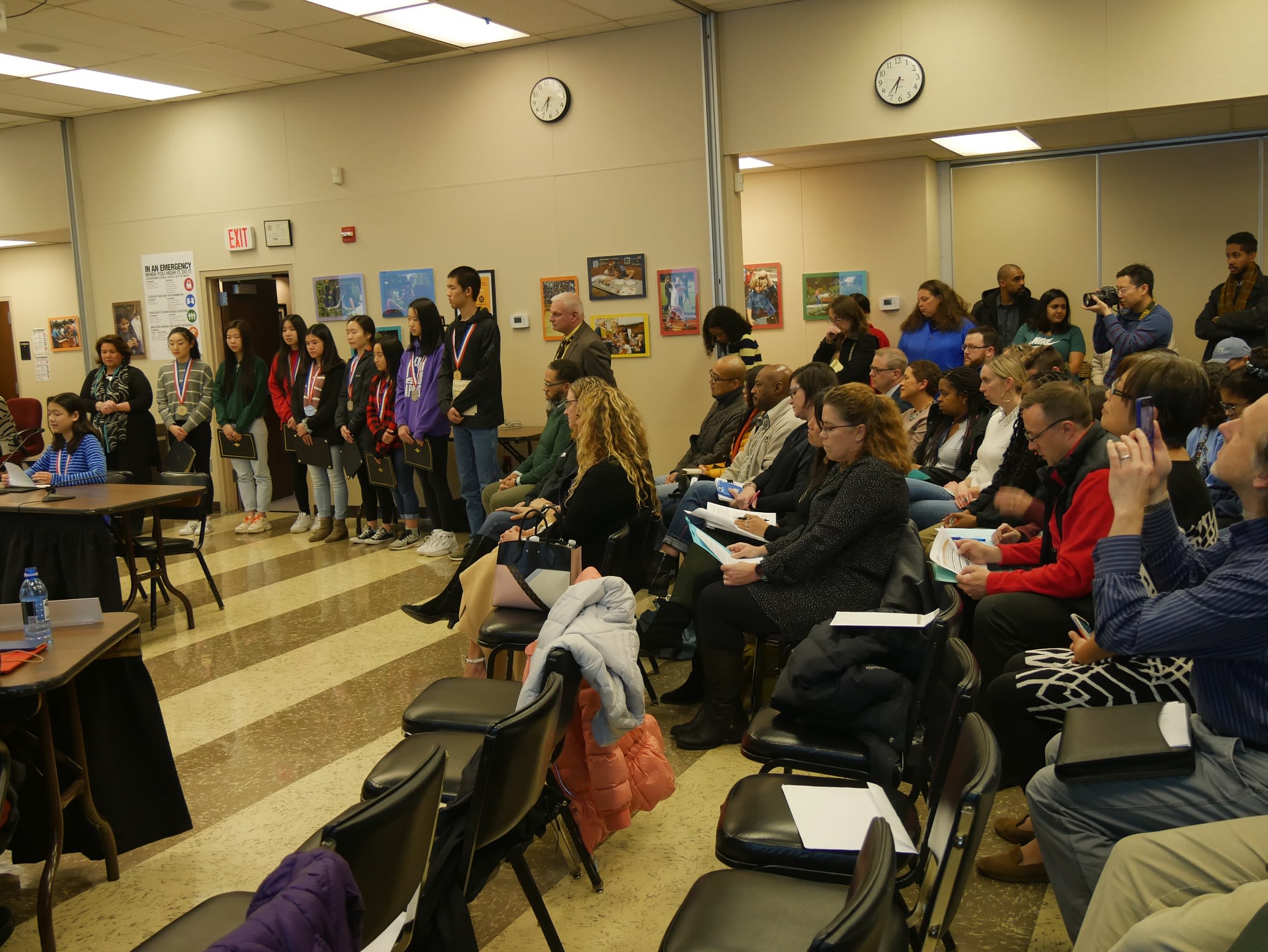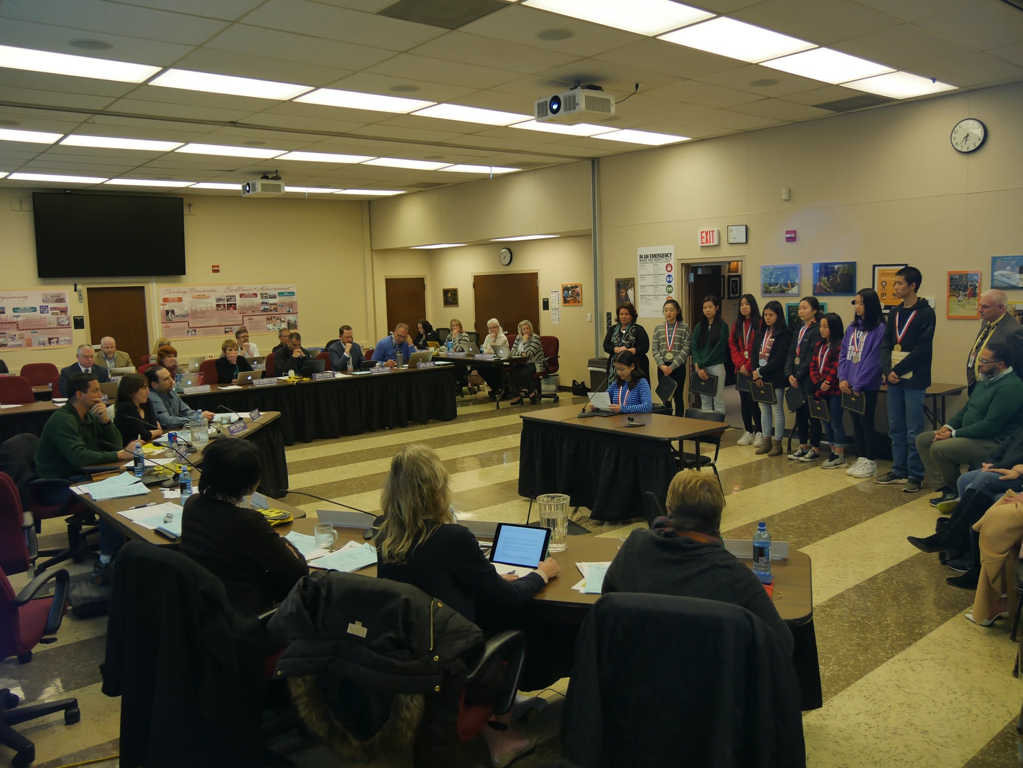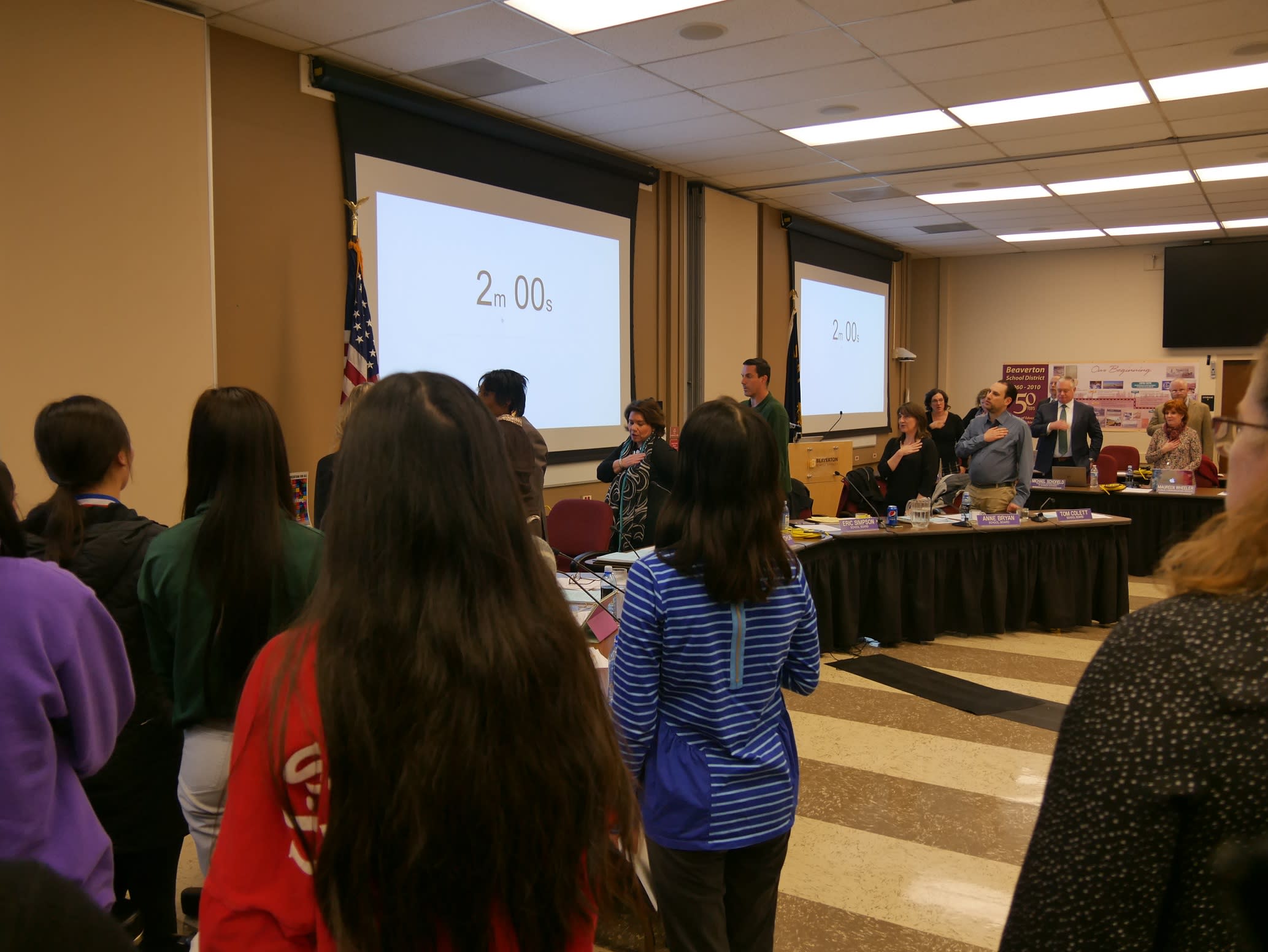 今晚来自Beaverton校区的9位获得总统义工奖的同学参加了校董会每月例会,他们得到了引领全体与会者宣读效忠誓词(the Pledge of Allegiance)的荣誉,每一位同学接受了来自校区总监和校董会主席颁发的奖状。最后,来自Whitford Middle School的Jenell Theobald代表所有获奖同学发言。