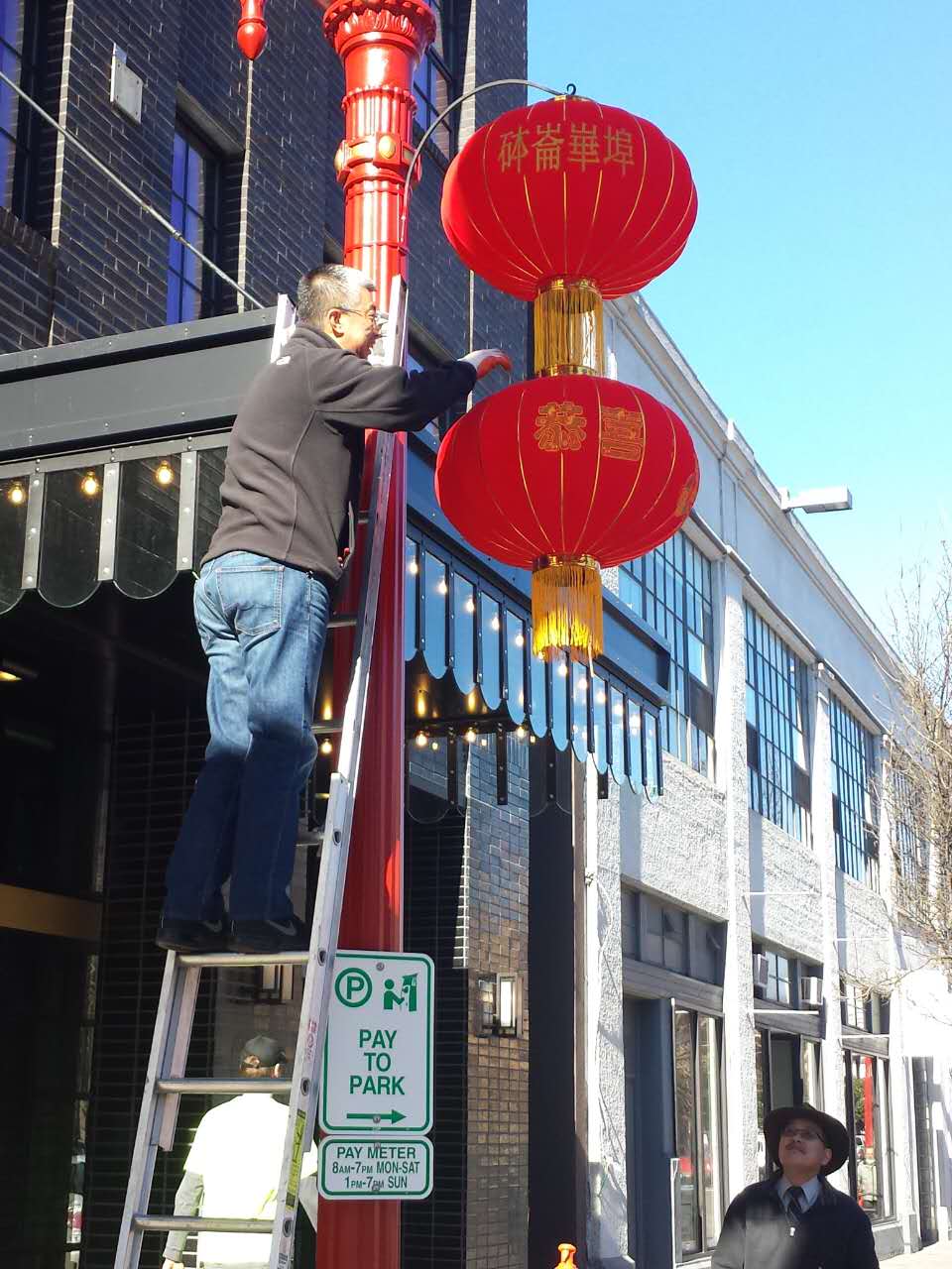 Hanging Red Lanterns in Chinatown (02.13.2018)