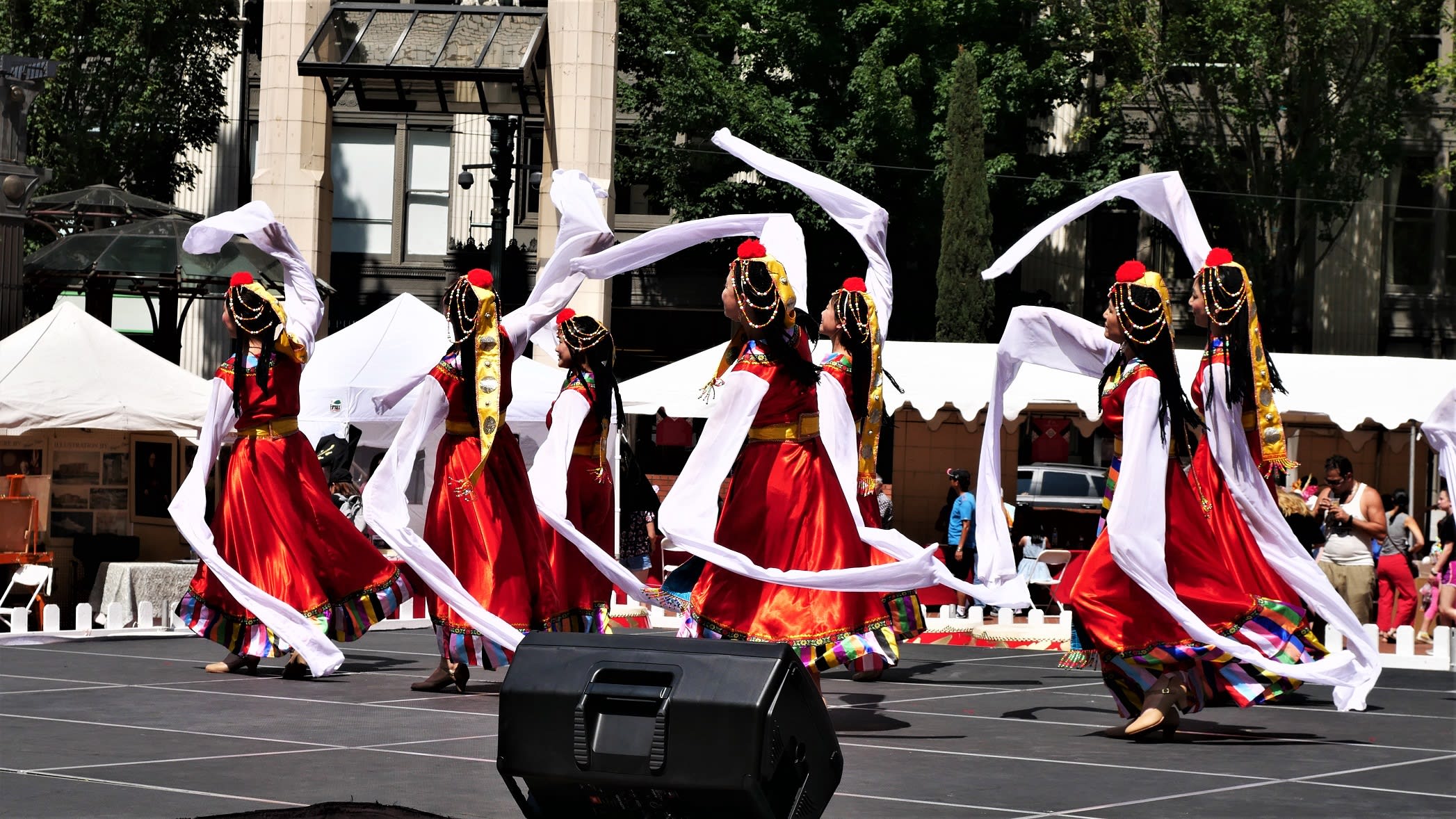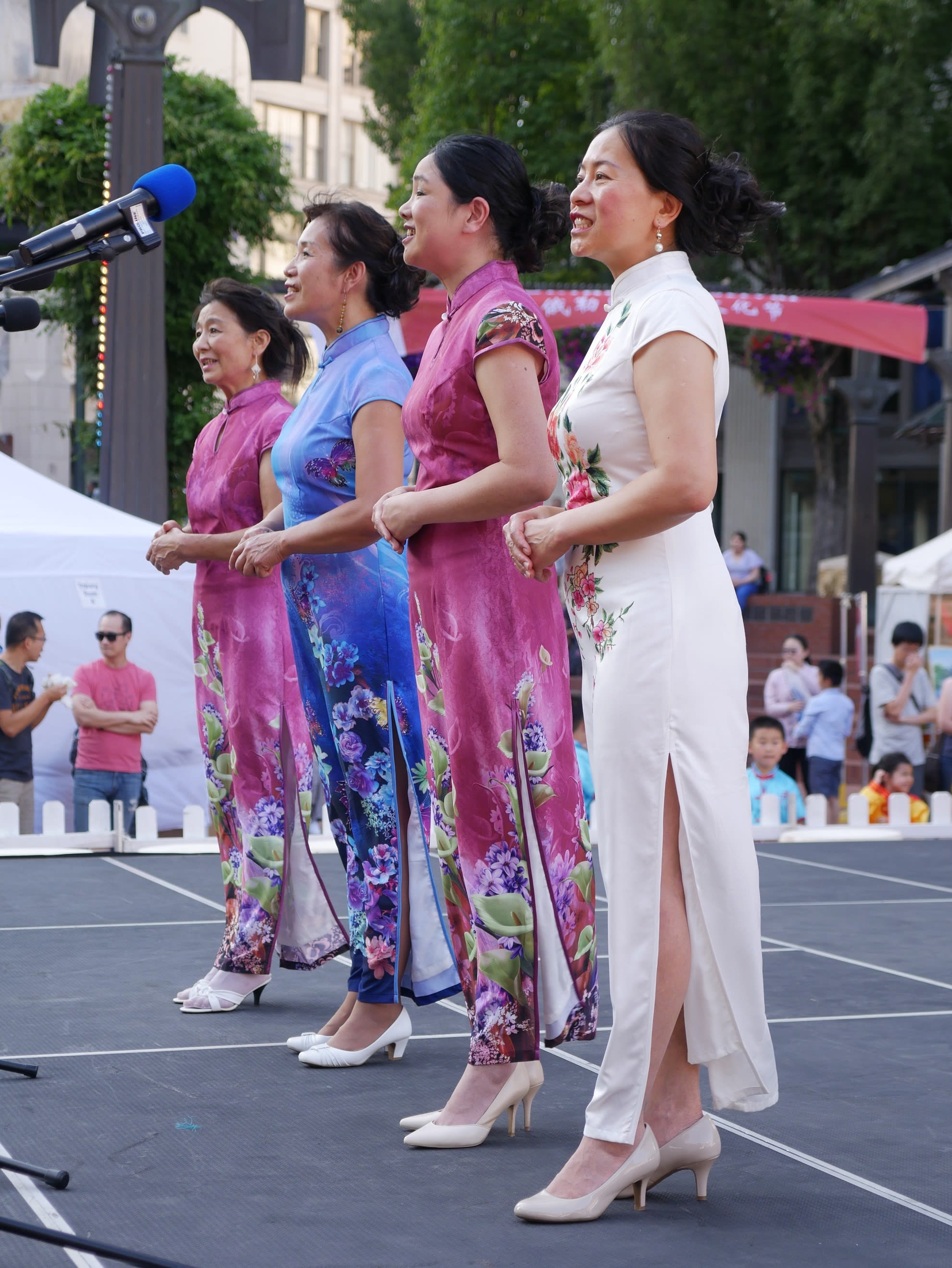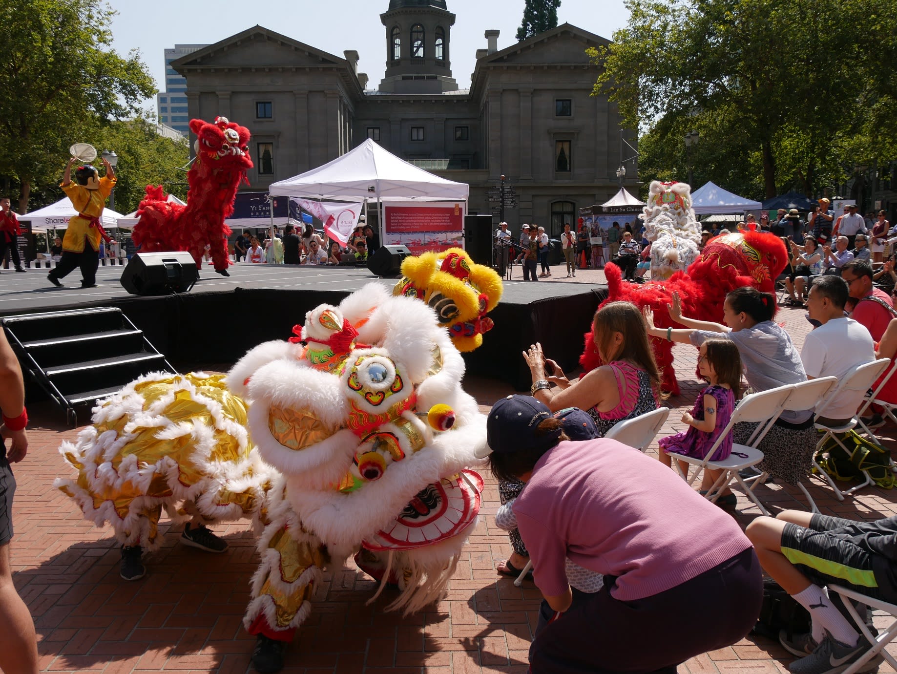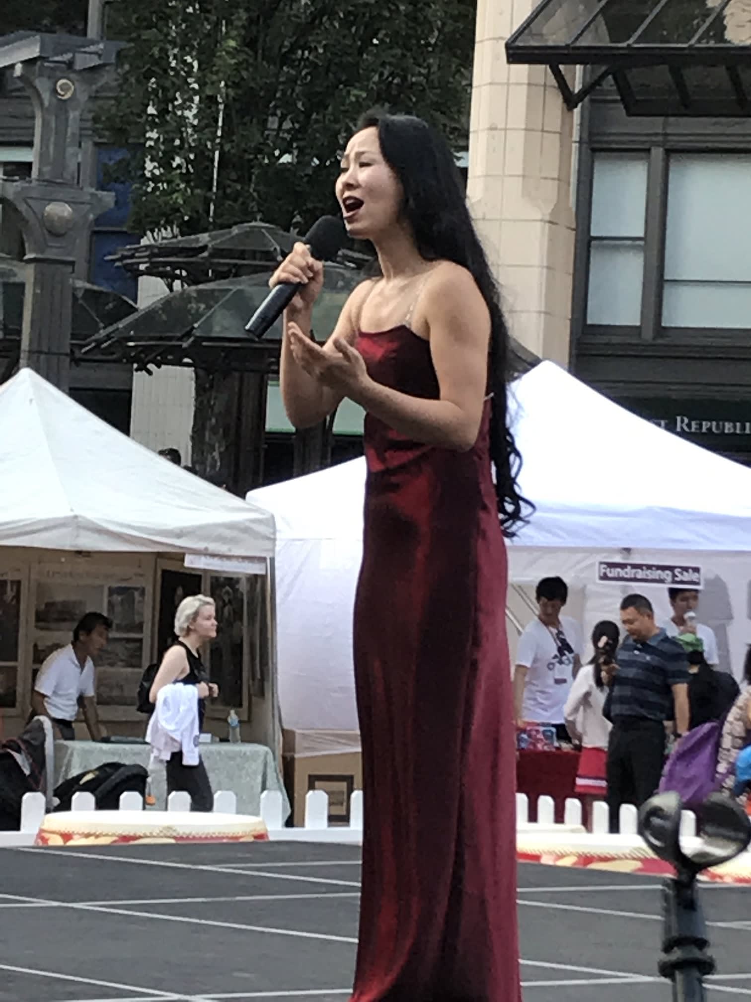 但是无论如何,还是要提到两个团体,一个是来自Corvallis的东方舞艺术团,这是我们社区活动中第一次邀请到Metro之外的华人团体,她们不仅克服了上面提到的团员不齐的问题,对远道而来从没有任何抱怨,只是一再表示能为文化节演出深感荣幸。另一个是高加敏老师的美国武术中心,高老师和女儿前一天刚从国内回来,因为航班的问题,在路途上耽搁了很长时间。旅途劳顿外加天气炎热让高老师的女儿在演出后突然出现了听力问题。高老师心情着急,但是除了一边按人中,还在安慰周边的人。恰巧陈静在旁边,帮助按摩穴位,这才逐渐恢复了听力,大家方如释重负。