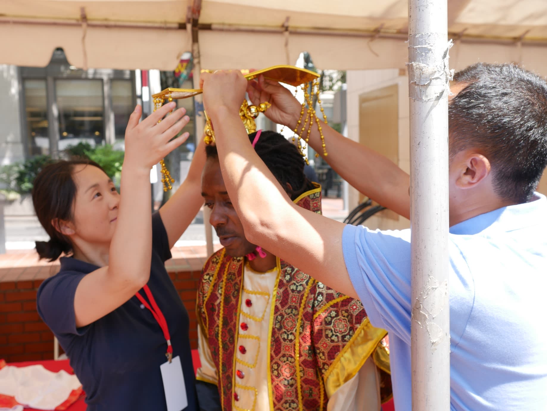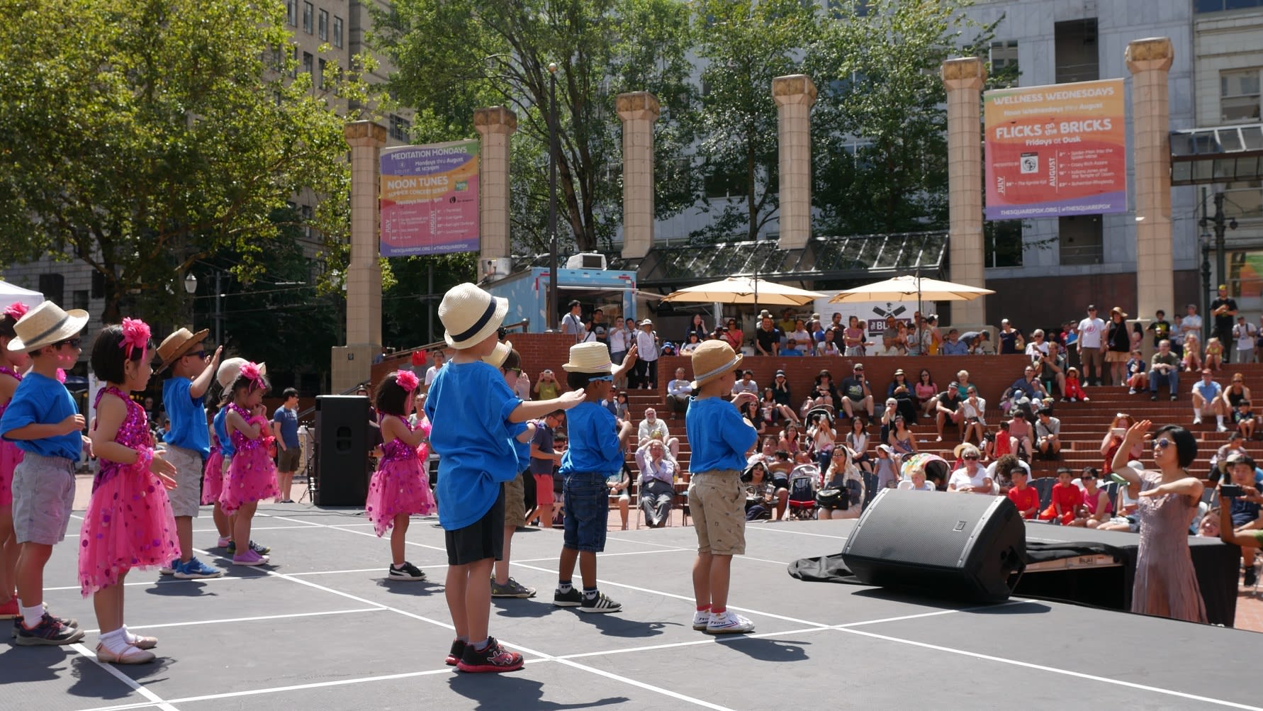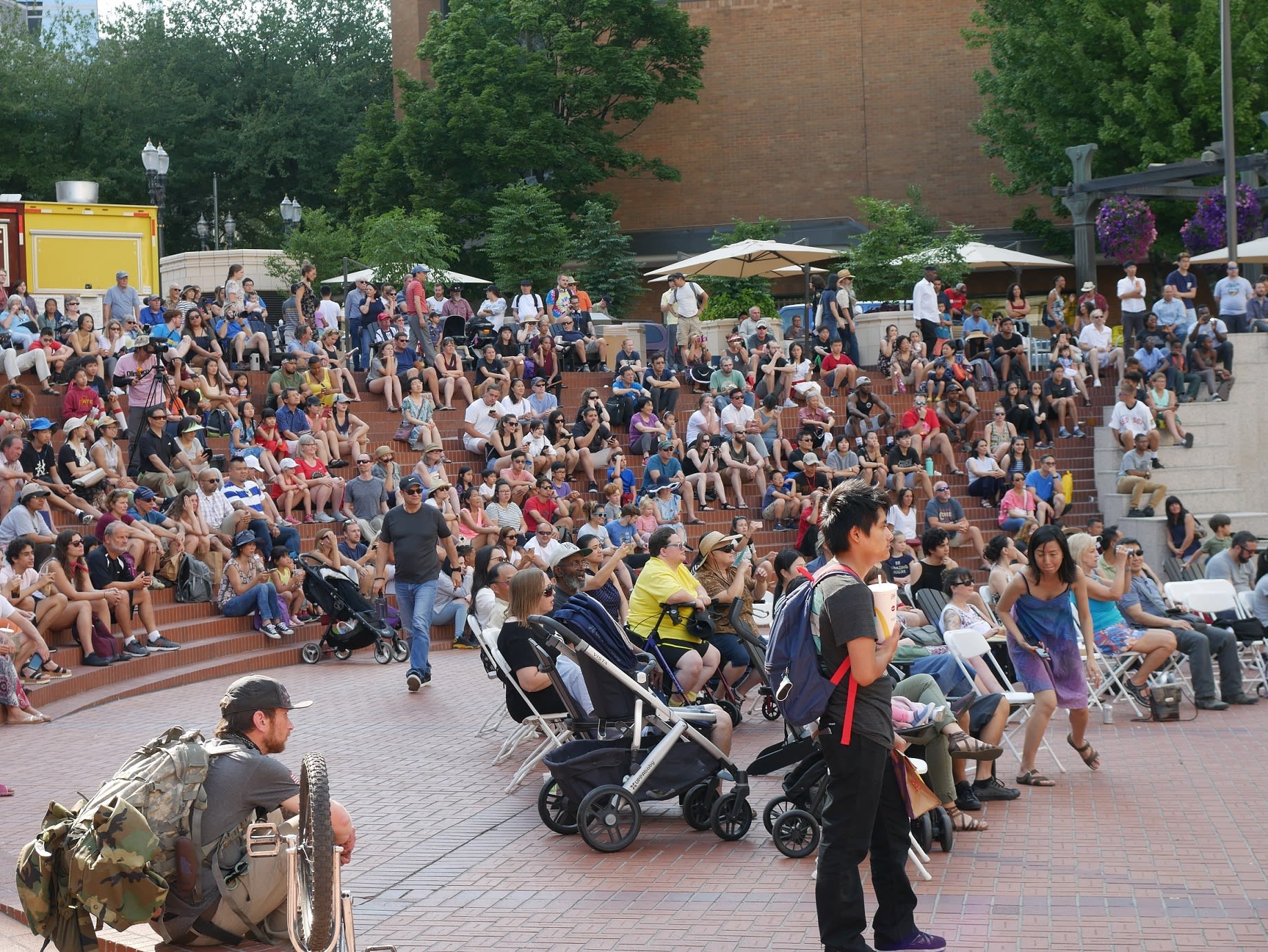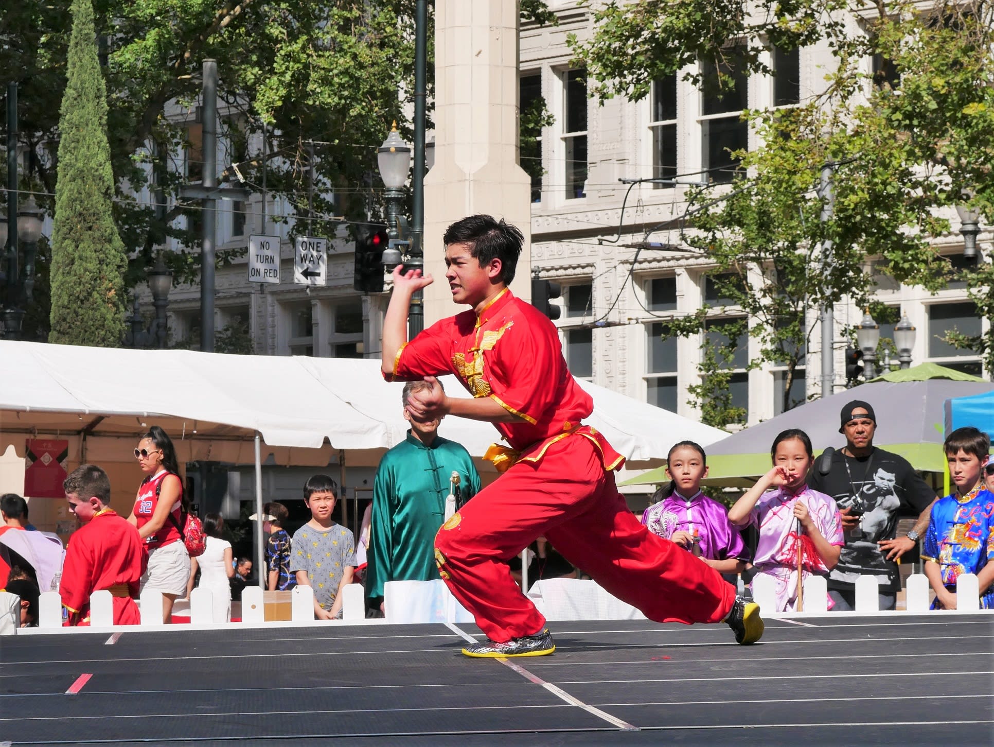 但是无论如何,还是要提到两个团体,一个是来自Corvallis的东方舞艺术团,这是我们社区活动中第一次邀请到Metro之外的华人团体,她们不仅克服了上面提到的团员不齐的问题,对远道而来从没有任何抱怨,只是一再表示能为文化节演出深感荣幸。另一个是高加敏老师的美国武术中心,高老师和女儿前一天刚从国内回来,因为航班的问题,在路途上耽搁了很长时间。旅途劳顿外加天气炎热让高老师的女儿在演出后突然出现了听力问题。高老师心情着急,但是除了一边按人中,还在安慰周边的人。恰巧陈静在旁边,帮助按摩穴位,这才逐渐恢复了听力,大家方如释重负。