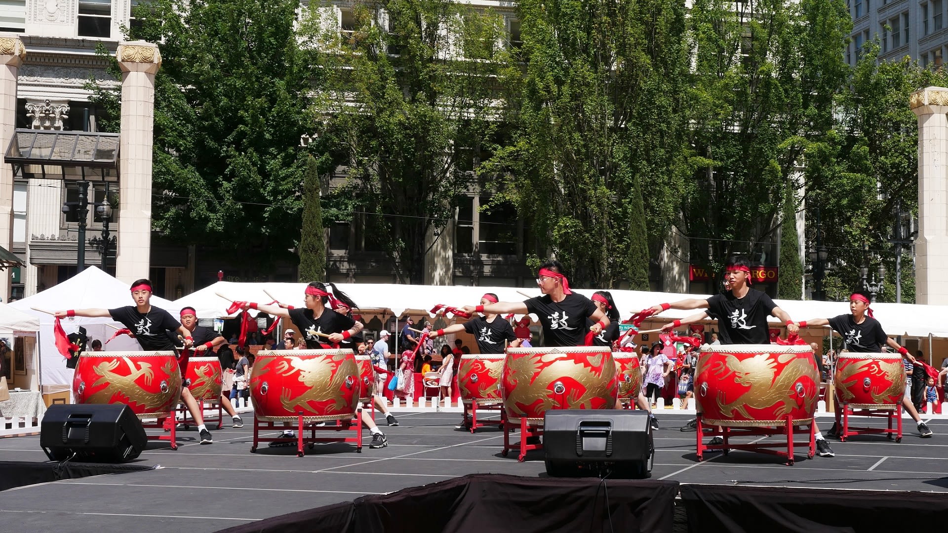 现在贴出来的是NW Chinese Dance Troupe的演出瞬间,单独提出来不仅仅是作为艺术指导的邵雯雯为了此次活动改变了全家旅行计划,更主要的是临危受命,接受邀请为刚刚成立的击鼓队编排动作并指挥操练。每次都是在舞蹈队练习结束后匆匆赶来,在大鼓声中只能是喊着纠正动作。我想大家也看到了她们的舞蹈队惊艳的演出和击鼓队气壮山河的动作。