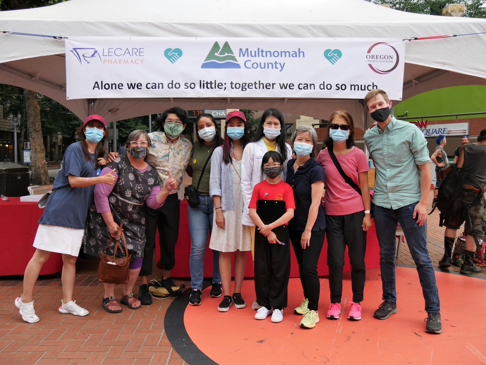 最后,很高兴告诉大家,现场的疫苗接种点一共给78人注射了疫苗,这个数字比平时类似的活动高出了许多! County决定把挂在帐篷上的横幅保存起来,以纪念社区团体合作抗击疫情的这段难忘的经历。