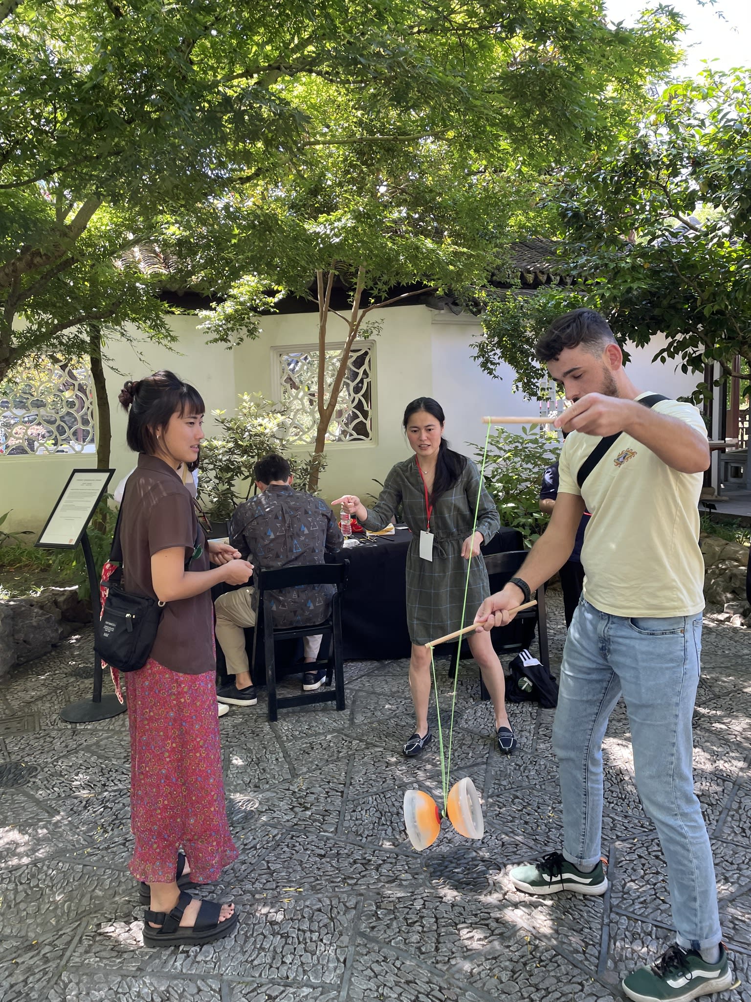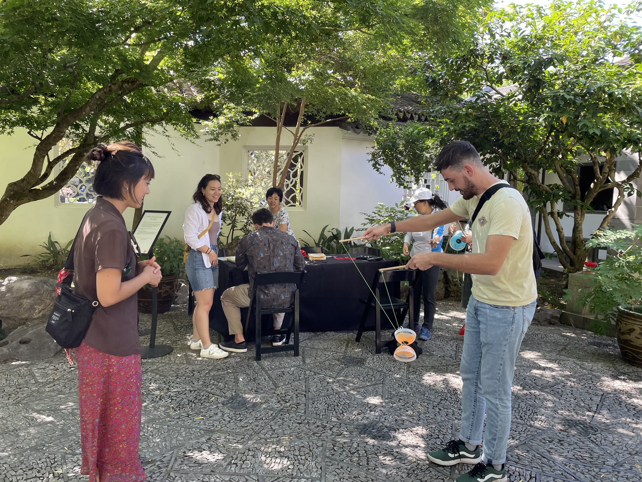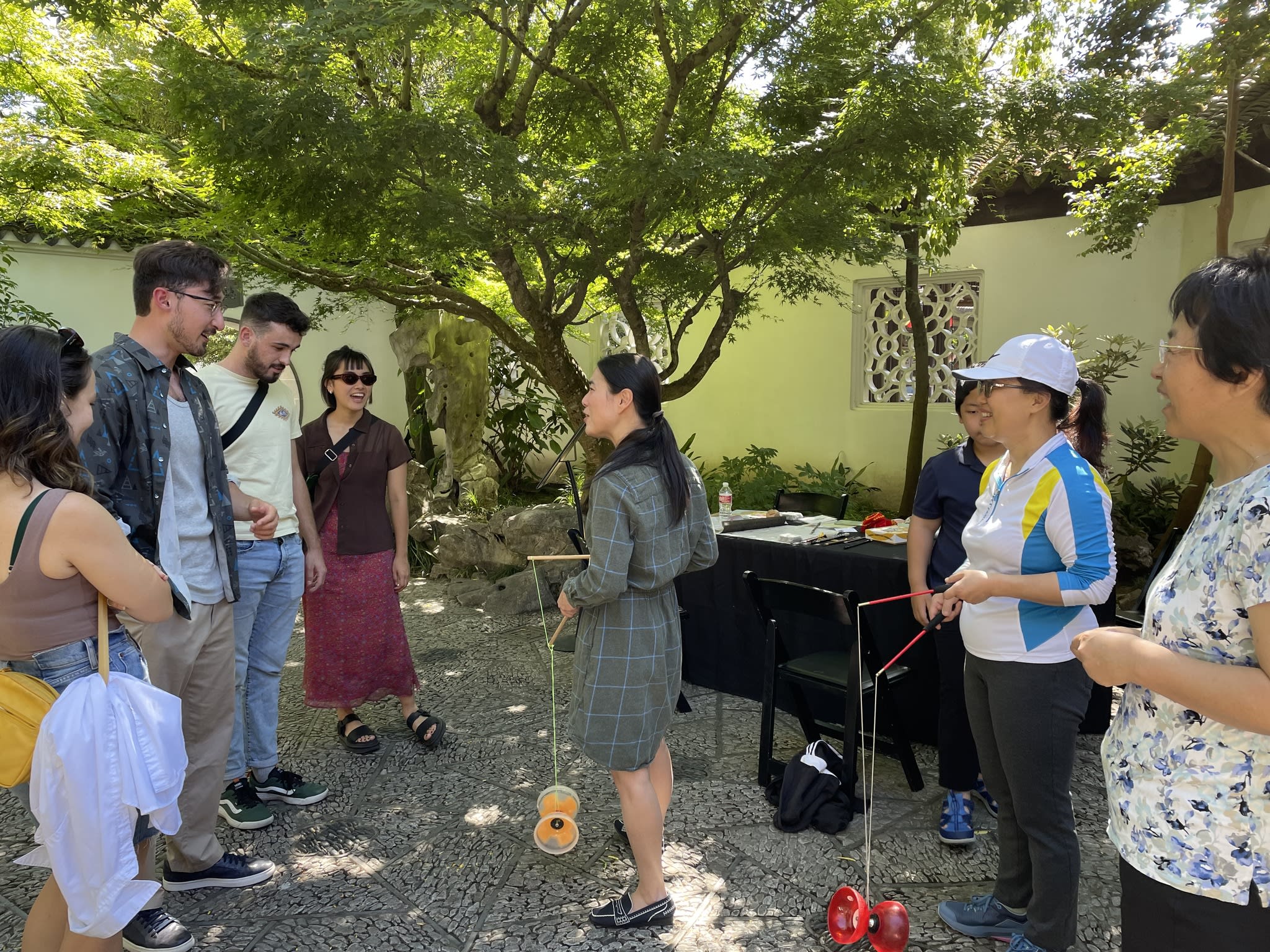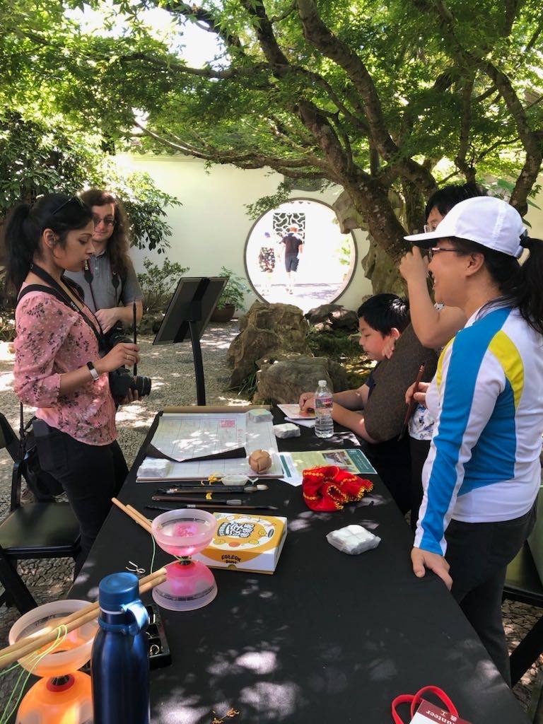 Yo-Yo proved to be a popular activity at the Chinese Conversation Table. The Scholar Courtyard at Lan Su Chinese Garden provided the perfect setting for having fun, practicing calligraphy, and engaging in lively conversations.