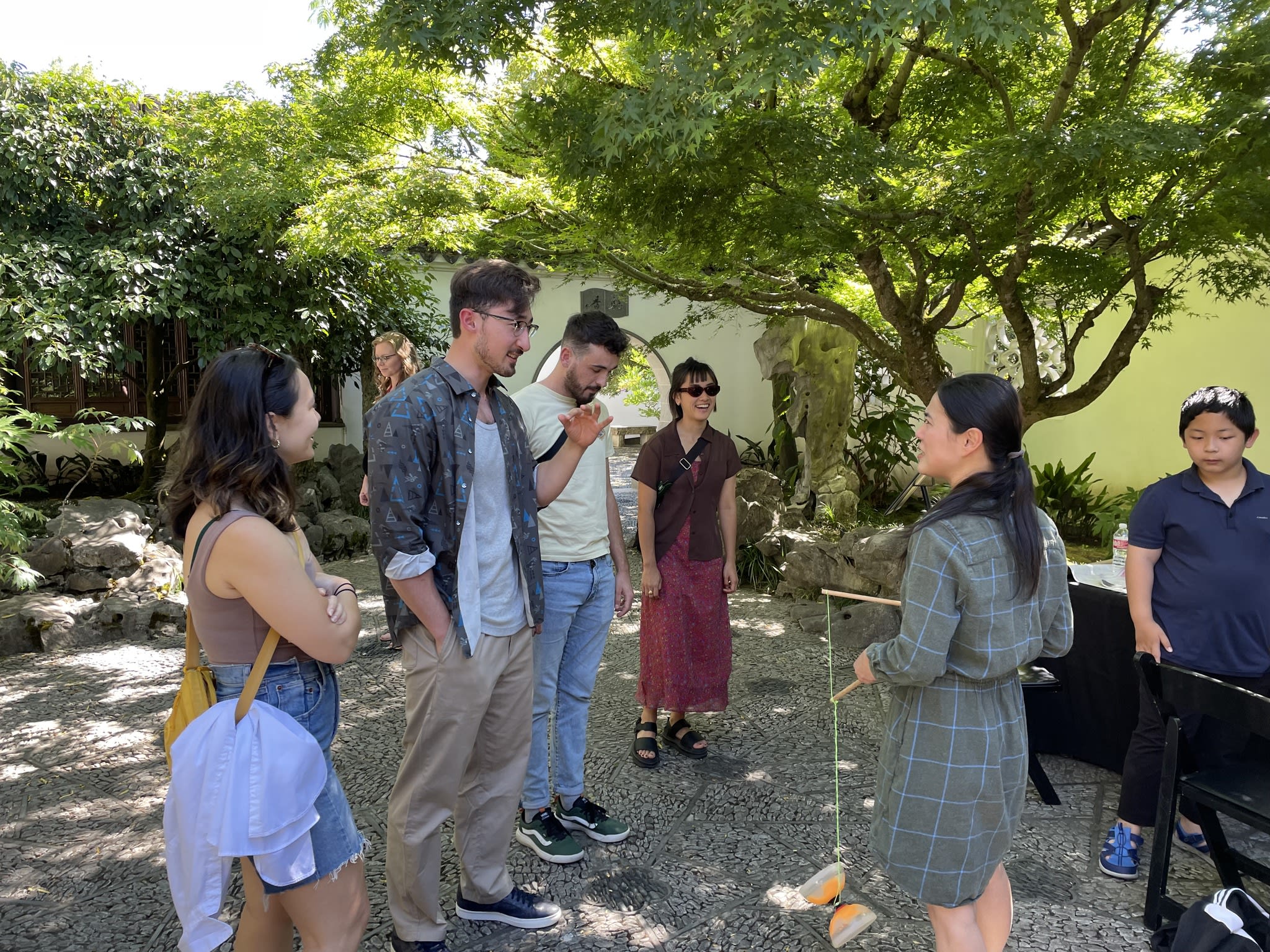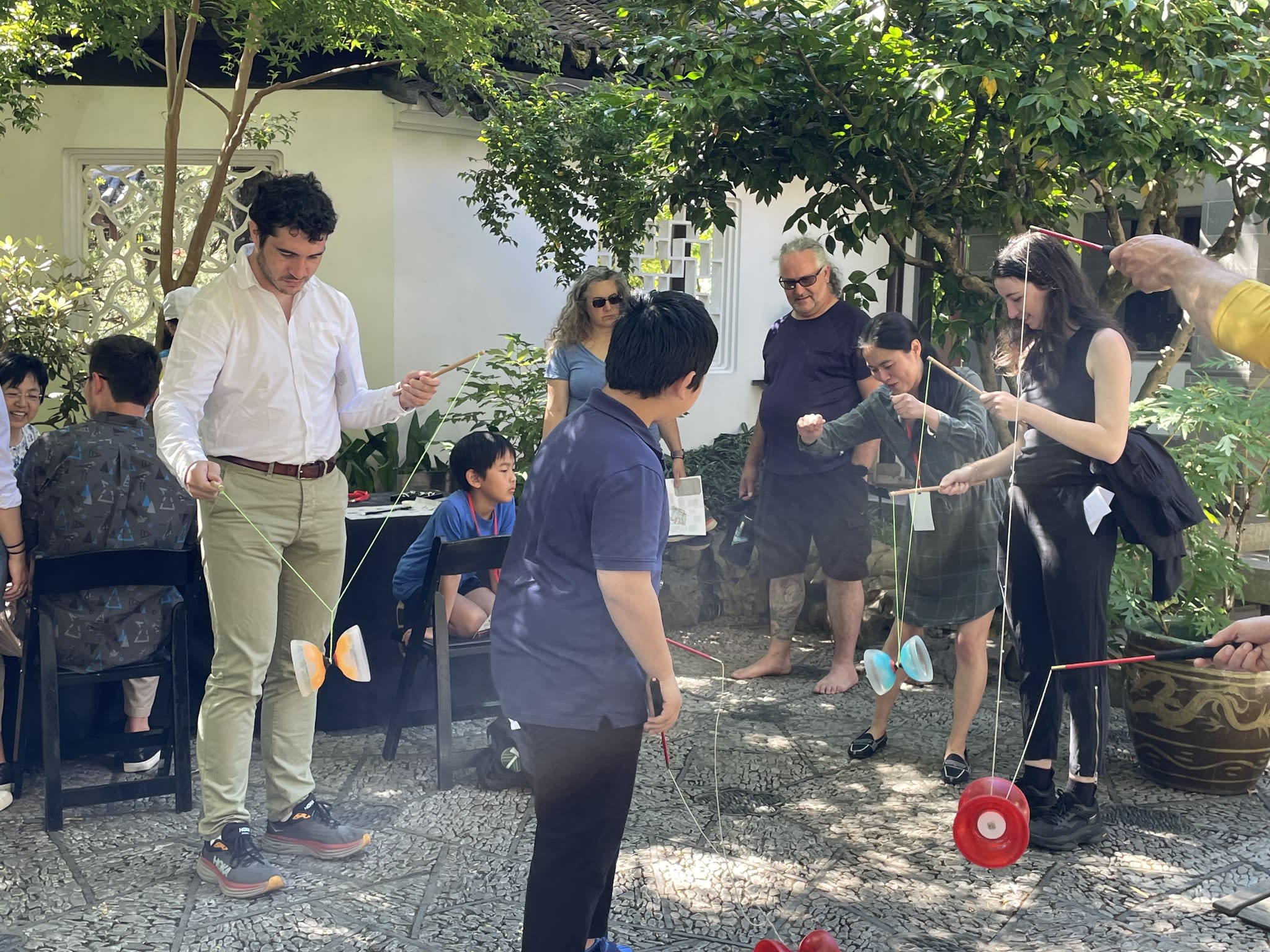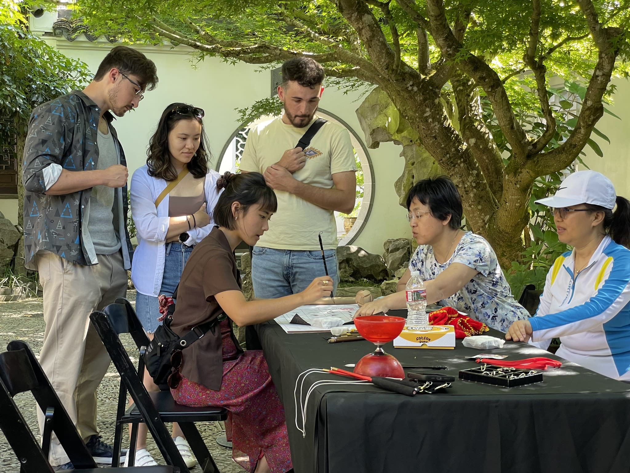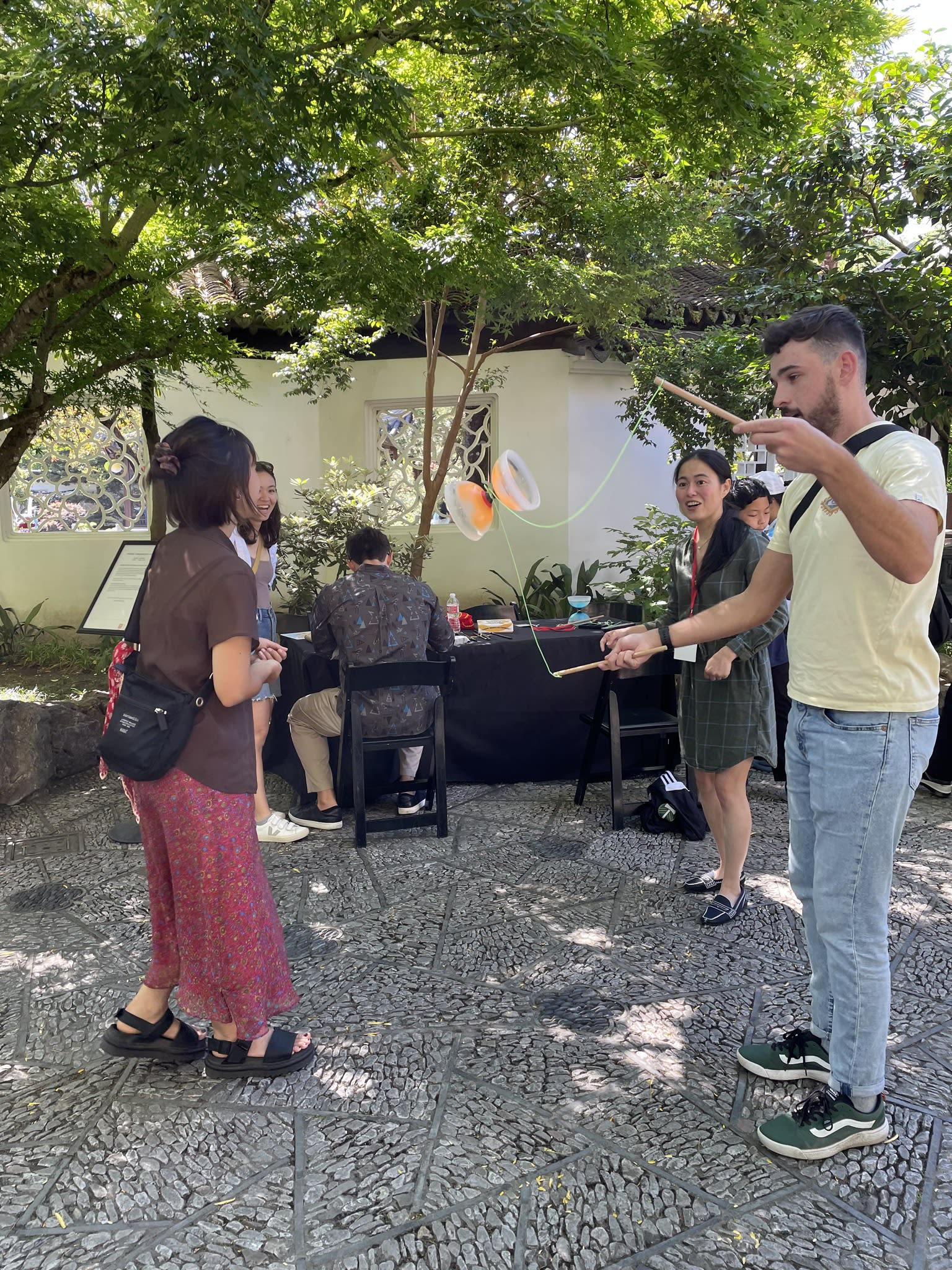Yo-Yo proved to be a popular activity at the Chinese Conversation Table. The Scholar Courtyard at Lan Su Chinese Garden provided the perfect setting for having fun, practicing calligraphy, and engaging in lively conversations.