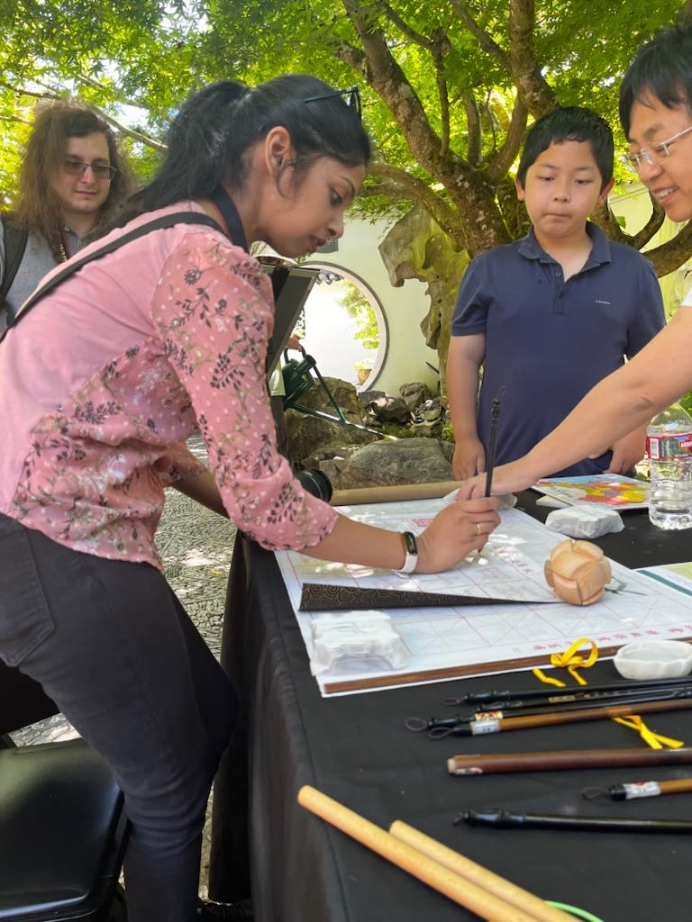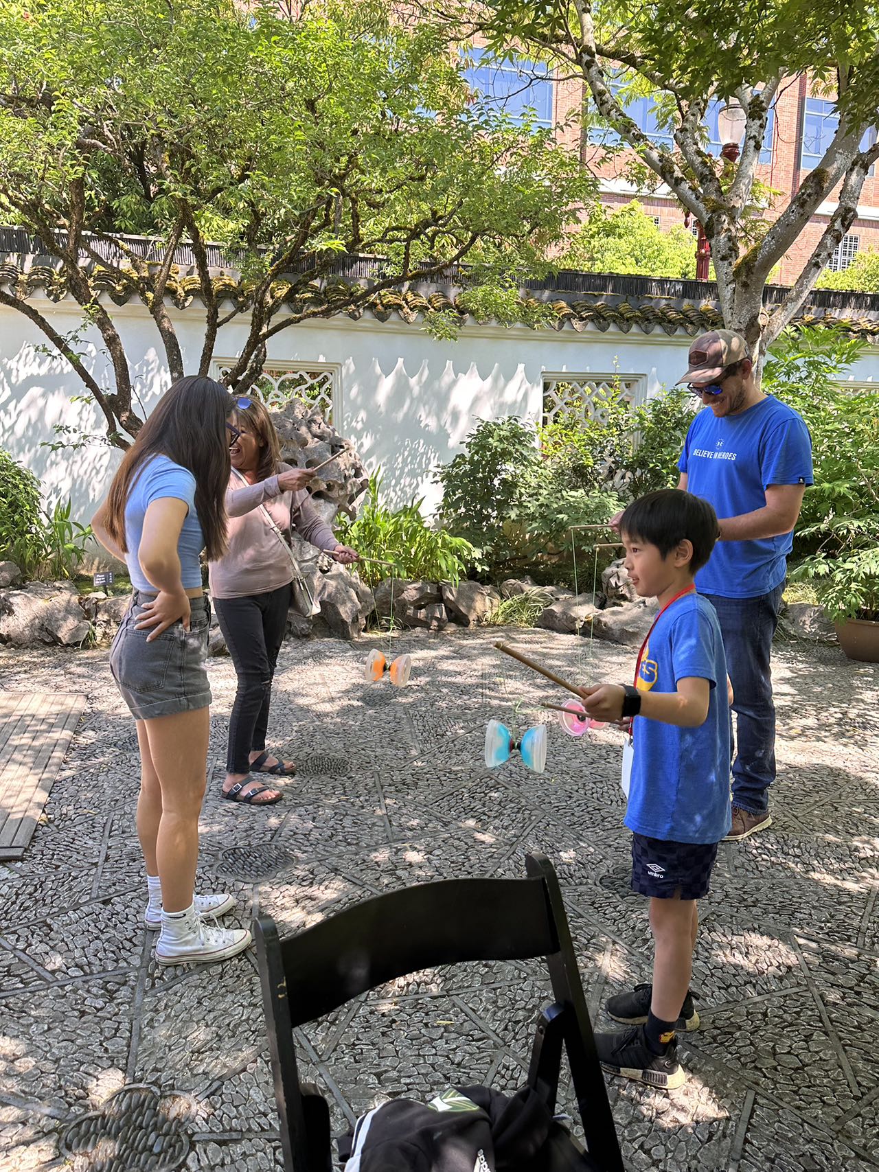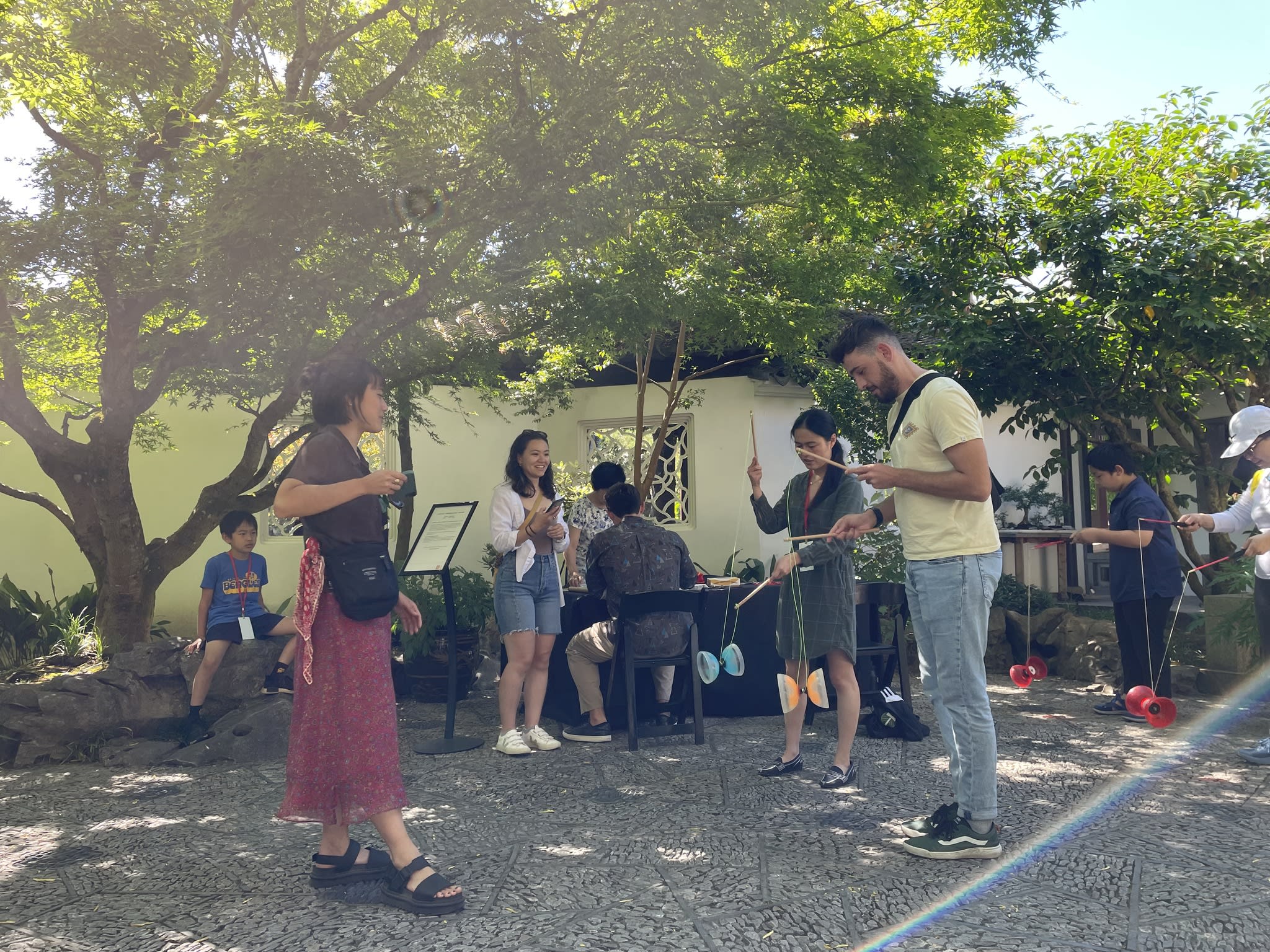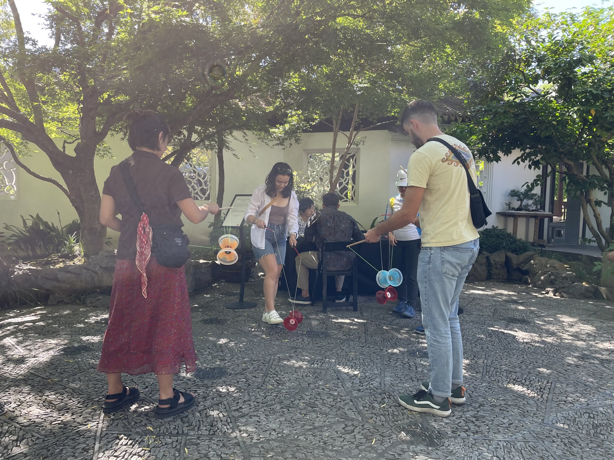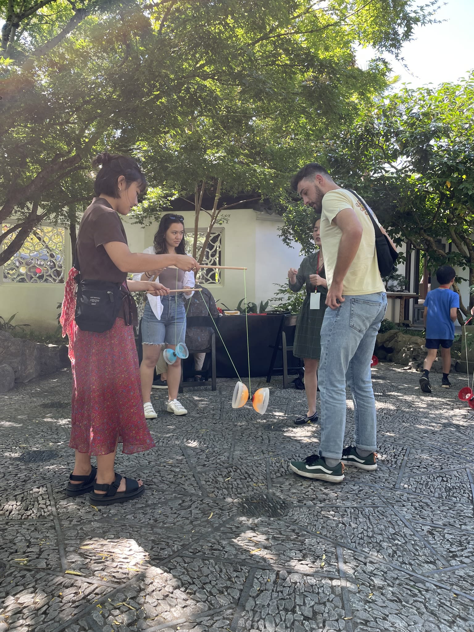 Yo-Yo proved to be a popular activity at the Chinese Conversation Table. The Scholar Courtyard at Lan Su Chinese Garden provided the perfect setting for having fun, practicing calligraphy, and engaging in lively conversations.