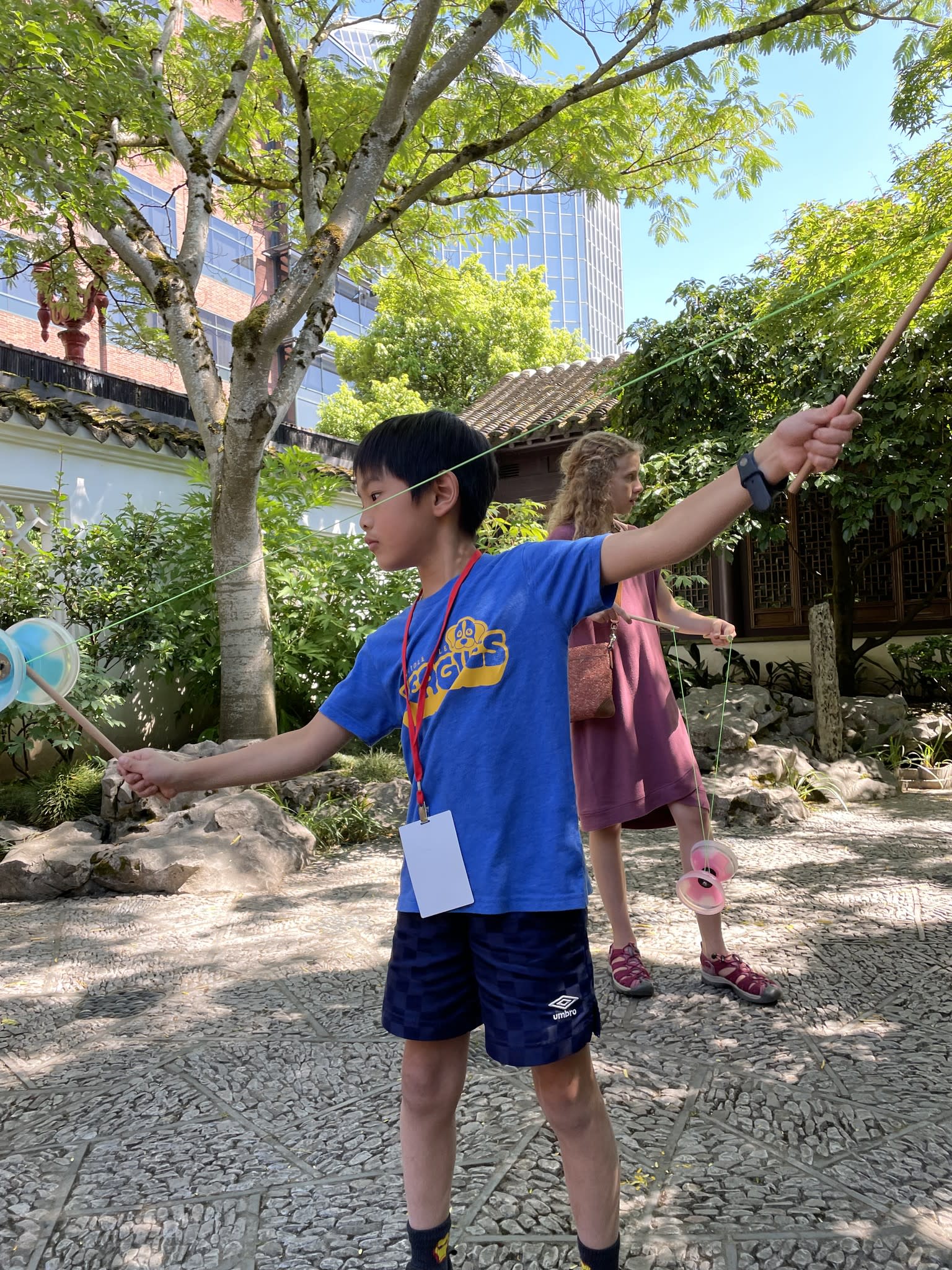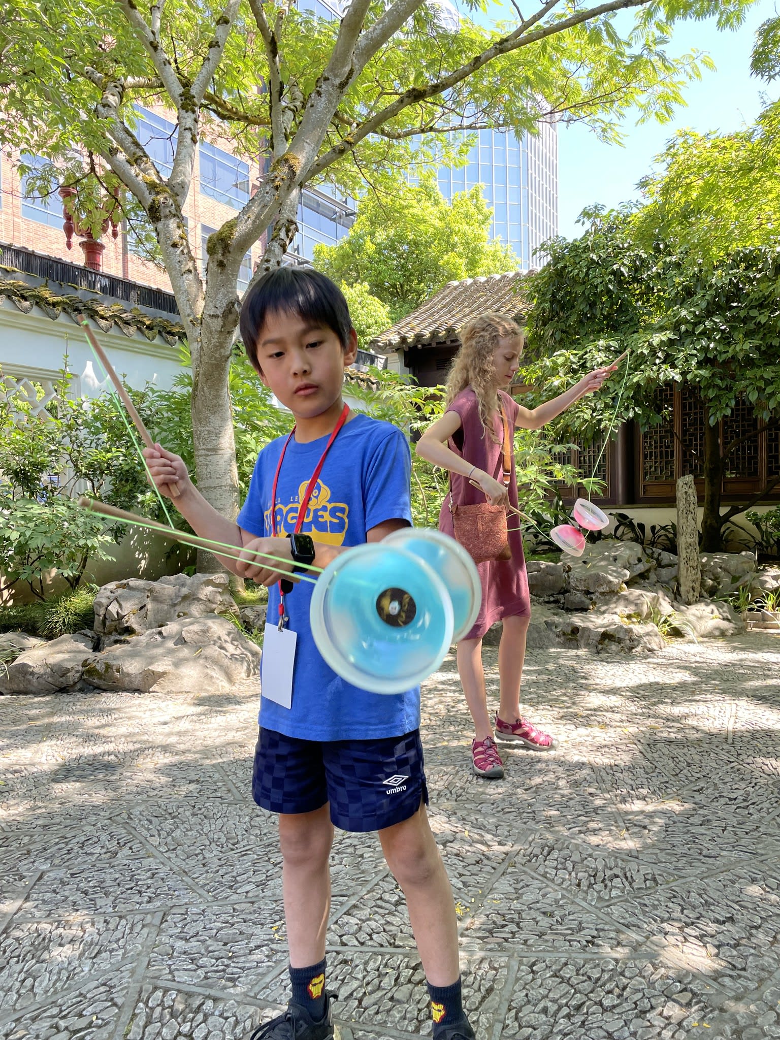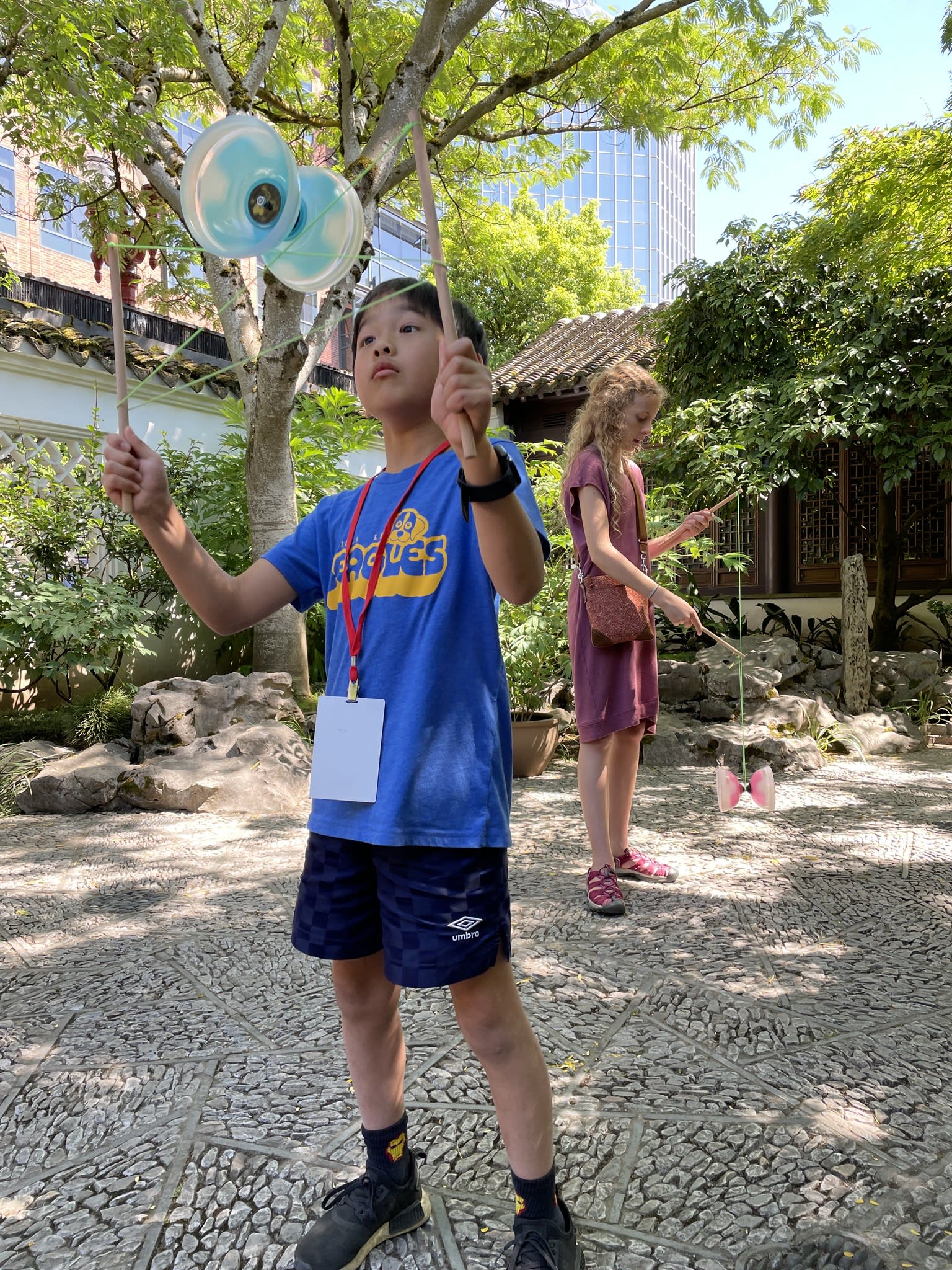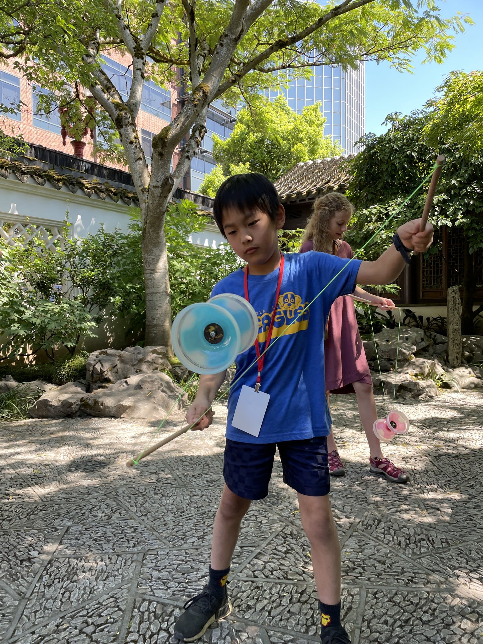 Yo-Yo proved to be a popular activity at the Chinese Conversation Table. The Scholar Courtyard at Lan Su Chinese Garden provided the perfect setting for having fun, practicing calligraphy, and engaging in lively conversations.