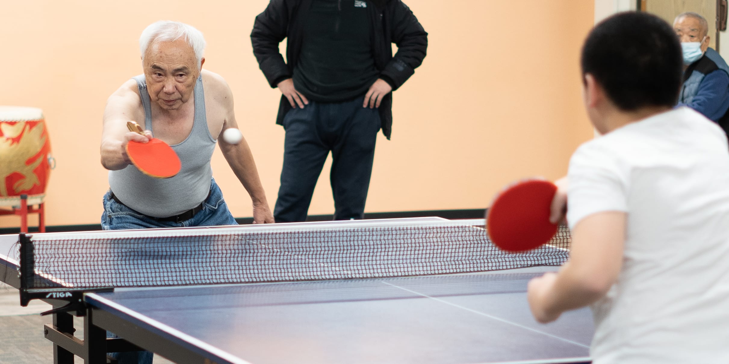 这个周末在SE老人公寓的回归传统春节联欢活动再添新内容。记得小时候,唯一的体育活动可能就是乒乓球了,当时是把院子大门门板卸下来当作台子,大人孩子都是玩得不亦乐乎。所以,老人公寓里自然有乒乓高手,据说还有前国家队队员。我们就决定请社区青少年乒乓球俱乐部的孩子们,过来和老人们在文艺演出前举办一场友谊赛。已经可以想象得出现场的气氛会嗨到什么程度。