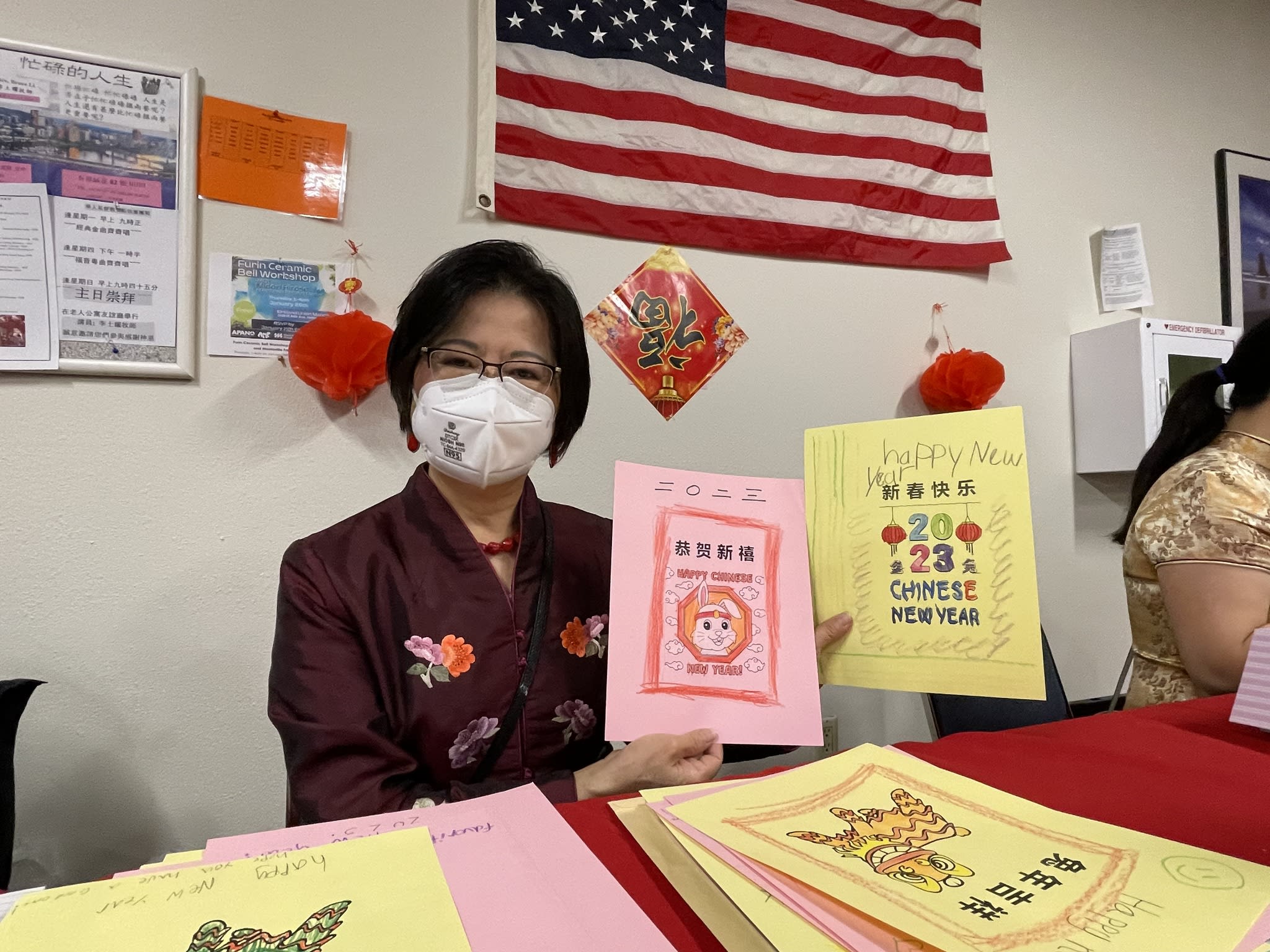 给老人们发手工制作的贺年卡