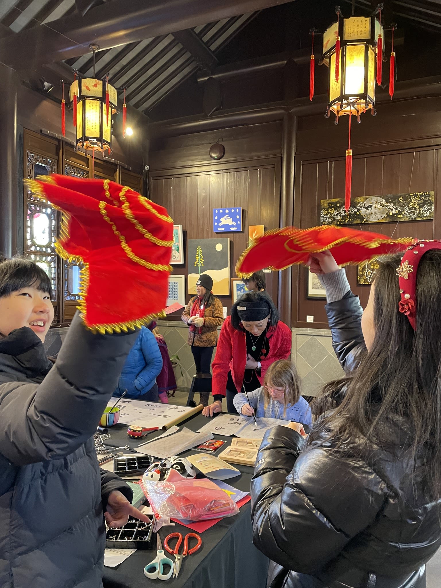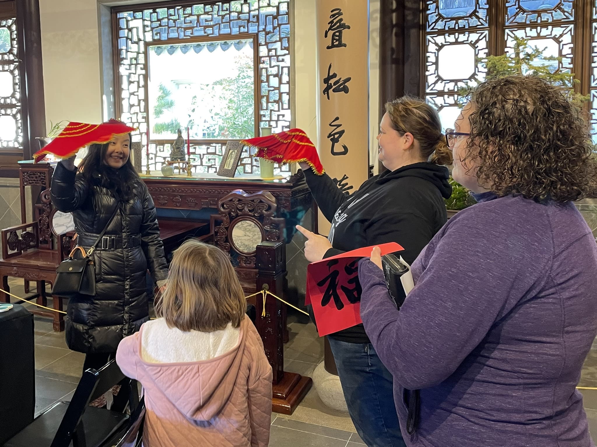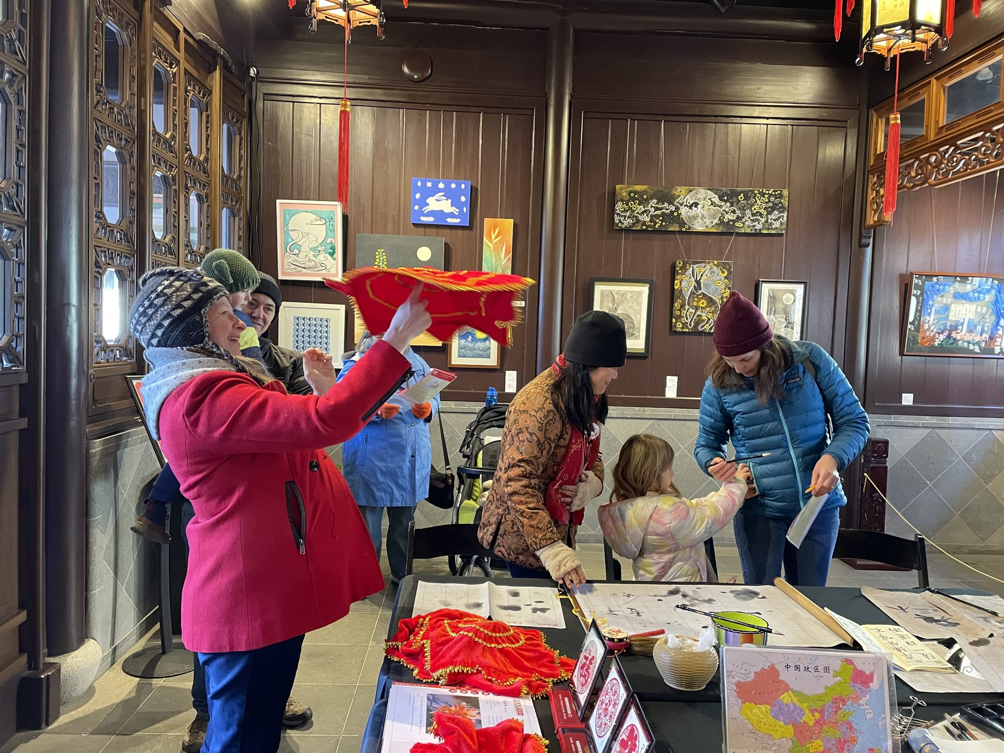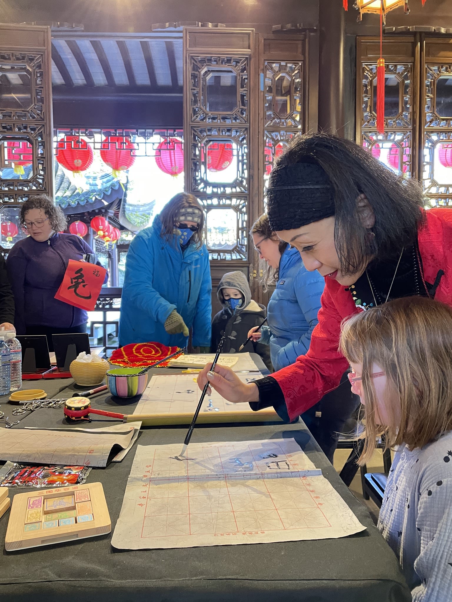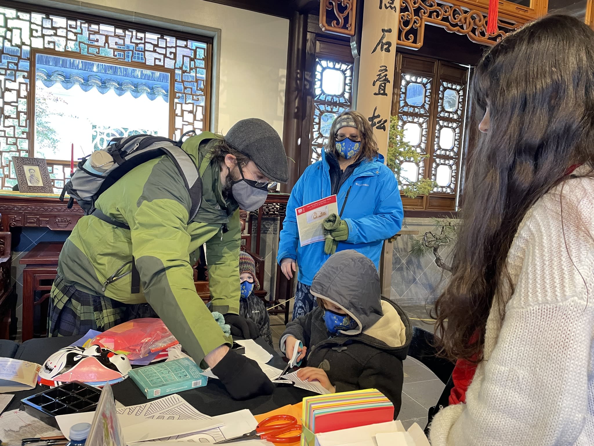The volunteers have been helping out each of eight lantern viewing evenings at Lan Su Chinese Garden. On Sunday, we also hosted a crafts table, and both Mulan Drum Team and Jade Dance Team performed very enthusiastically even though it was freezing cold outside. They didn’t compromise on one movement and even a facial expression. They gave a full experience of our culture to the audience.