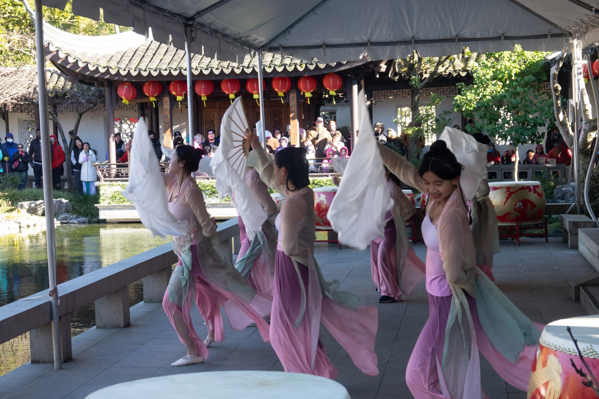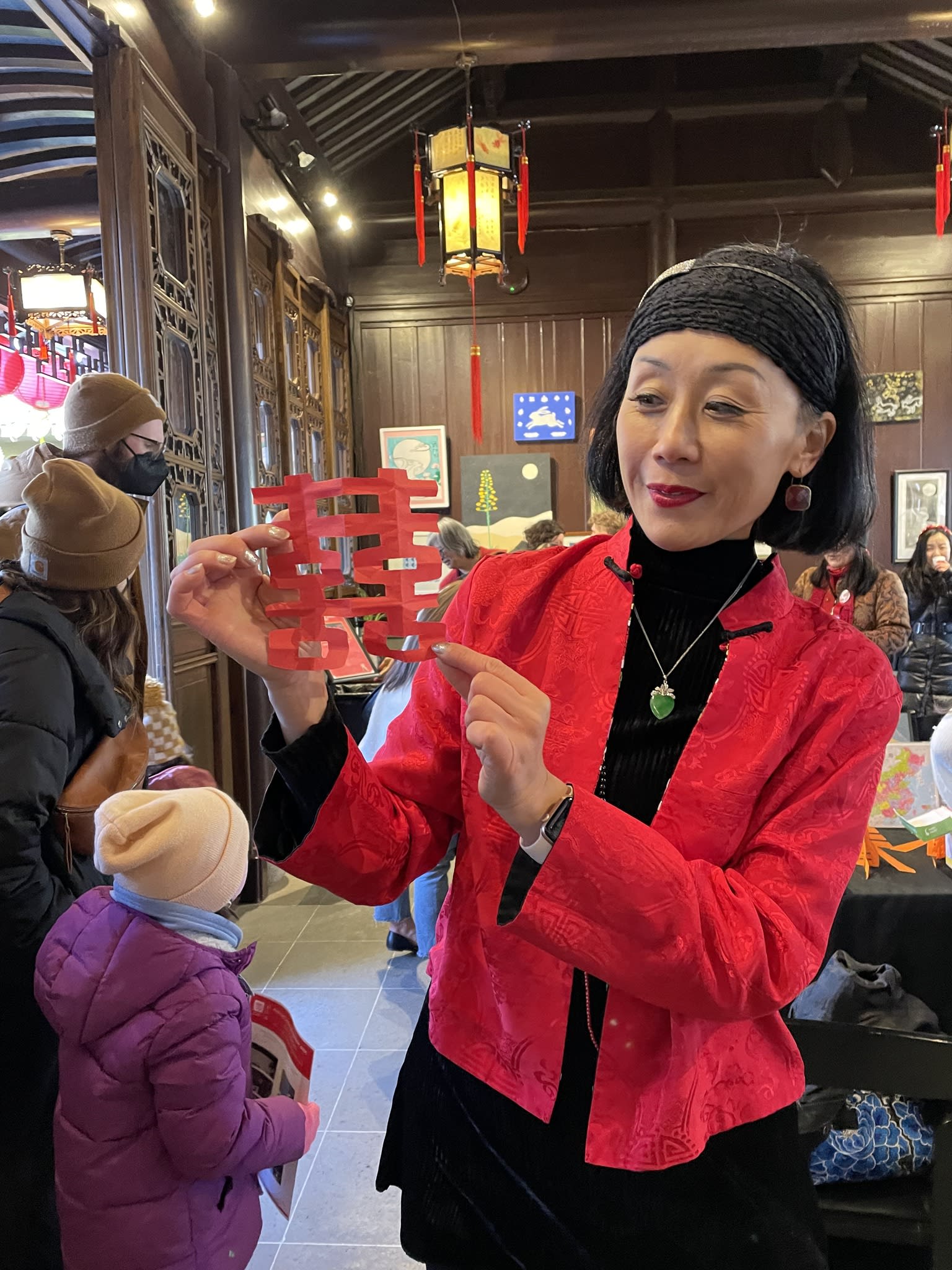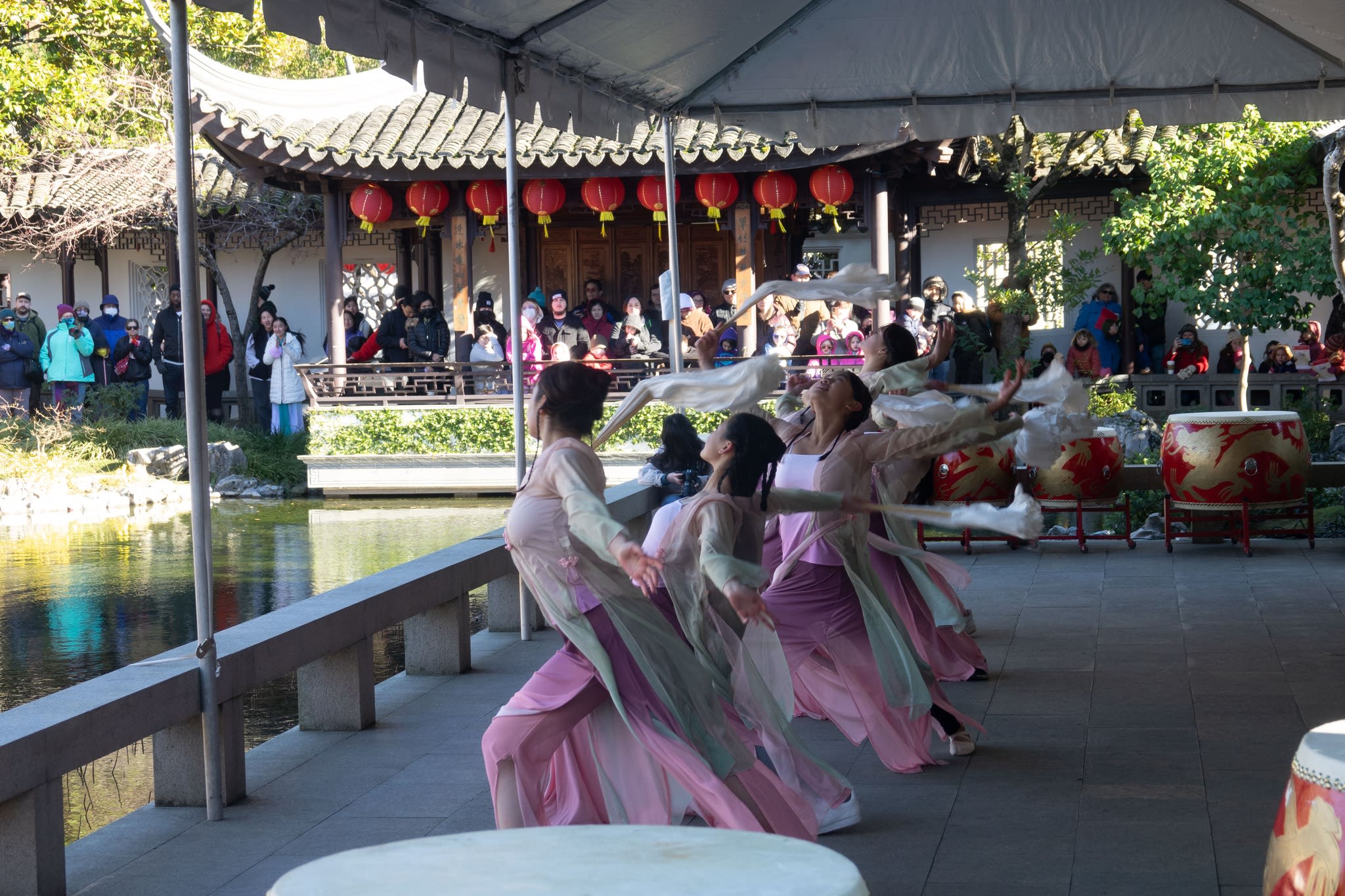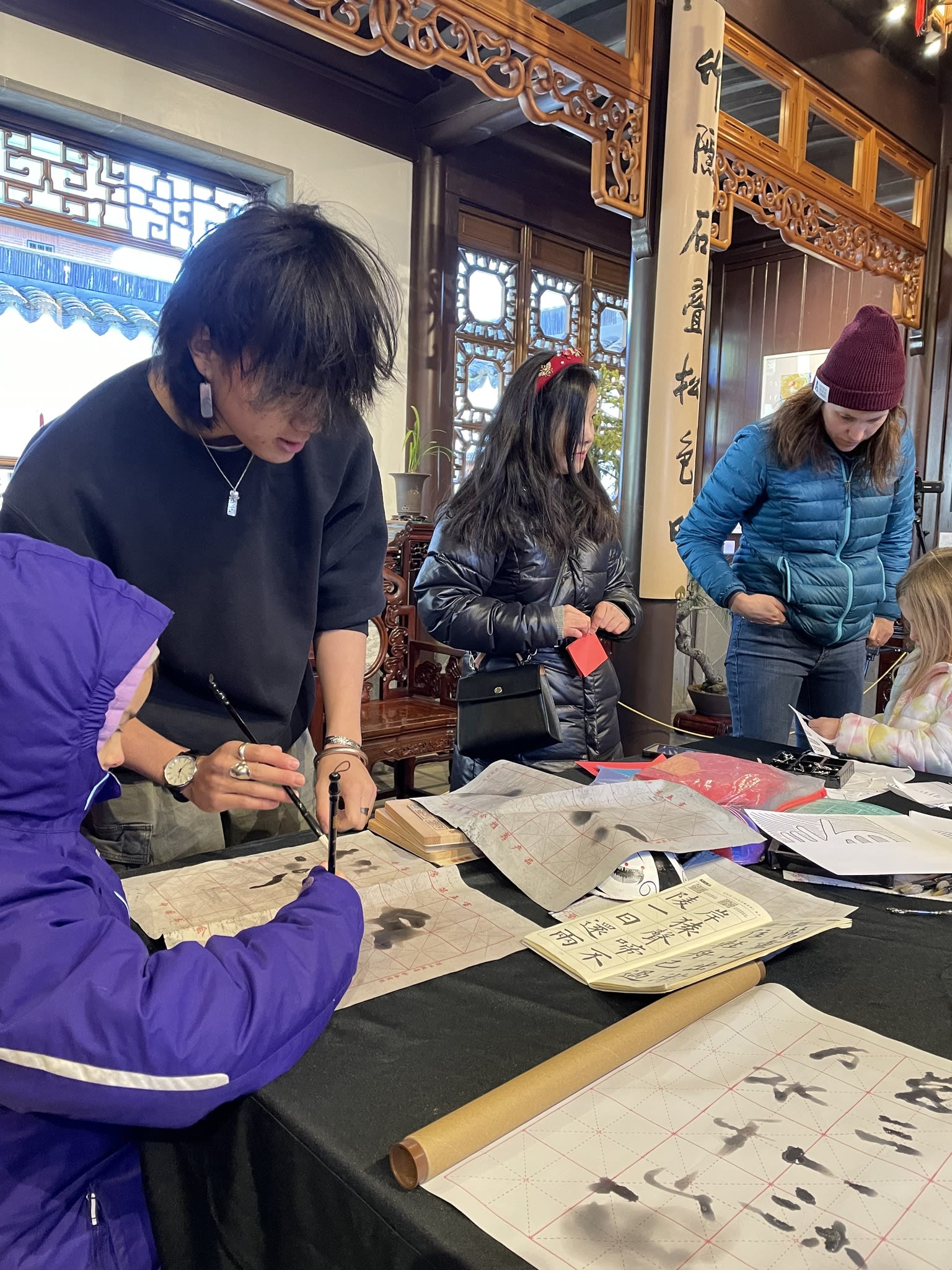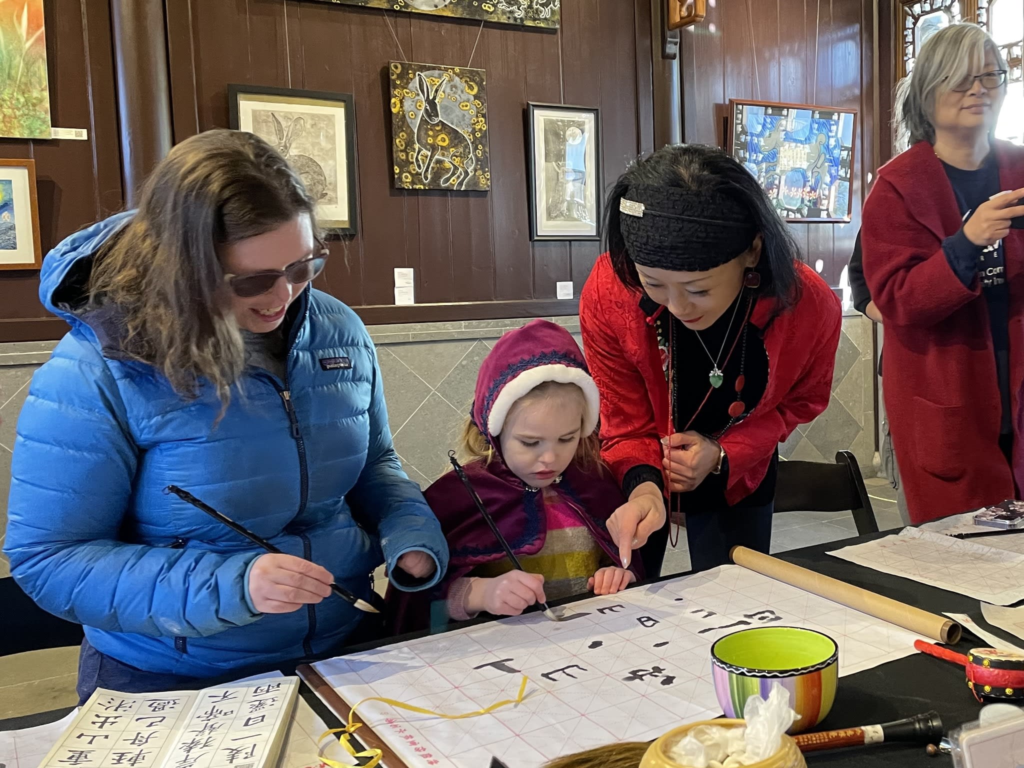 The volunteers have been helping out each of eight lantern viewing evenings at Lan Su Chinese Garden. On Sunday, we also hosted a crafts table, and both Mulan Drum Team and Jade Dance Team performed very enthusiastically even though it was freezing cold outside. They didn’t compromise on one movement and even a facial expression. They gave a full experience of our culture to the audience.