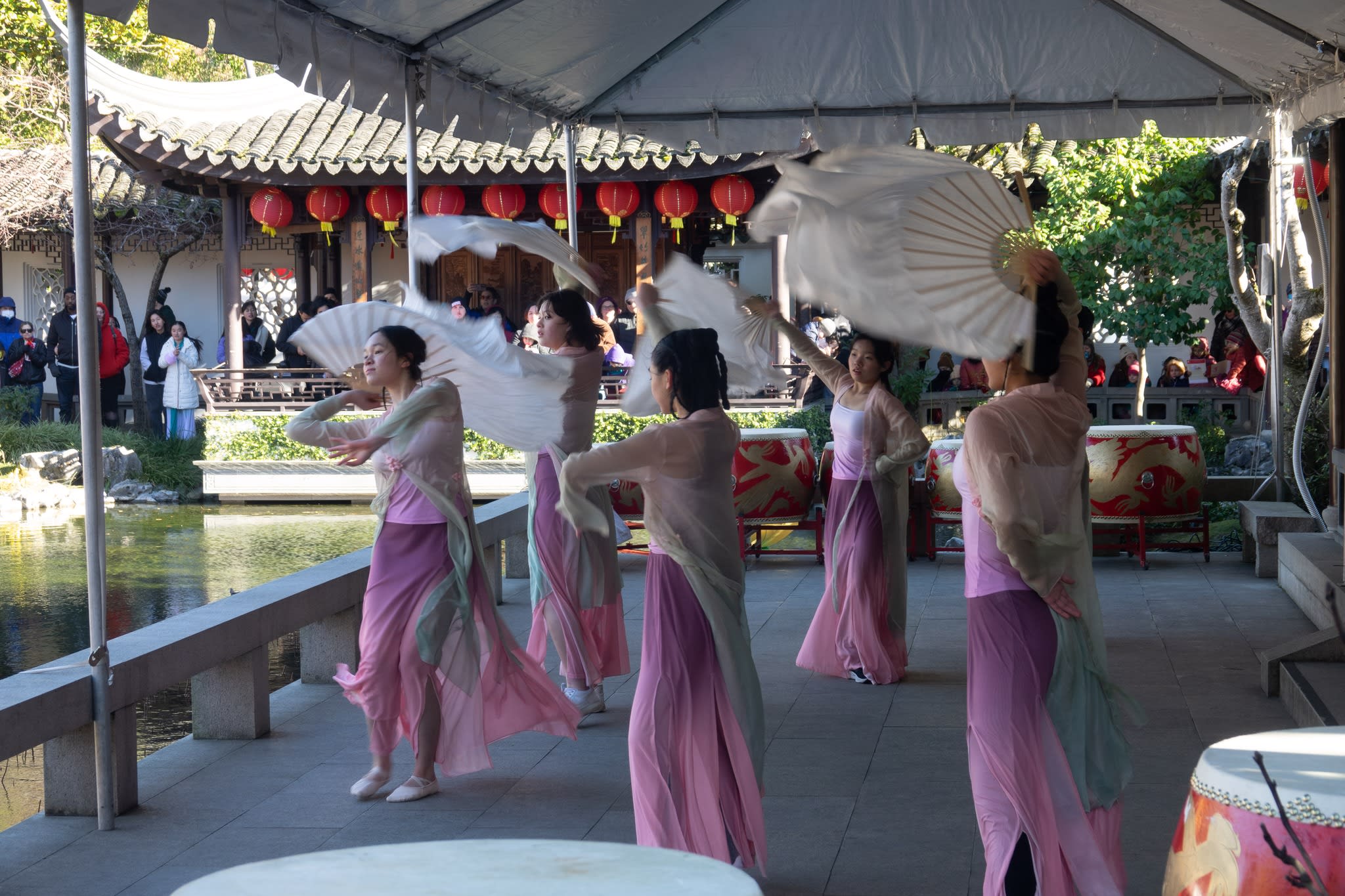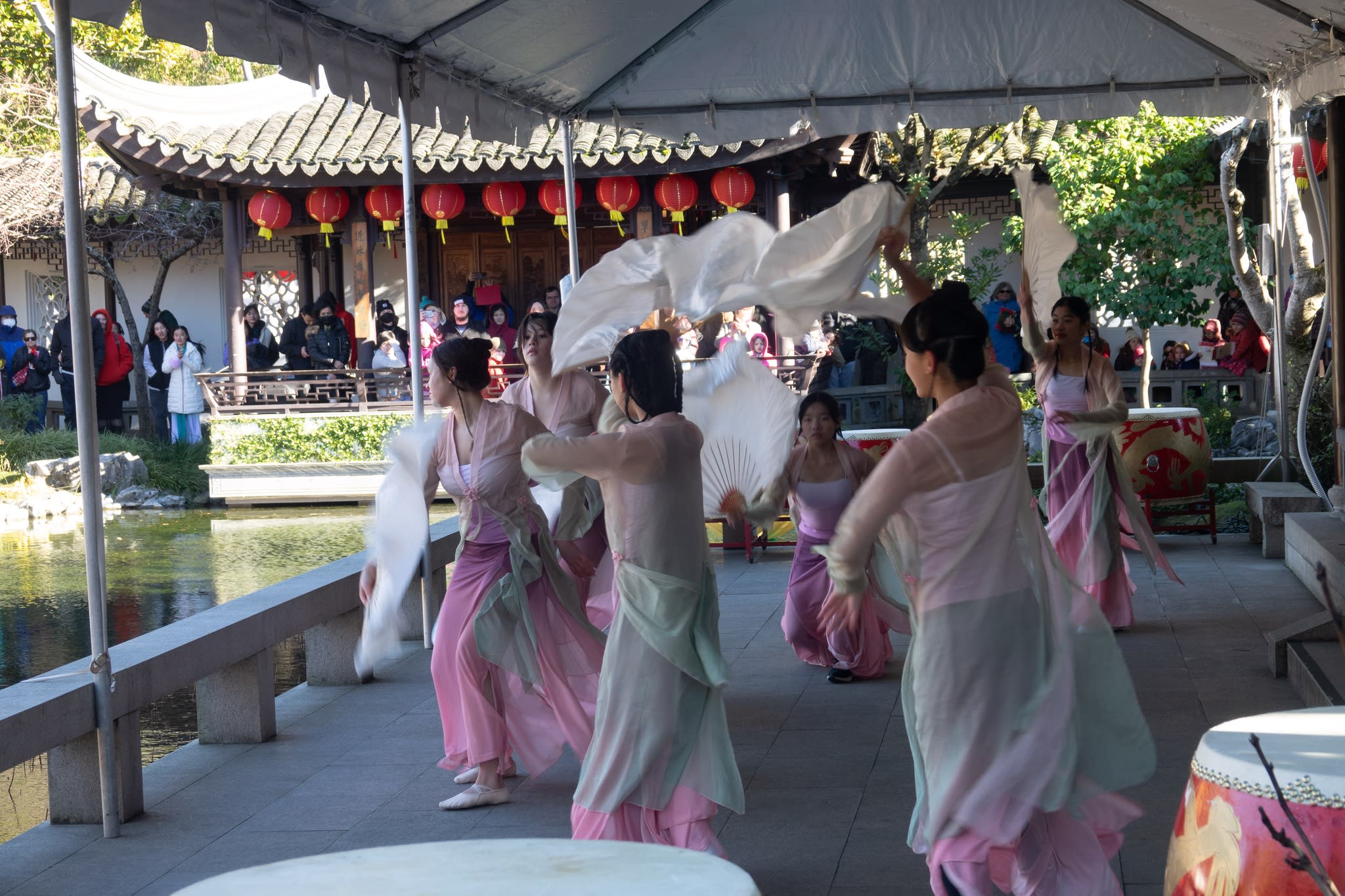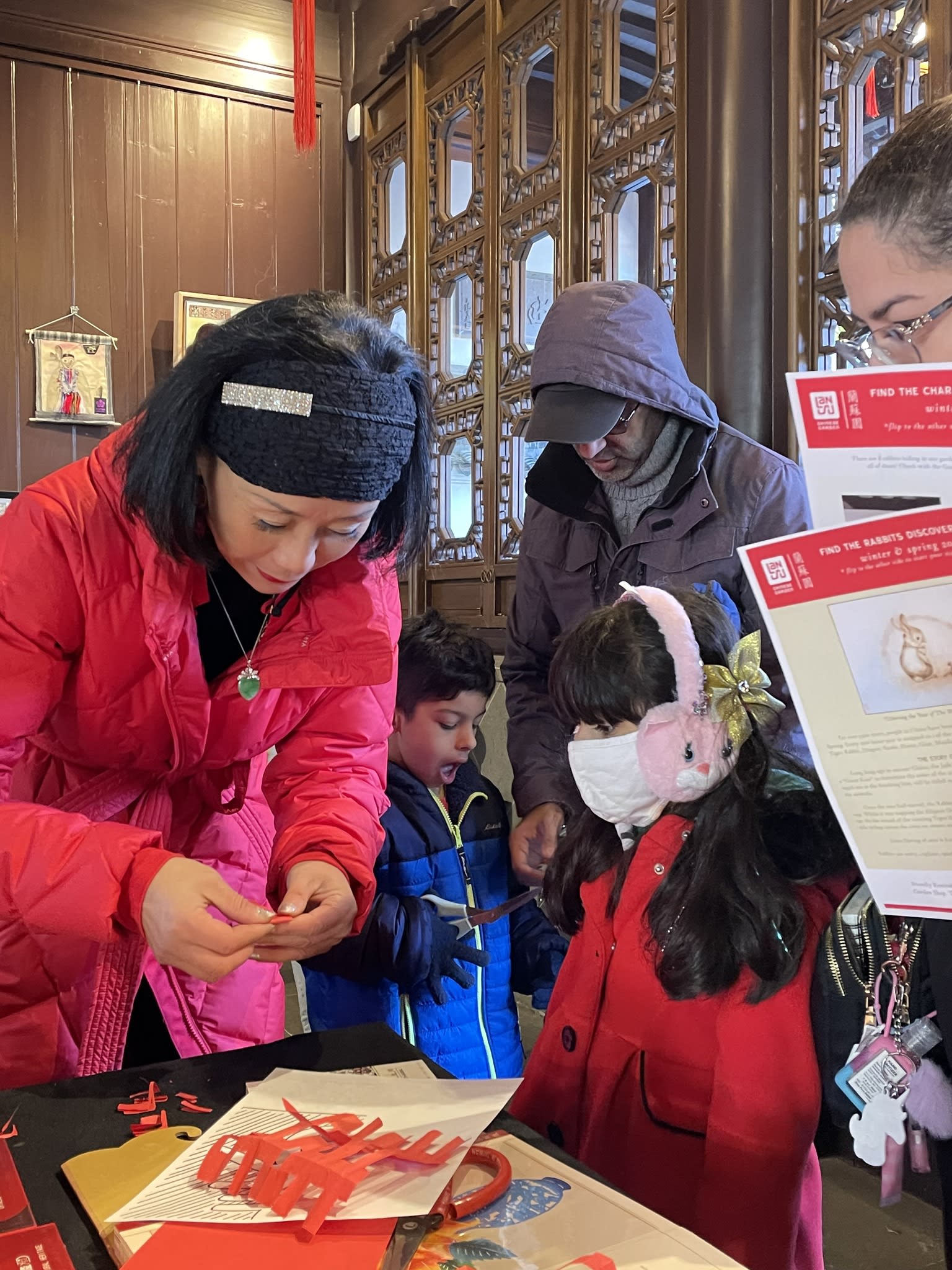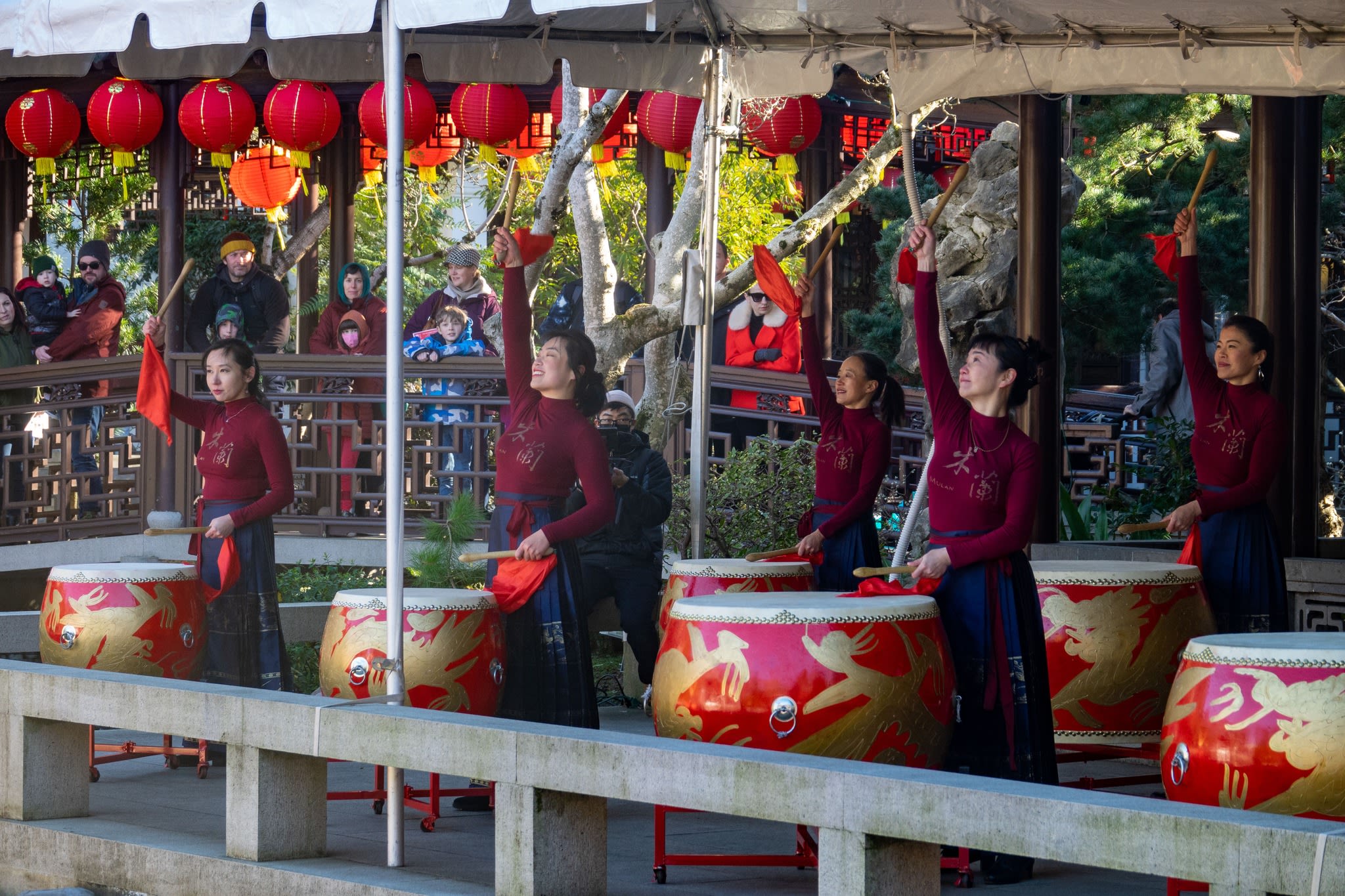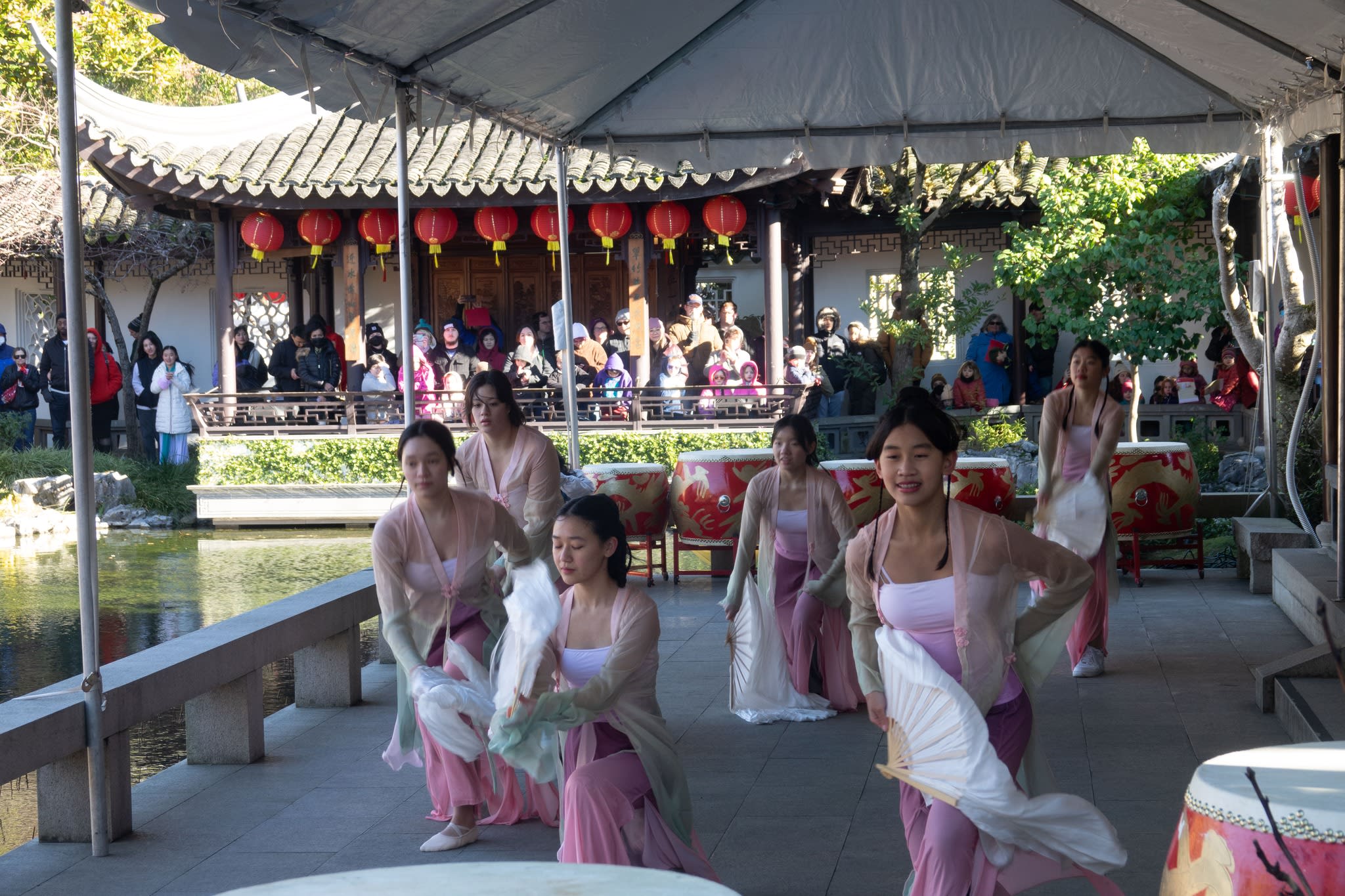 The volunteers have been helping out each of eight lantern viewing evenings at Lan Su Chinese Garden. On Sunday, we also hosted a crafts table, and both Mulan Drum Team and Jade Dance Team performed very enthusiastically even though it was freezing cold outside. They didn’t compromise on one movement and even a facial expression. They gave a full experience of our culture to the audience.