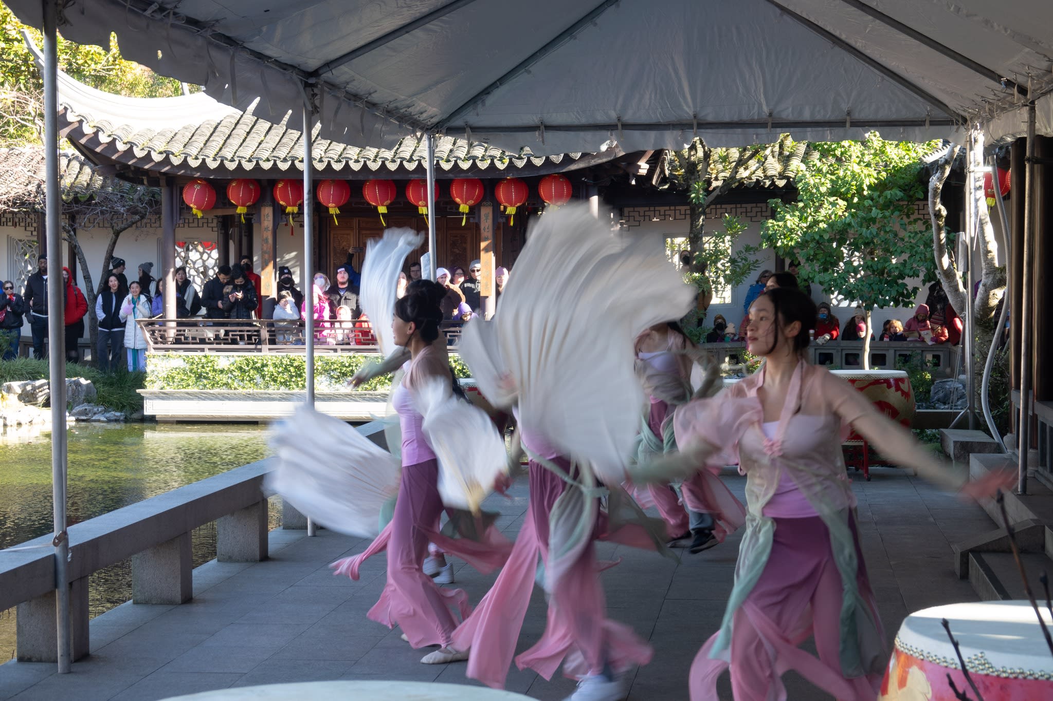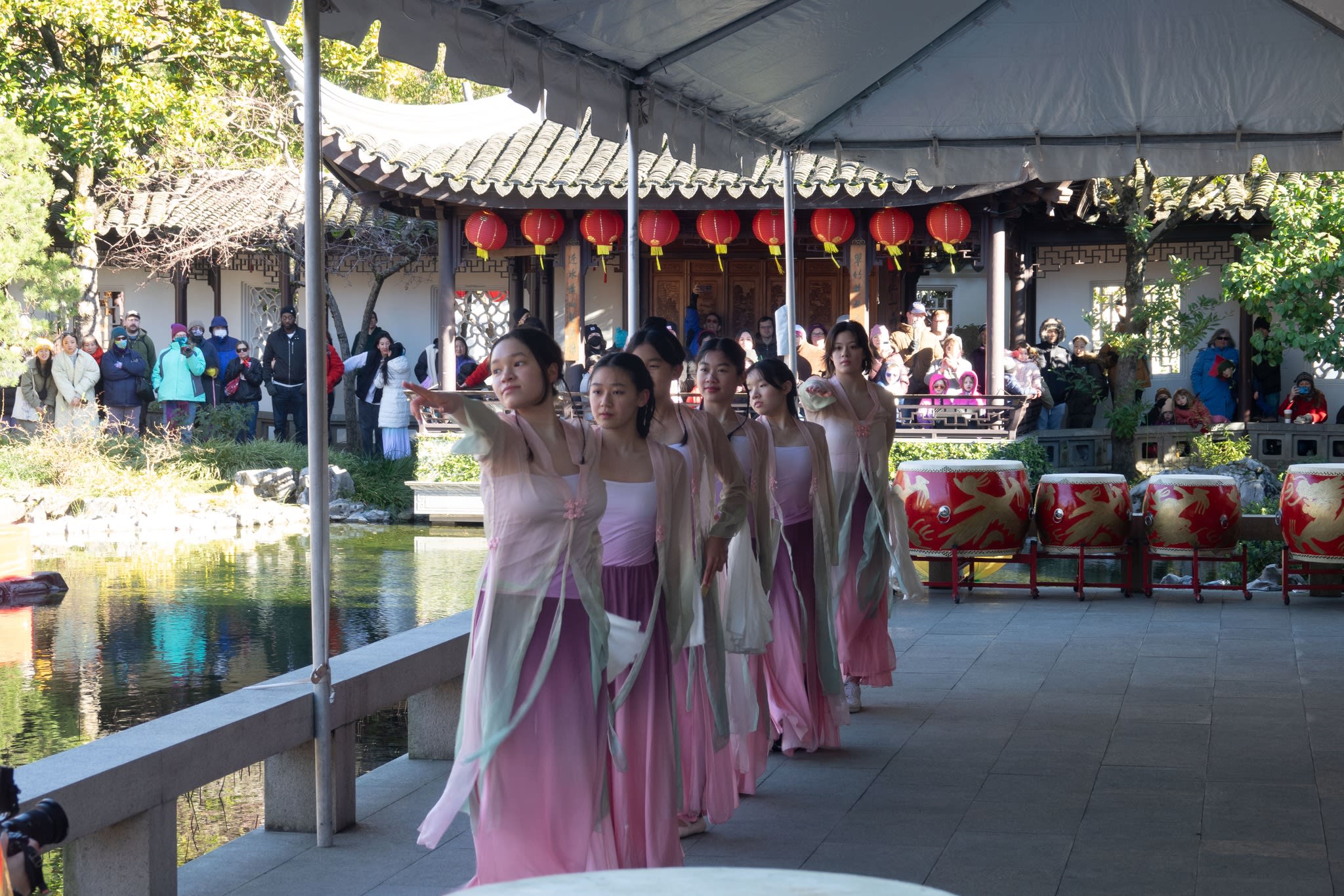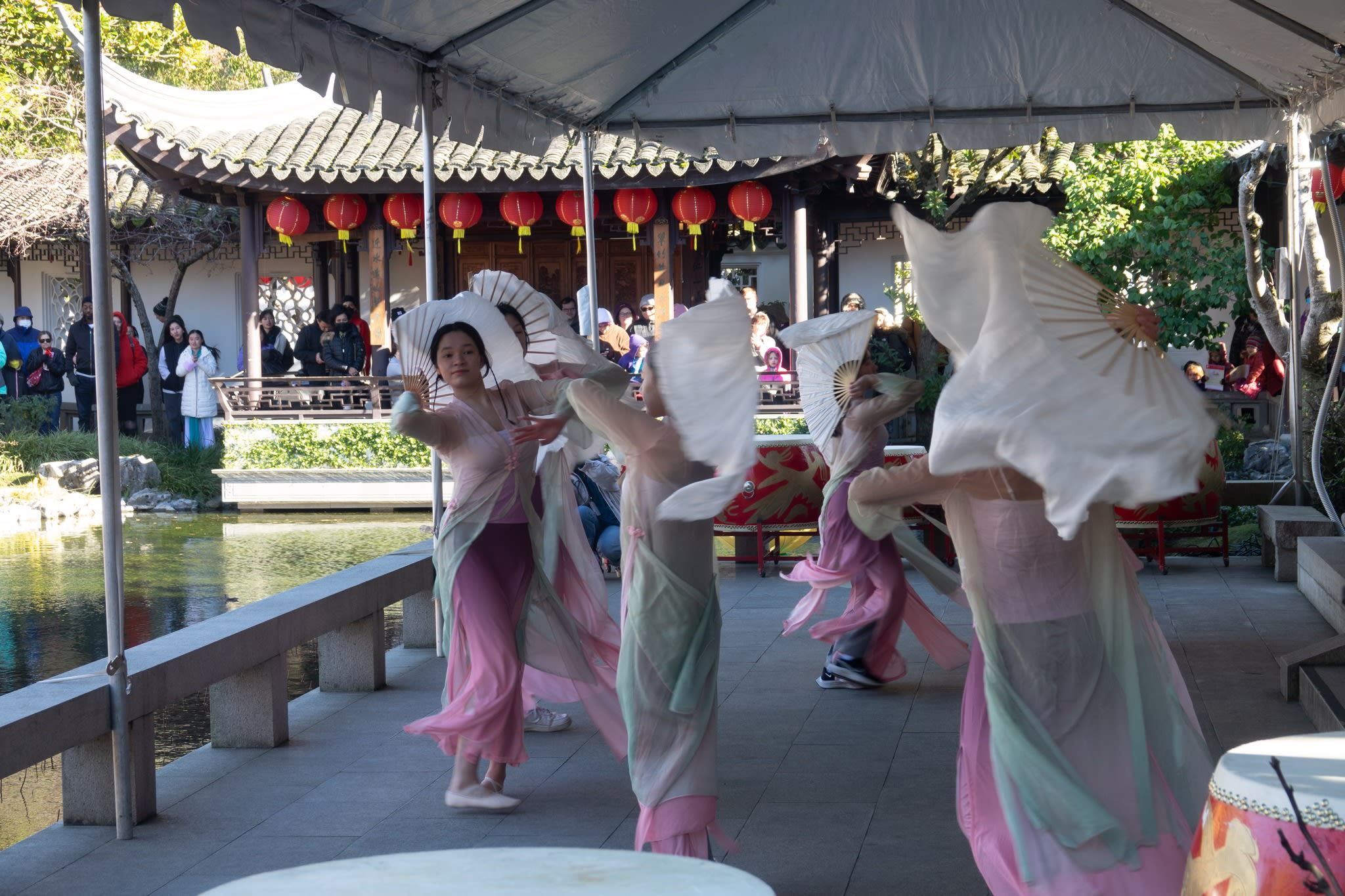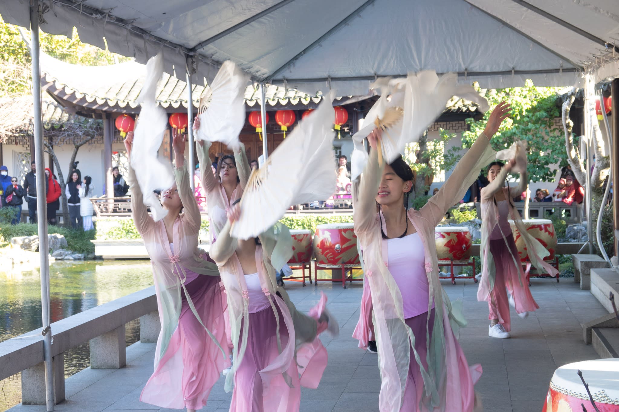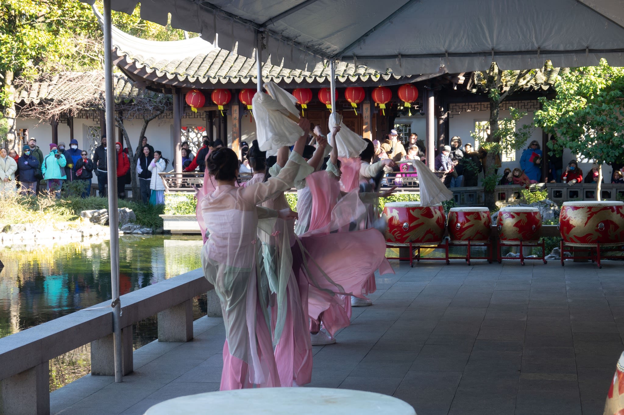 The volunteers have been helping out each of eight lantern viewing evenings at Lan Su Chinese Garden. On Sunday, we also hosted a crafts table, and both Mulan Drum Team and Jade Dance Team performed very enthusiastically even though it was freezing cold outside. They didn’t compromise on one movement and even a facial expression. They gave a full experience of our culture to the audience.