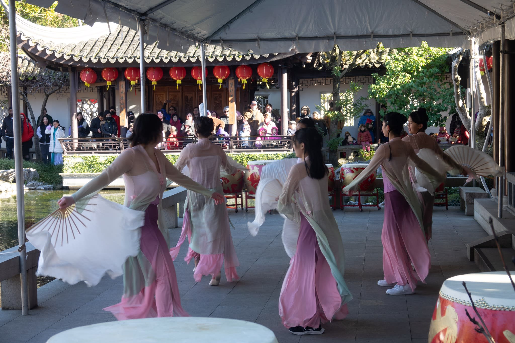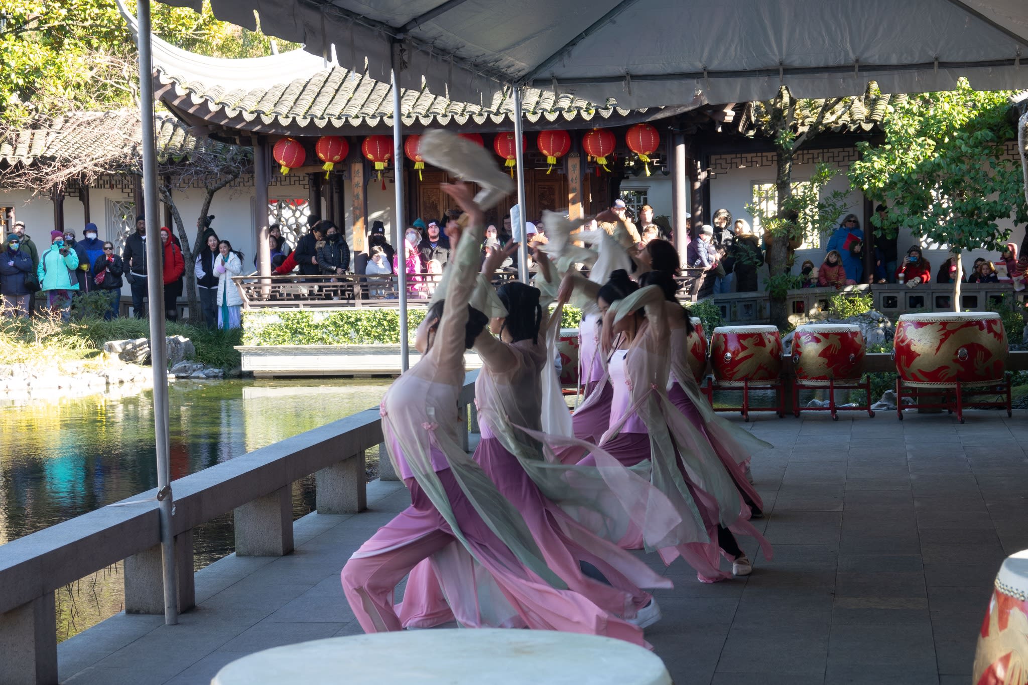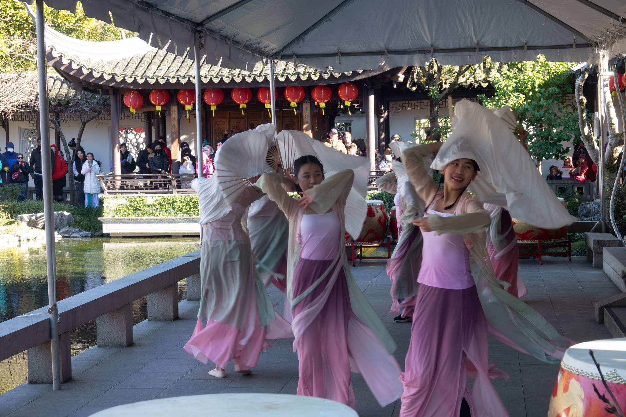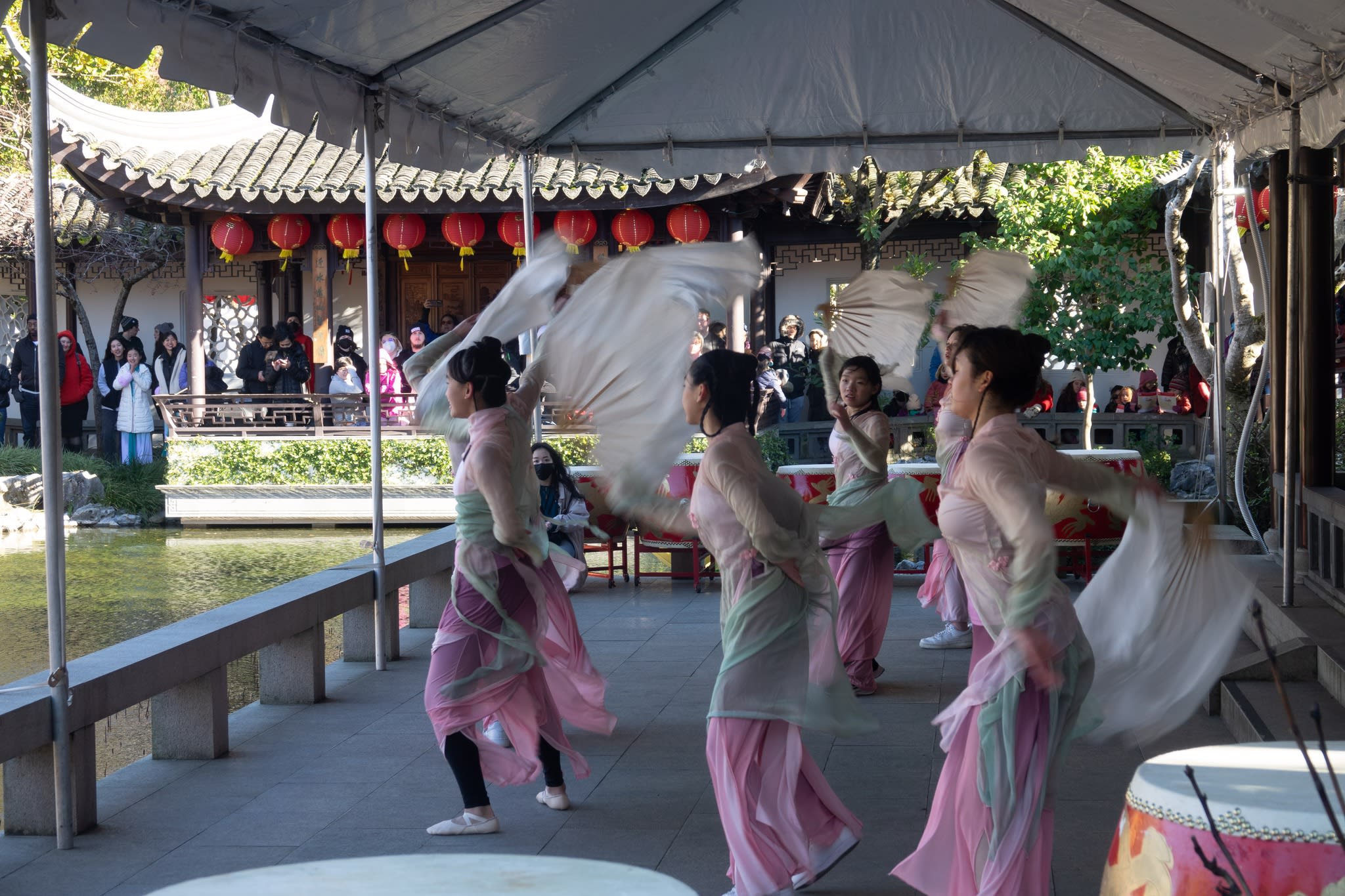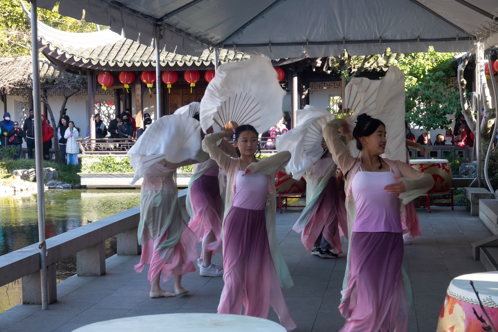 The volunteers have been helping out each of eight lantern viewing evenings at Lan Su Chinese Garden. On Sunday, we also hosted a crafts table, and both Mulan Drum Team and Jade Dance Team performed very enthusiastically even though it was freezing cold outside. They didn’t compromise on one movement and even a facial expression. They gave a full experience of our culture to the audience.