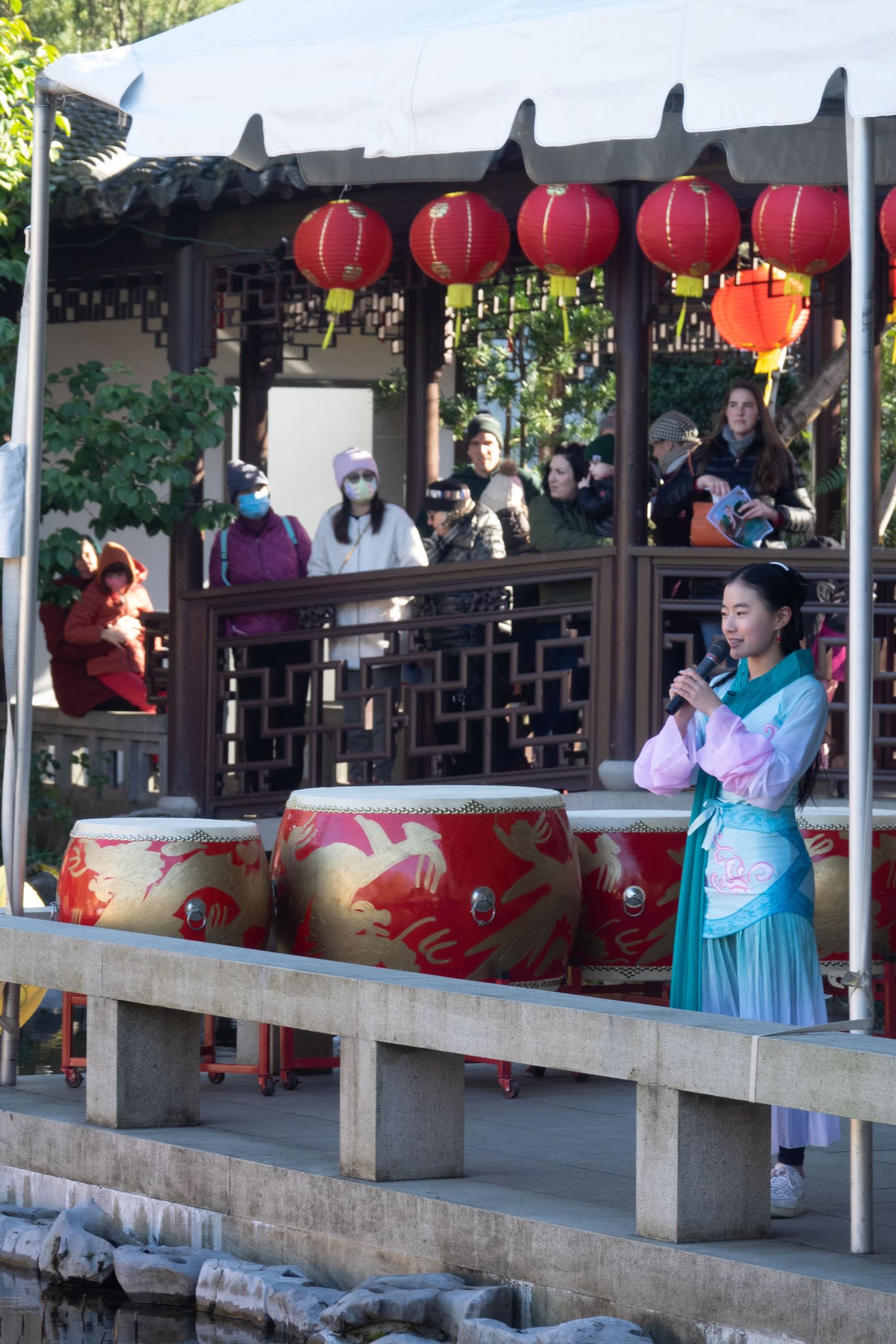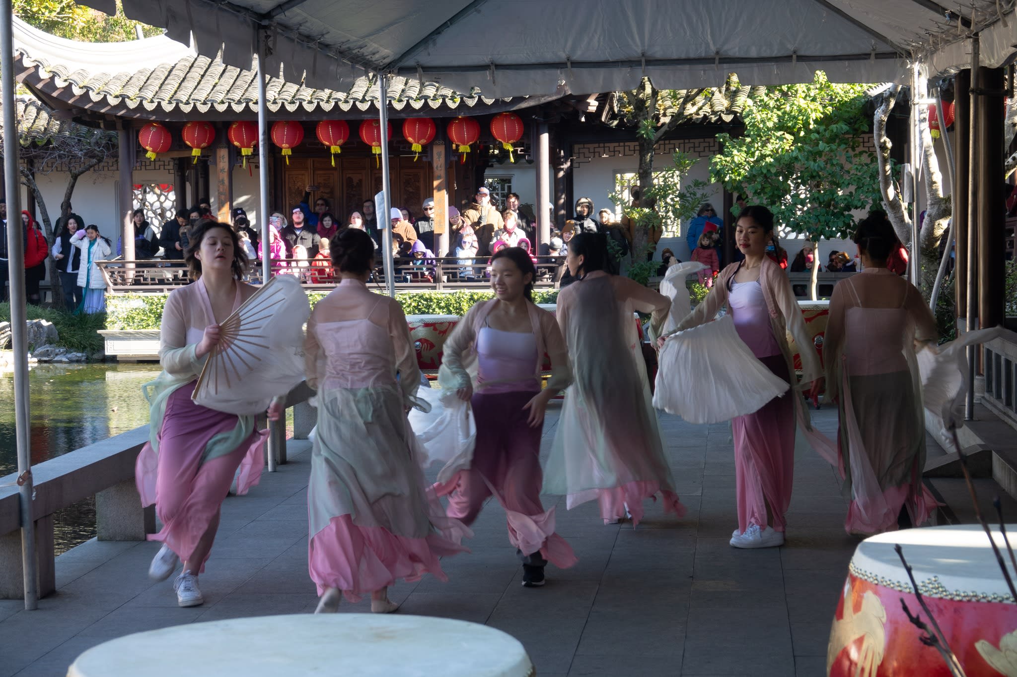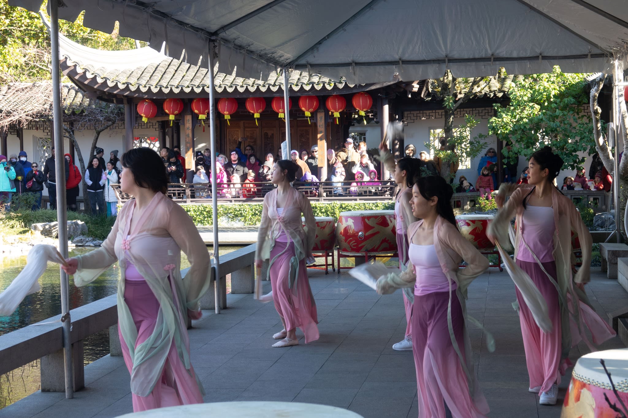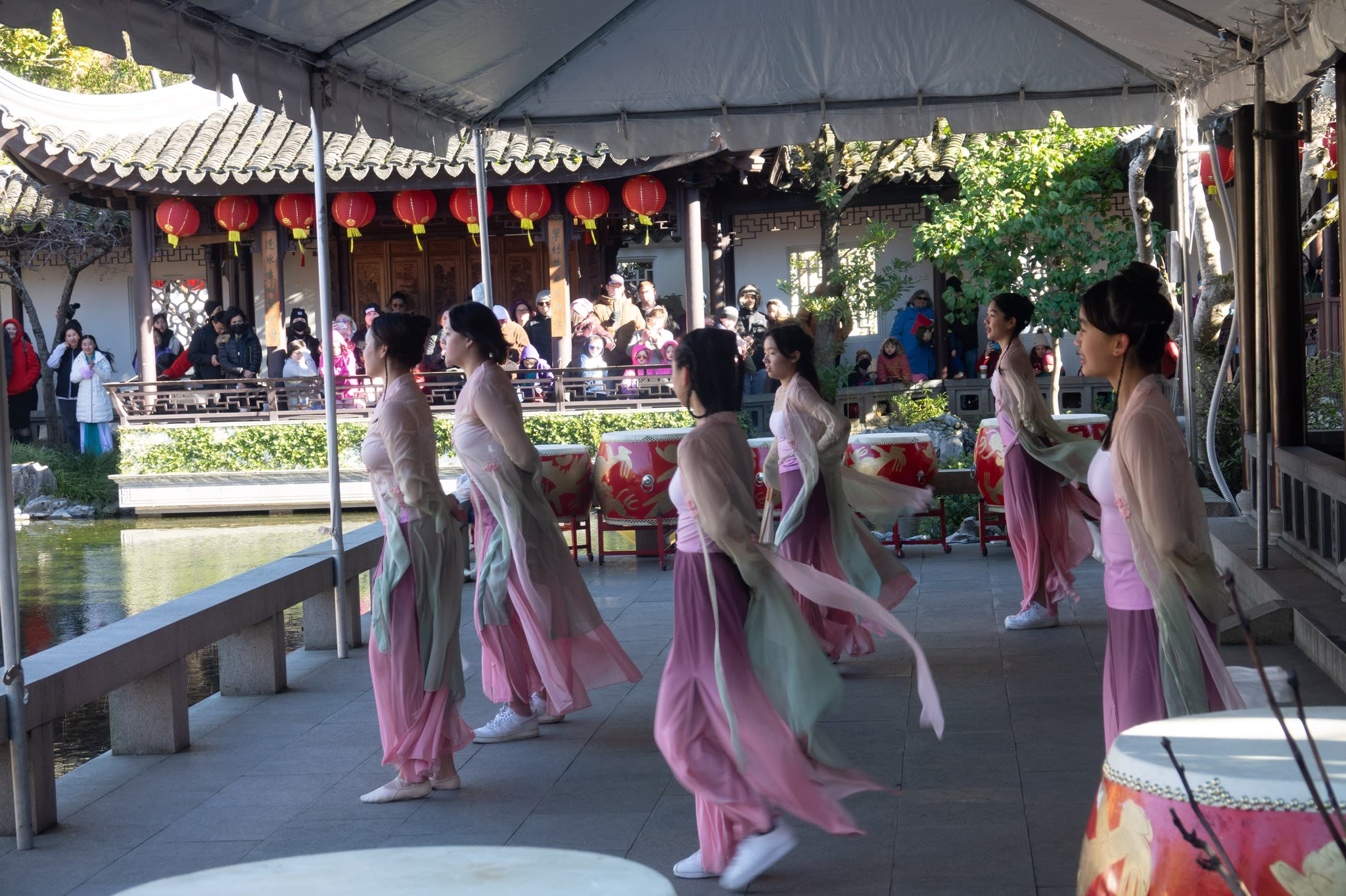 The volunteers have been helping out each of eight lantern viewing evenings at Lan Su Chinese Garden. On Sunday, we also hosted a crafts table, and both Mulan Drum Team and Jade Dance Team performed very enthusiastically even though it was freezing cold outside. They didn’t compromise on one movement and even a facial expression. They gave a full experience of our culture to the audience.